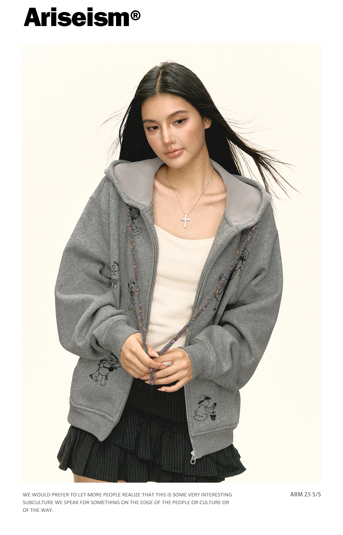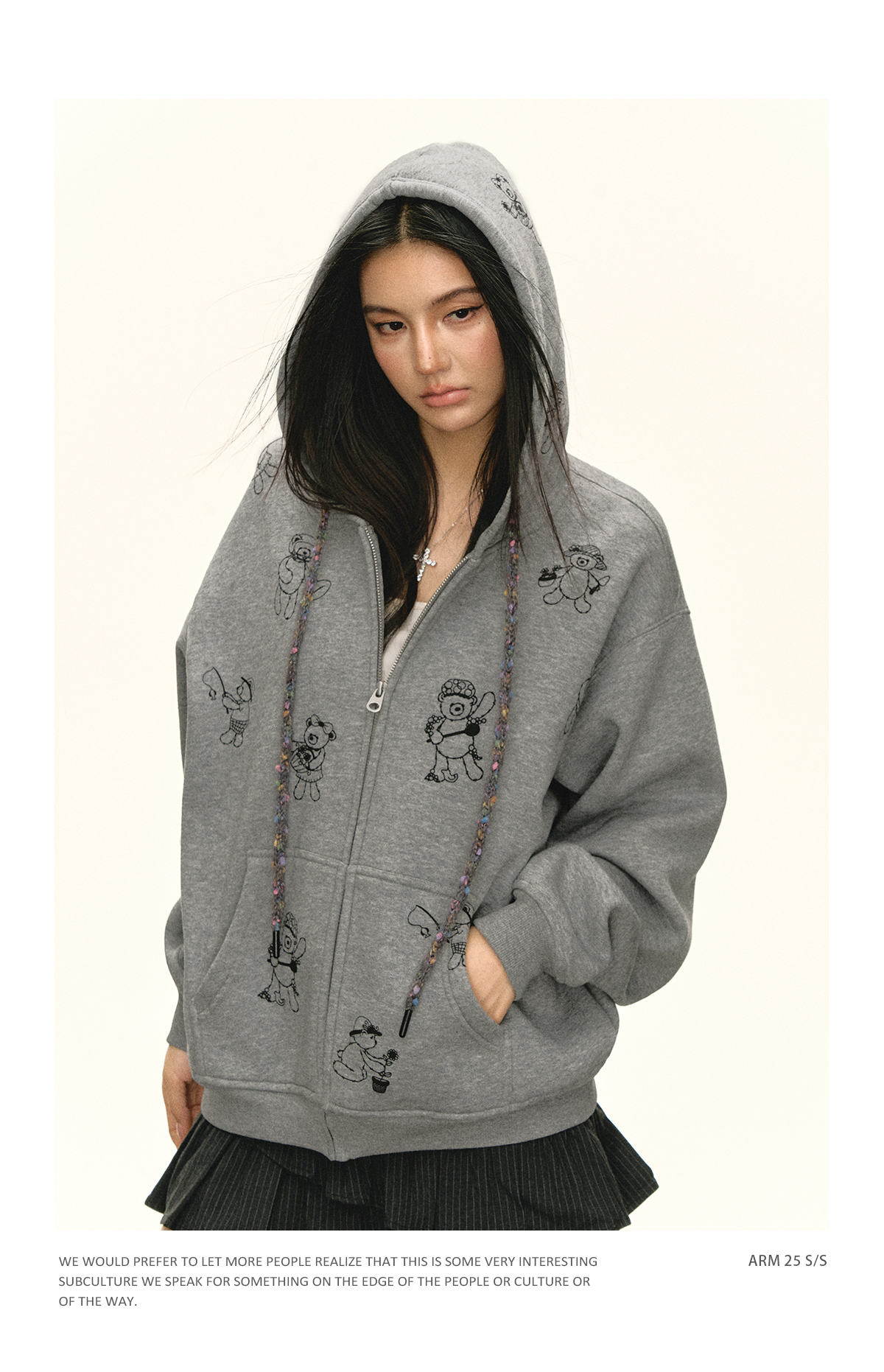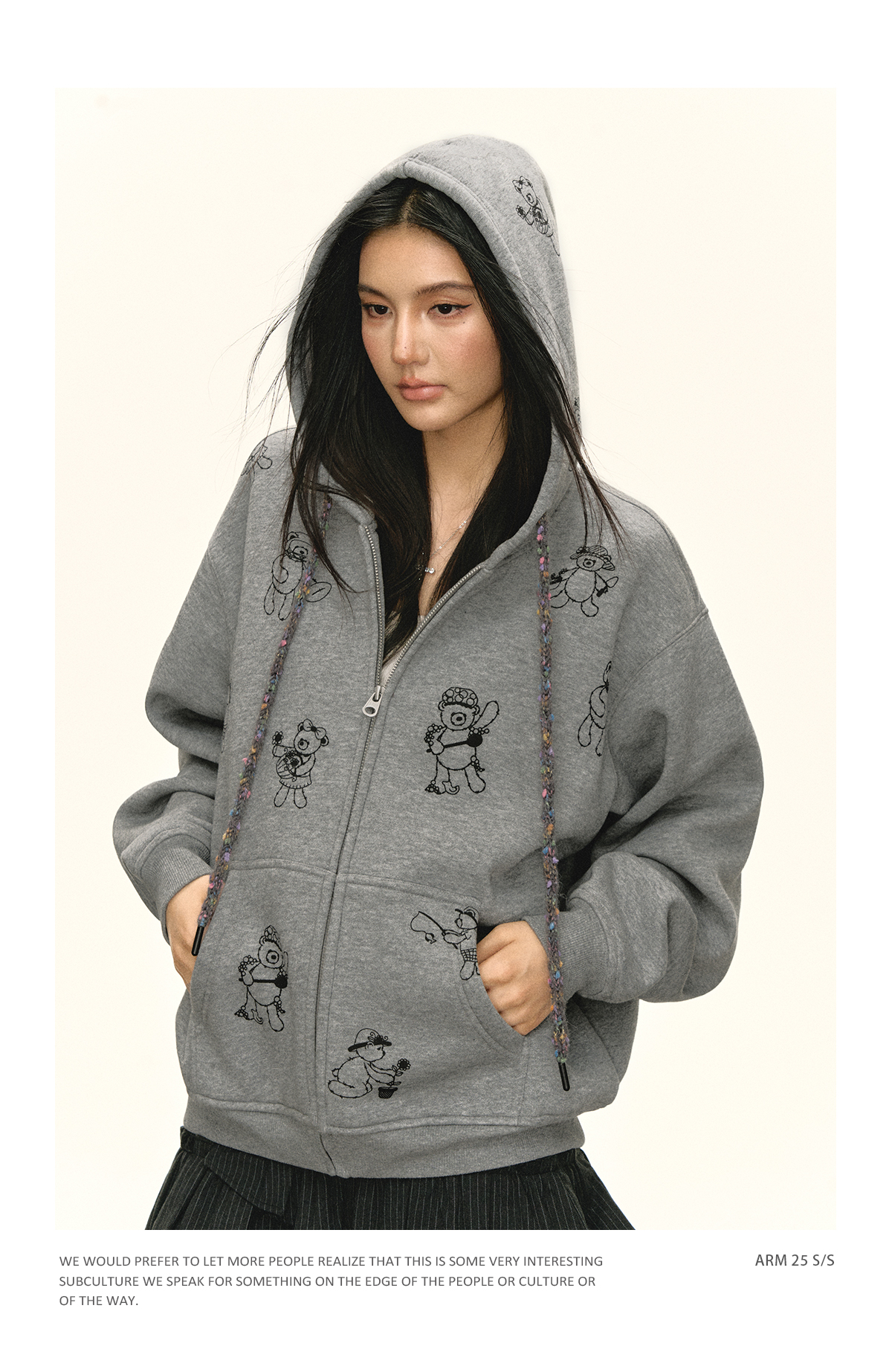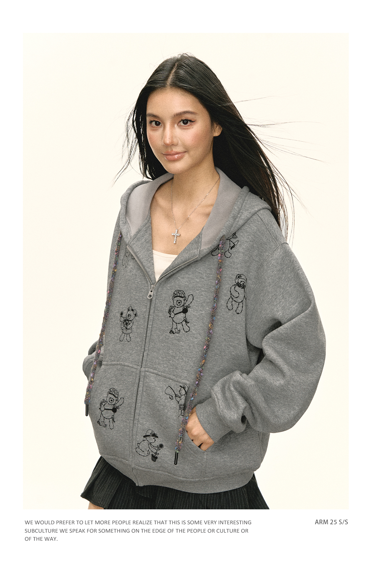 Ariseism 美式复古设计感加绒小熊大外套连帽卫衣女秋季新款