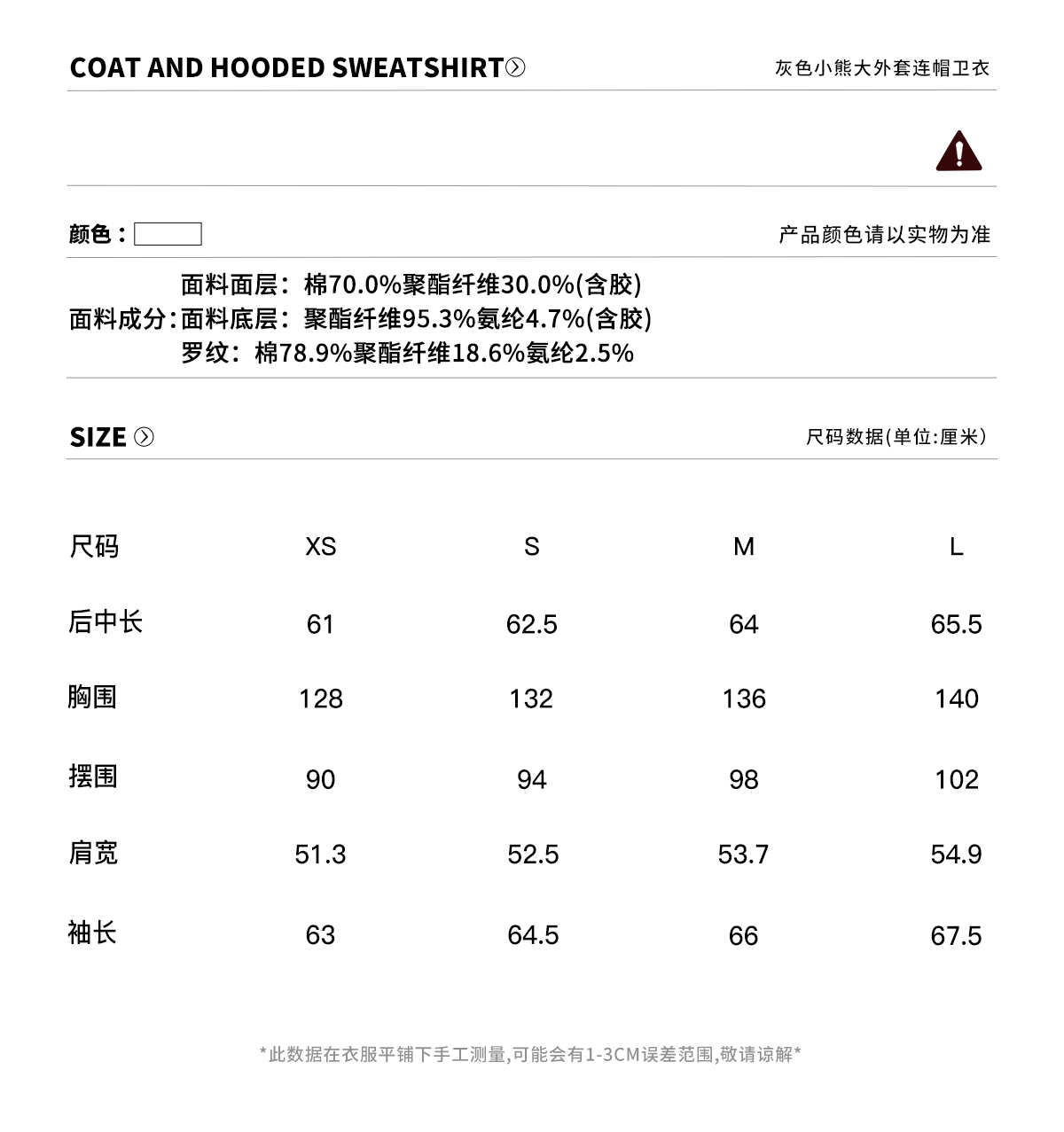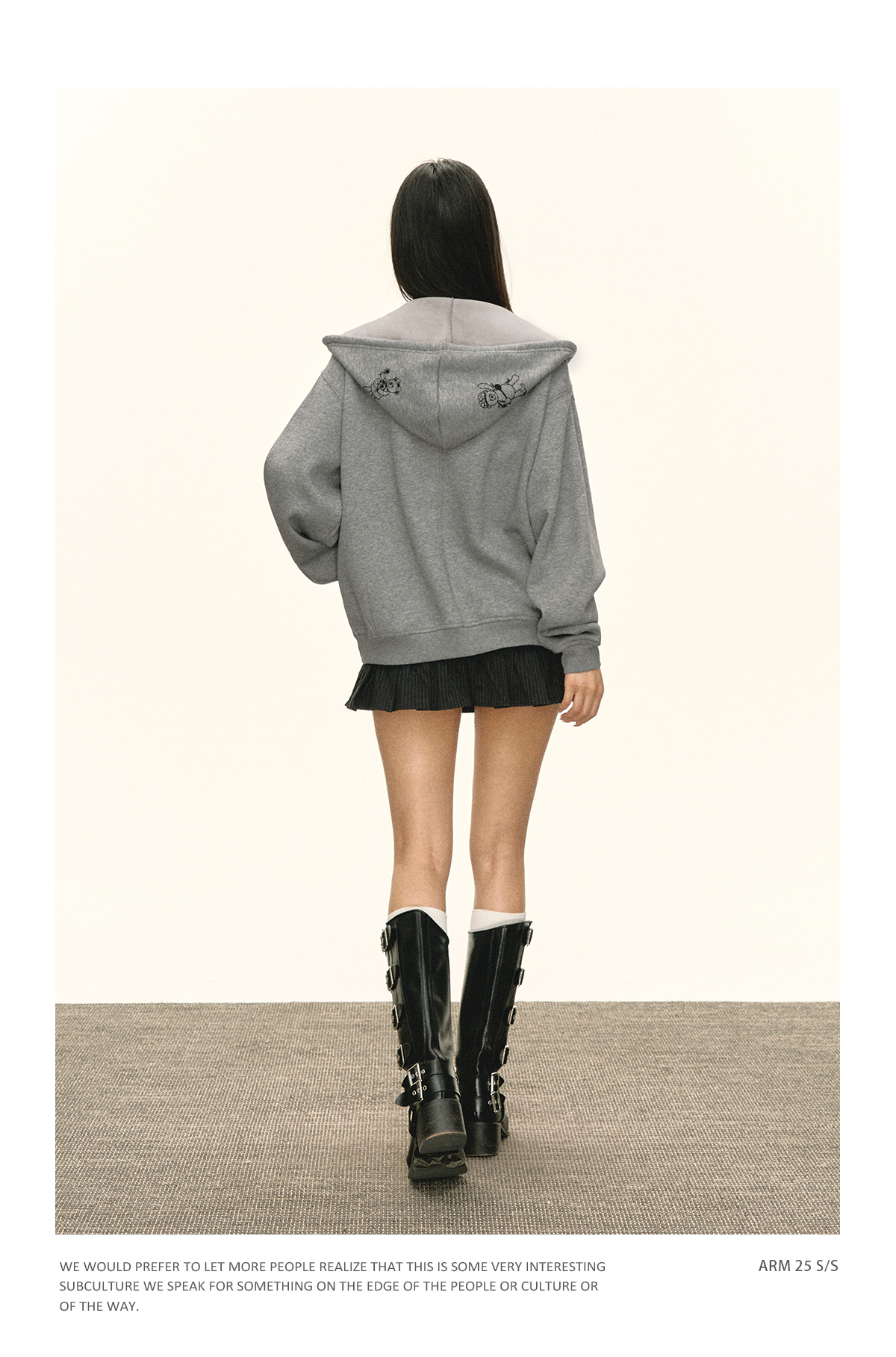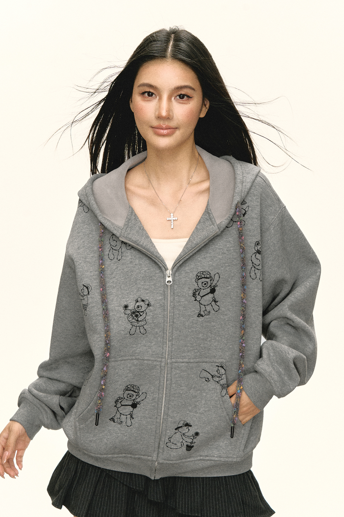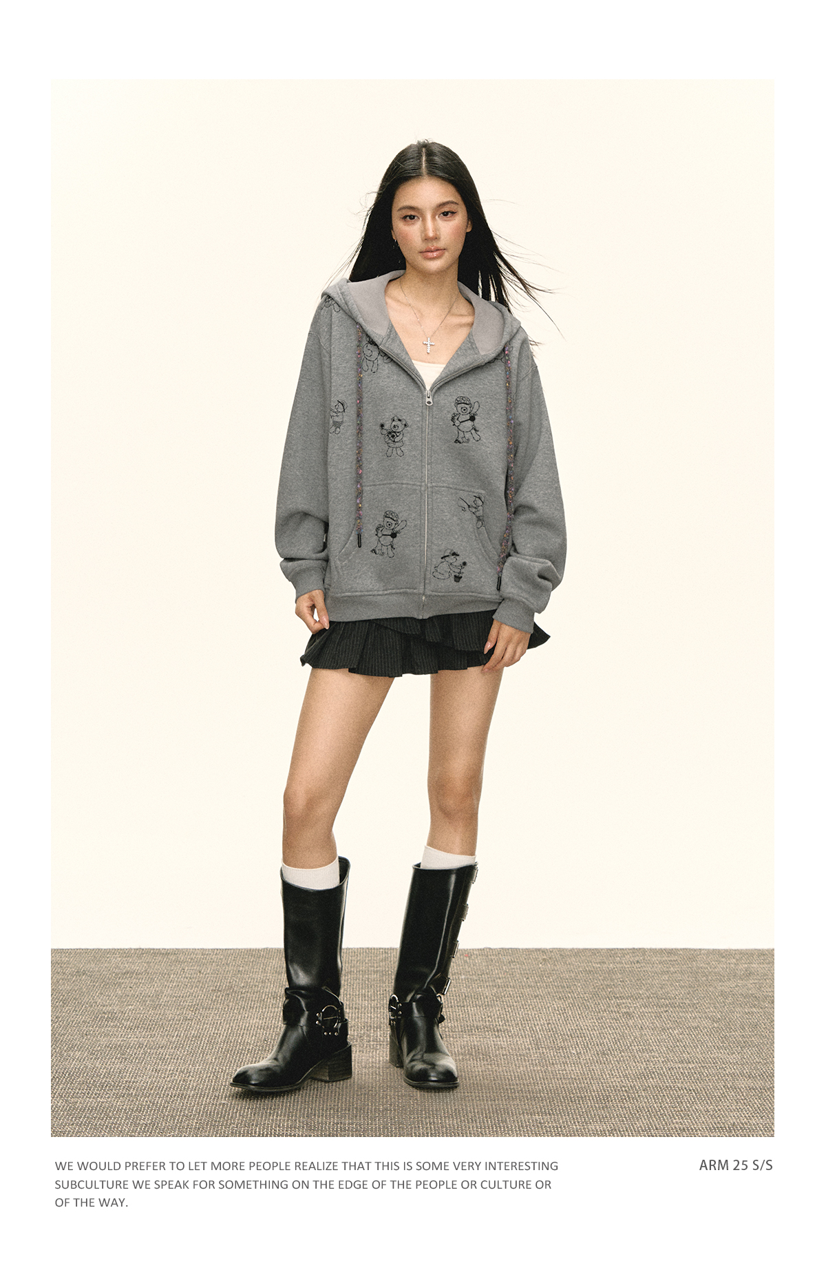 Ariseism 美式复古设计感加绒小熊大外套连帽卫衣女秋季新款
