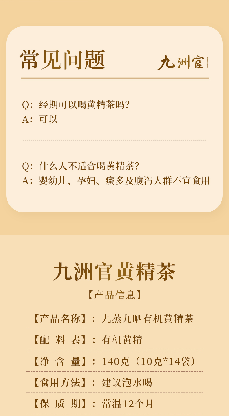 严选 | 九洲官有机黄精茶 140g/盒 内含14袋*10g 香醇耐泡