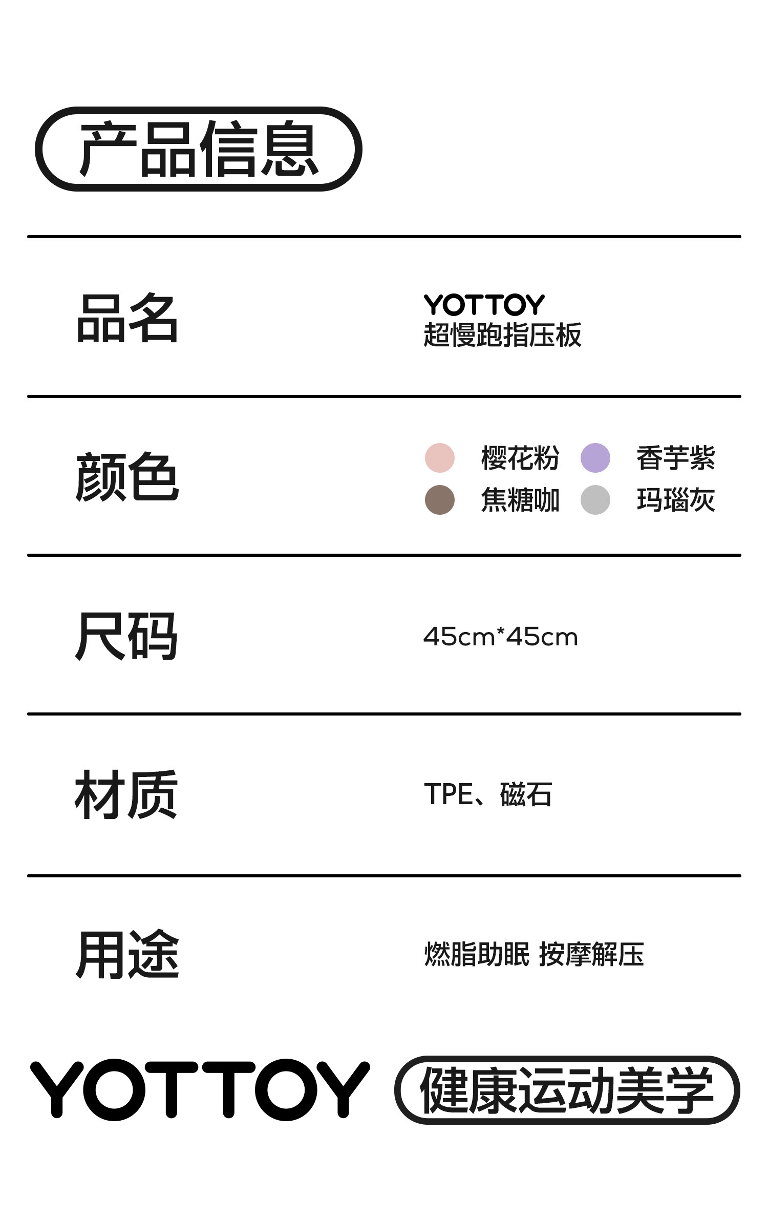 YOTTOY指压板足底按摩垫慢跑脚踩原地跑步脚垫脚底经络疏通趾压板