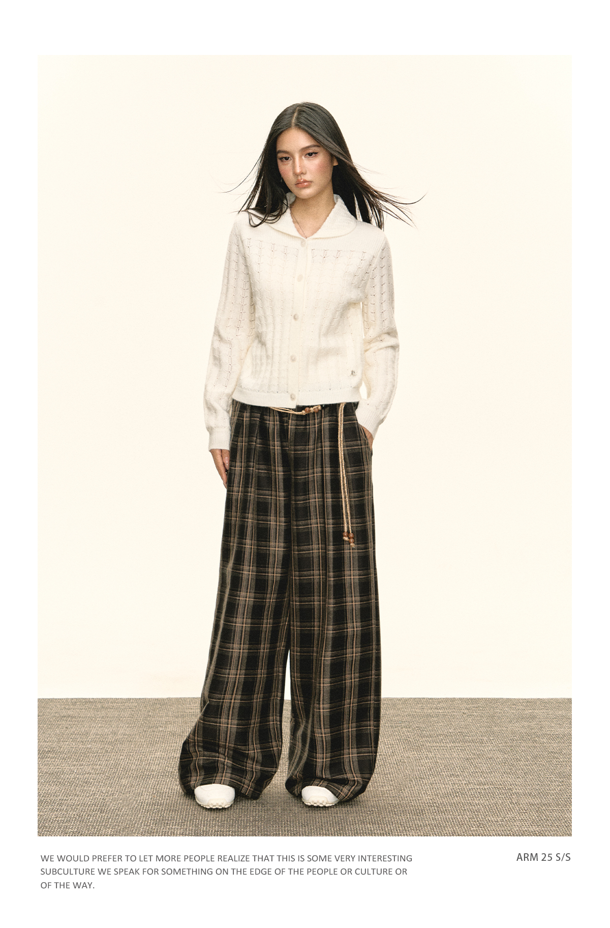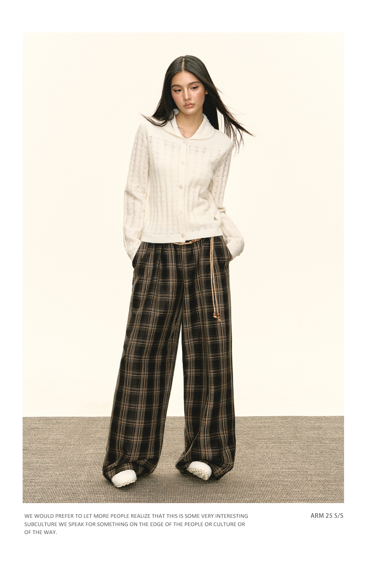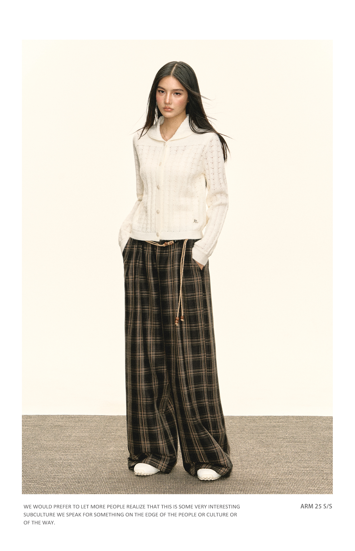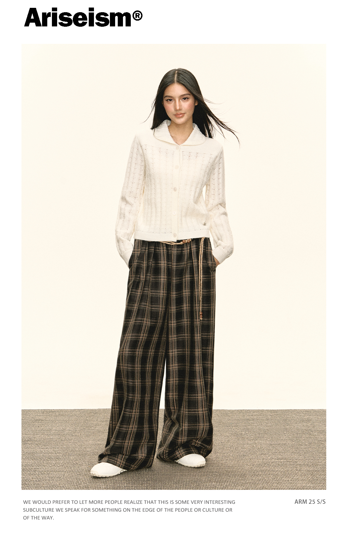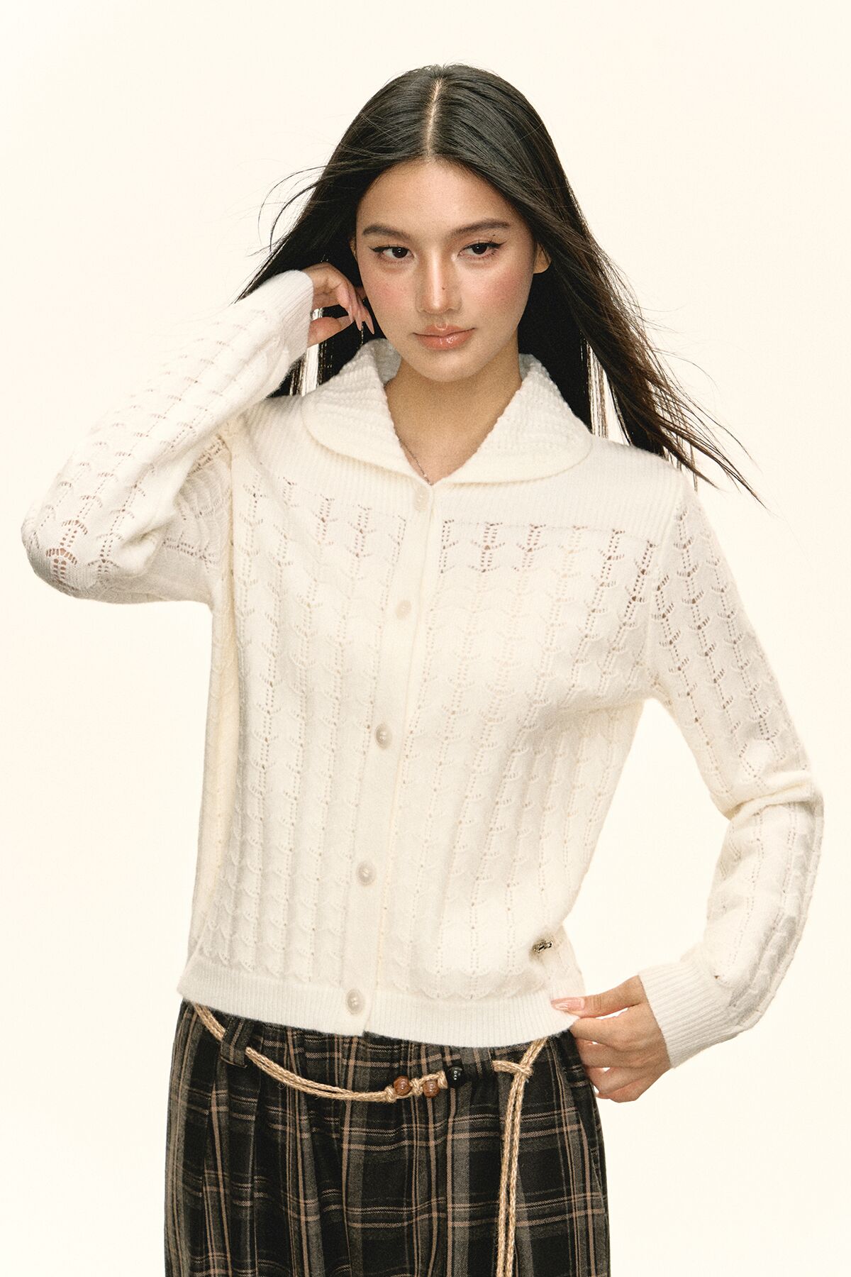 Ariseism 美式复古白色镂空针织开衫毛衣女秋季新款修身上衣外套