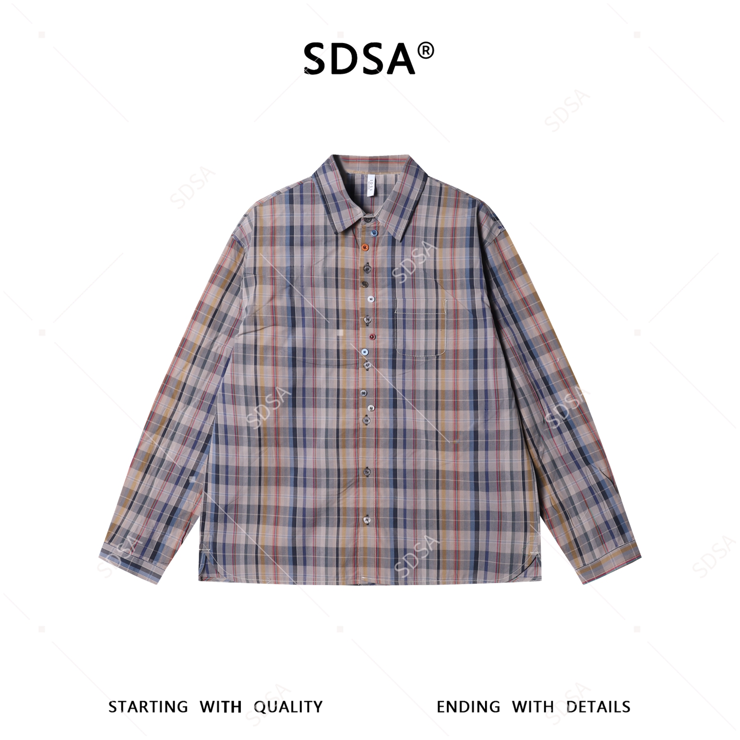 SDSA男装2026新款高贵轻奢老钱风撞色格纹格子长袖衬衫经典百搭