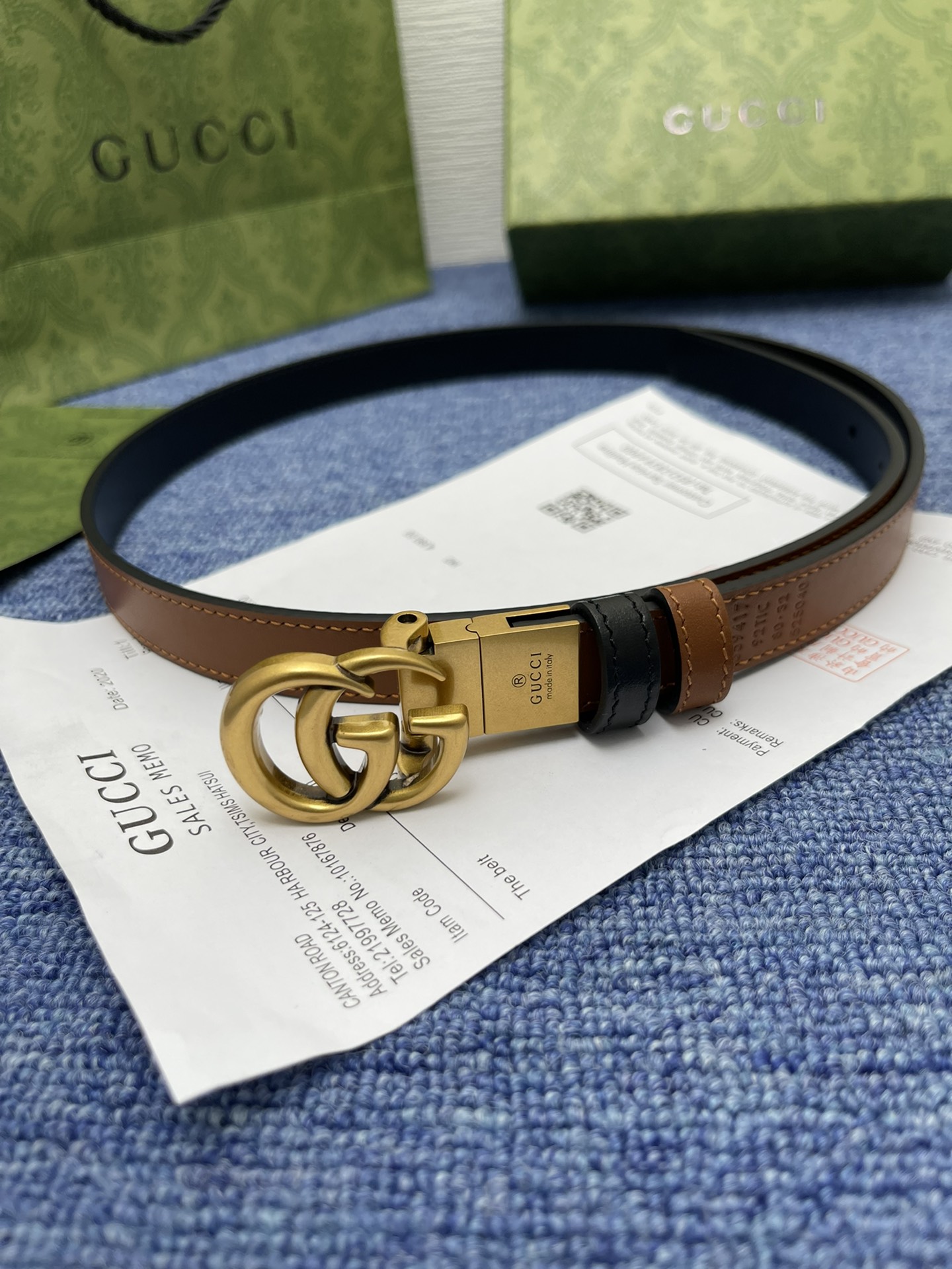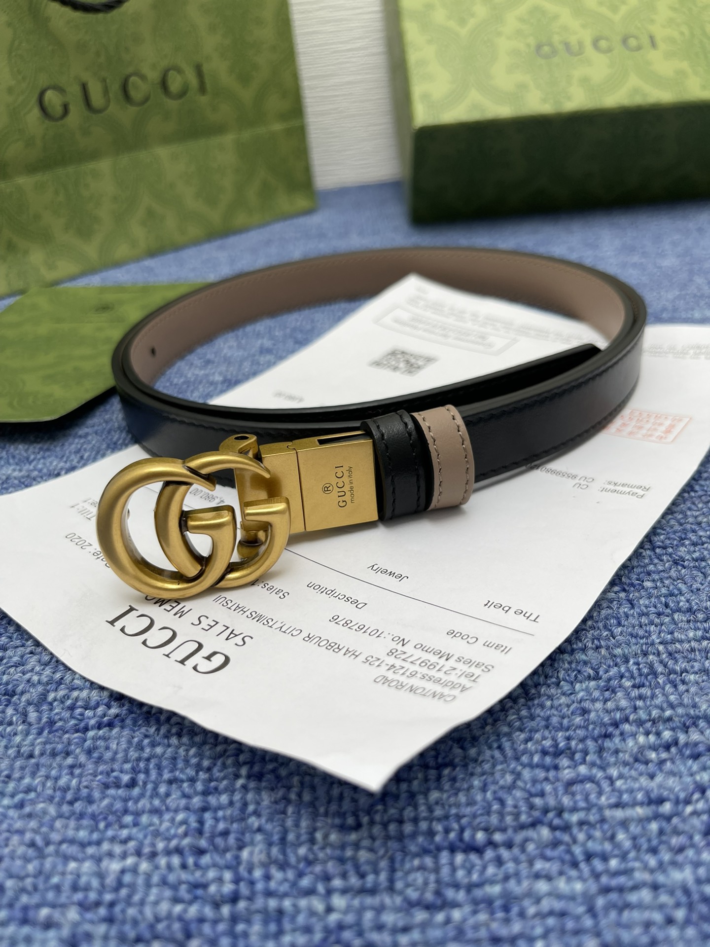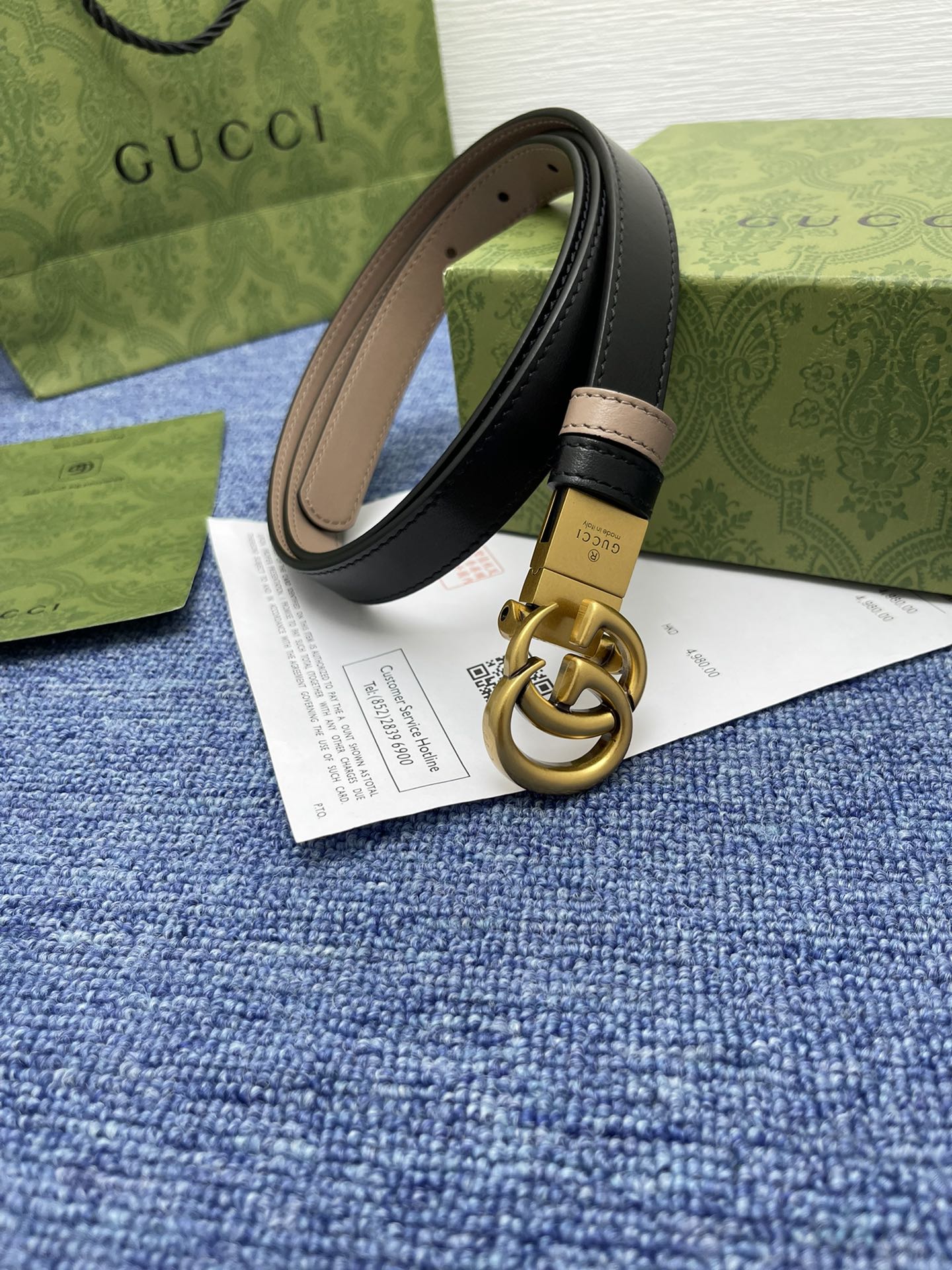 古驰 Gucci 、采用高级Gucci Signature真皮精制而成,触感厚实,饰以双G商标带扣。2.0CM