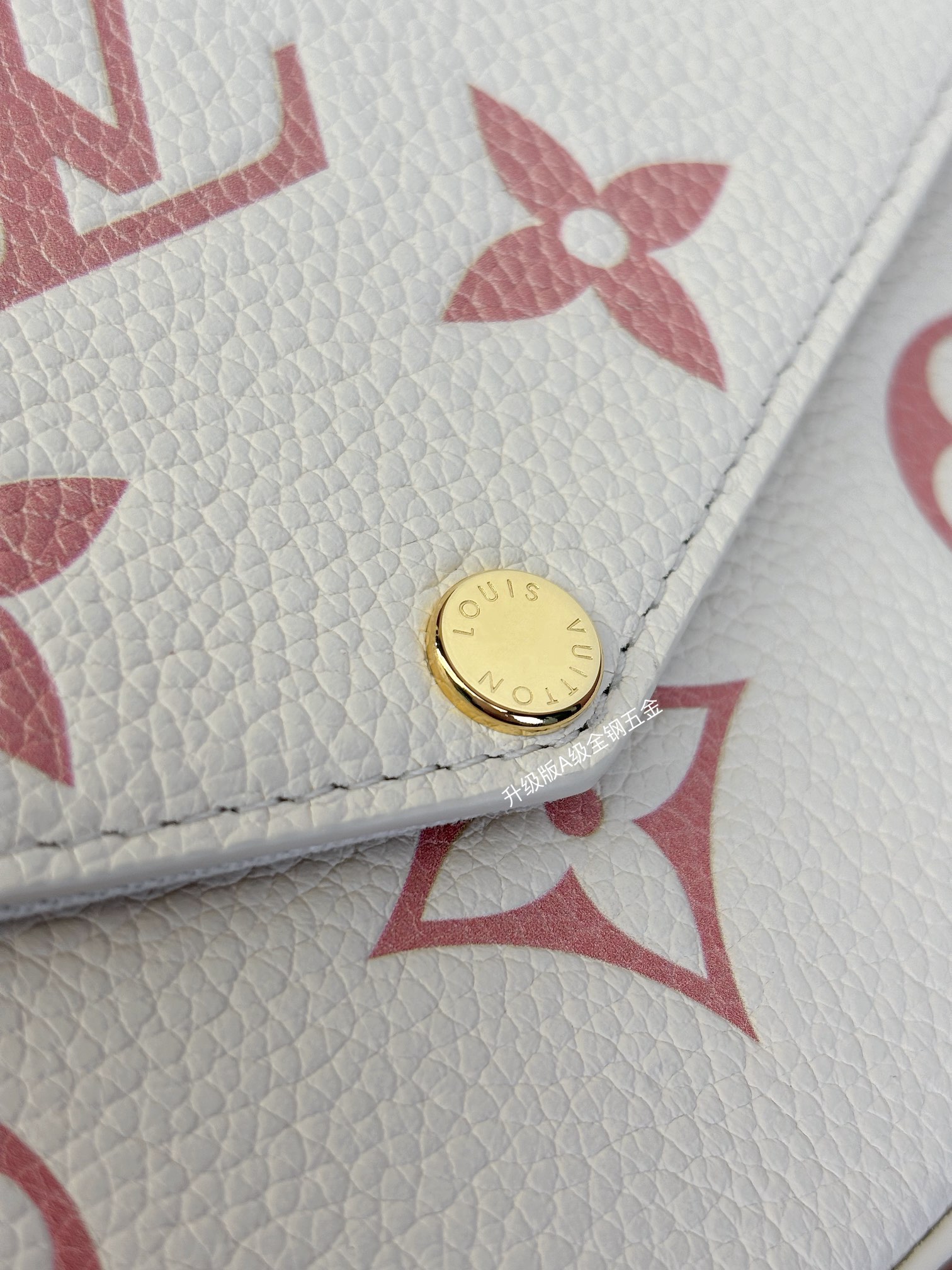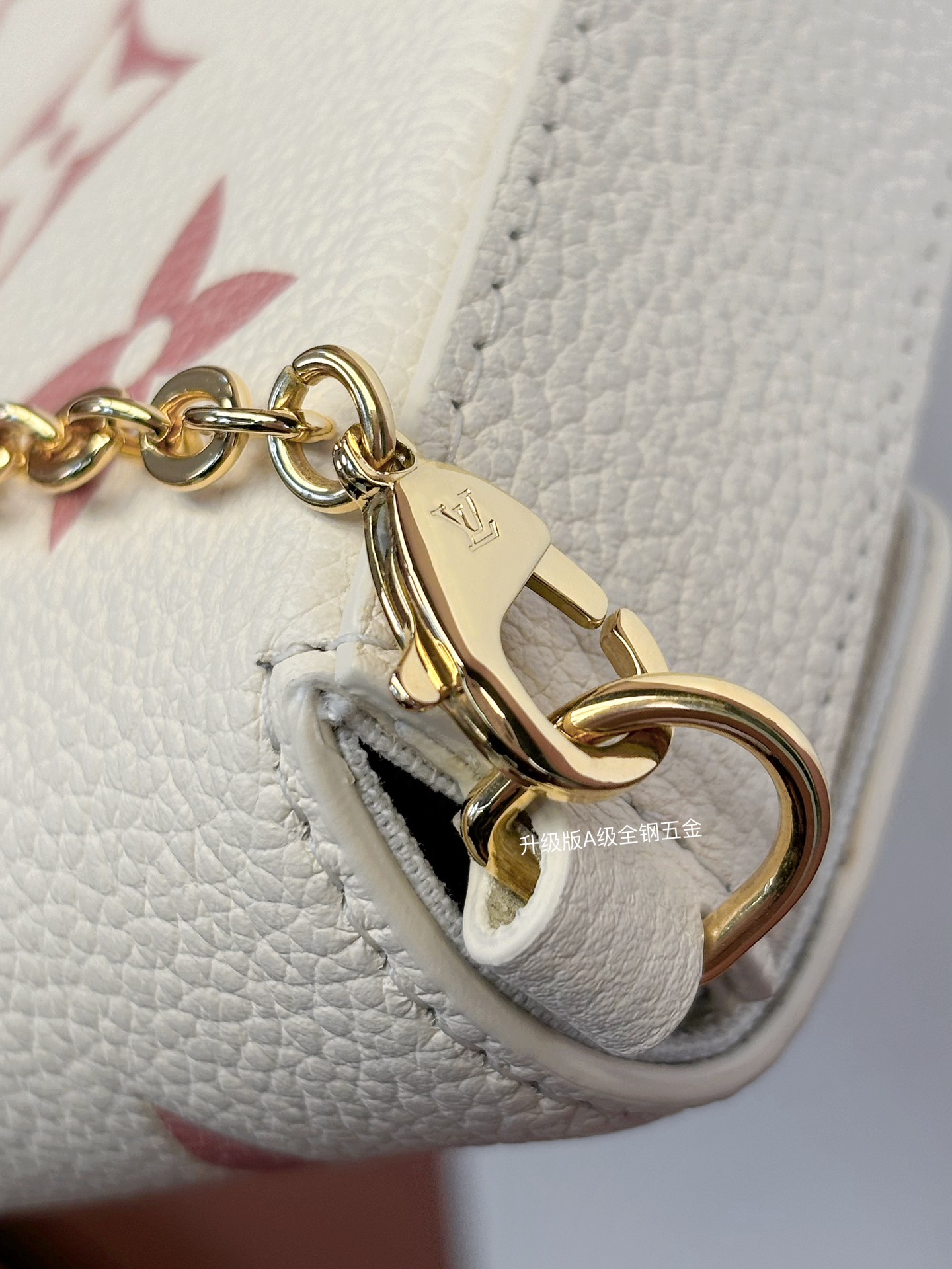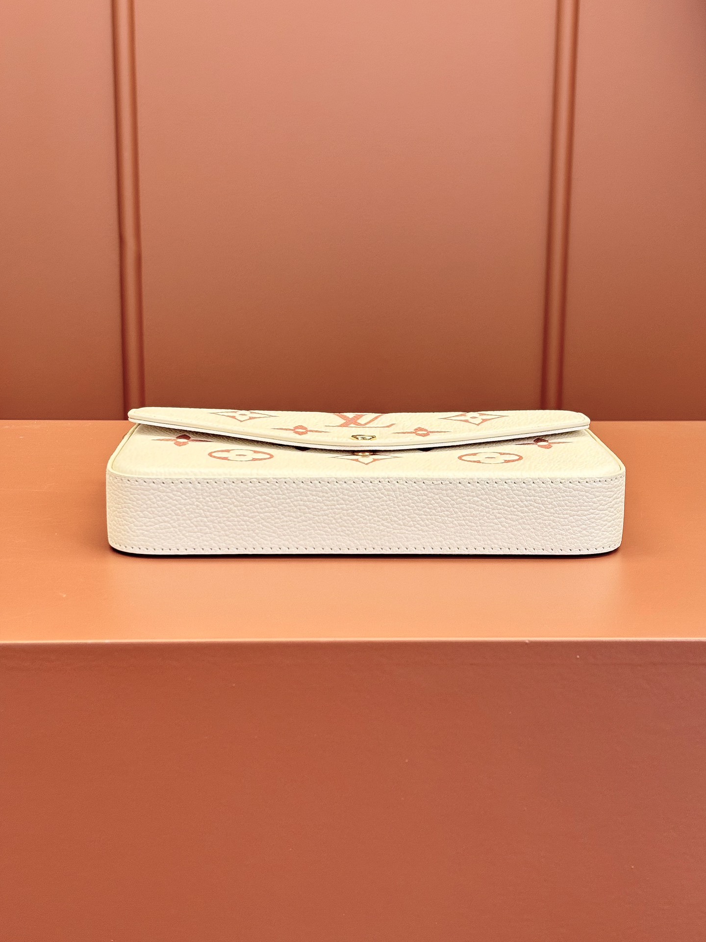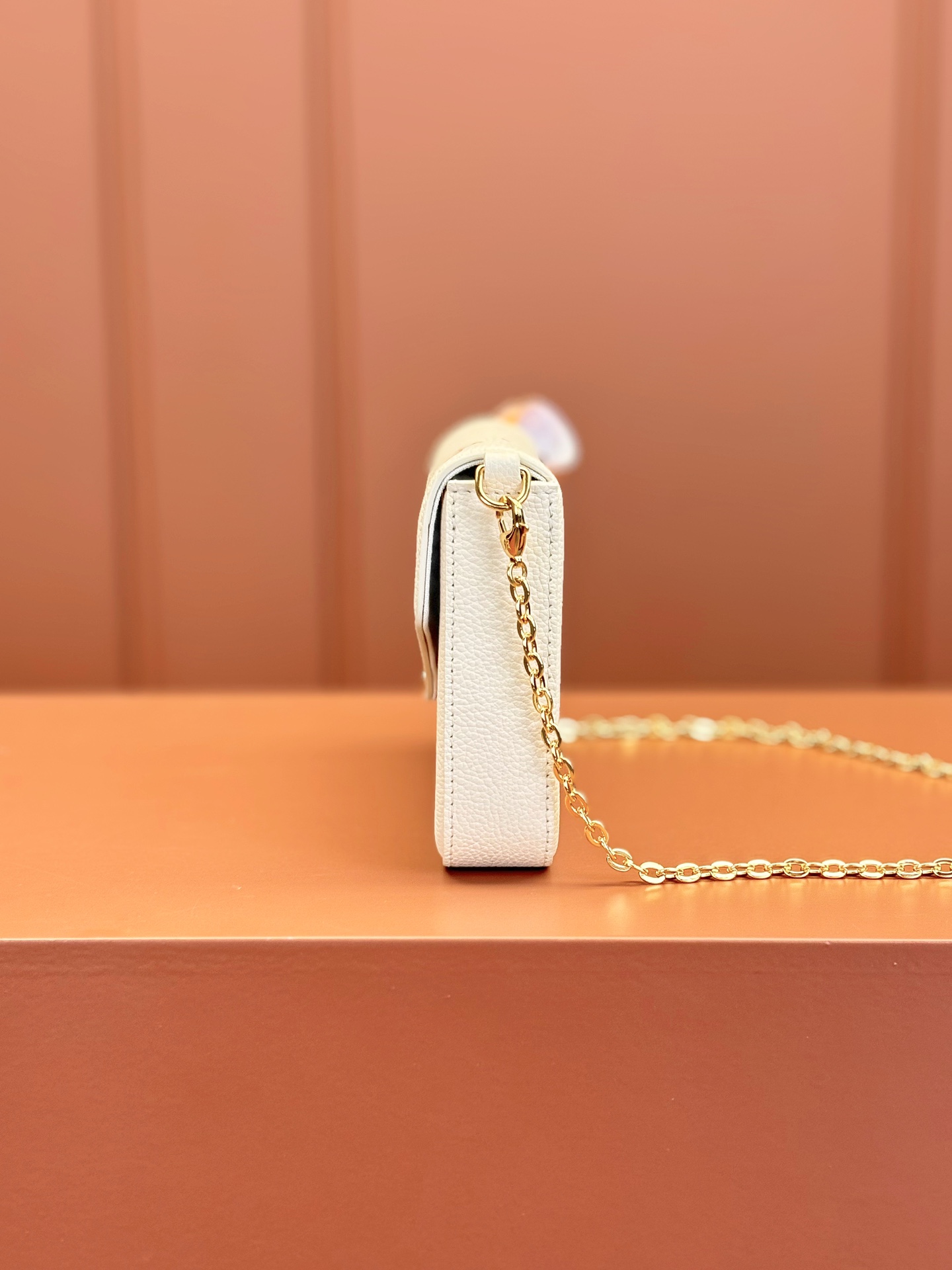 本款 Pochette Félicie 链条包选用 Monogram Empreinte 皮革,以淡雅色彩描绘 Monogram 图案。信封式构型囊括可拆卸内袋,取下链条即可化身优雅手拿包。