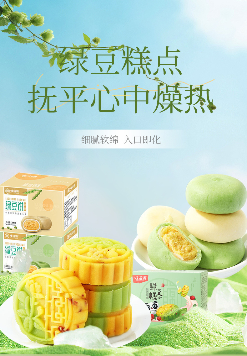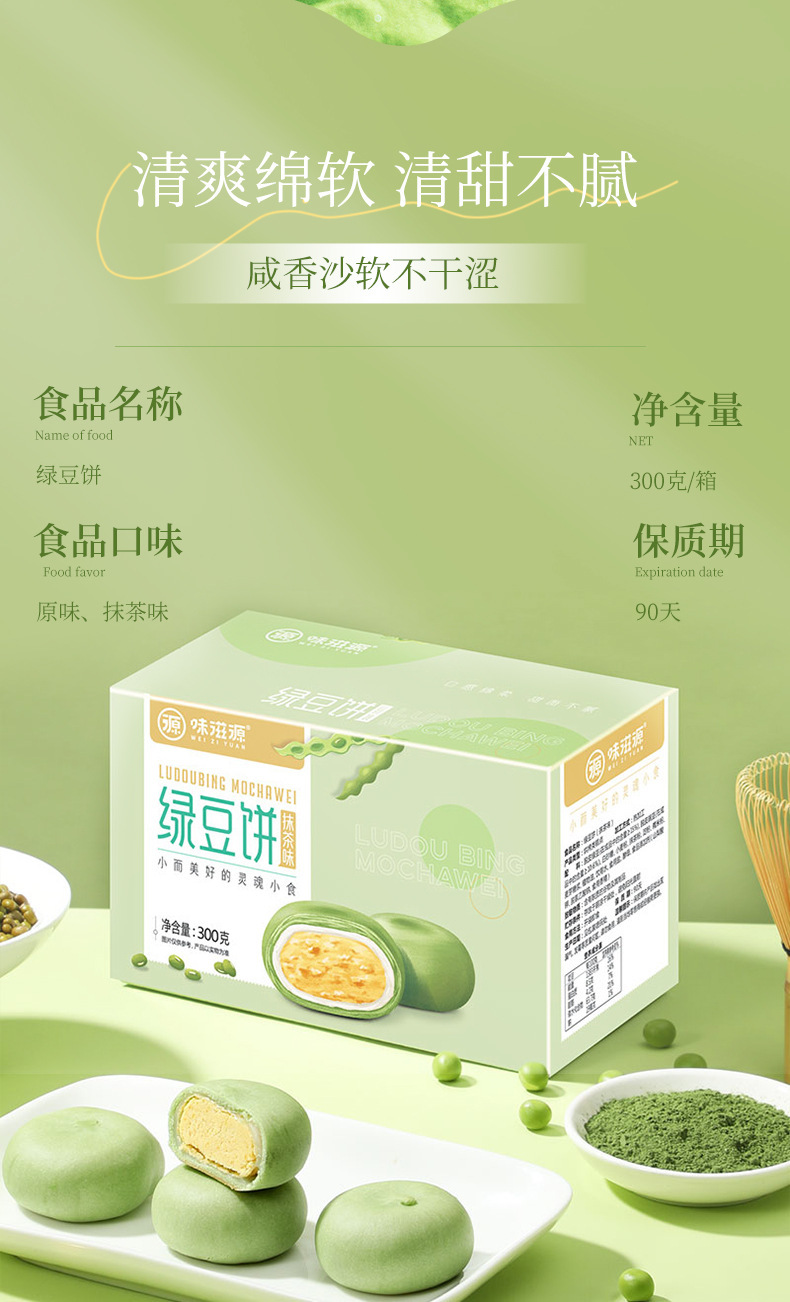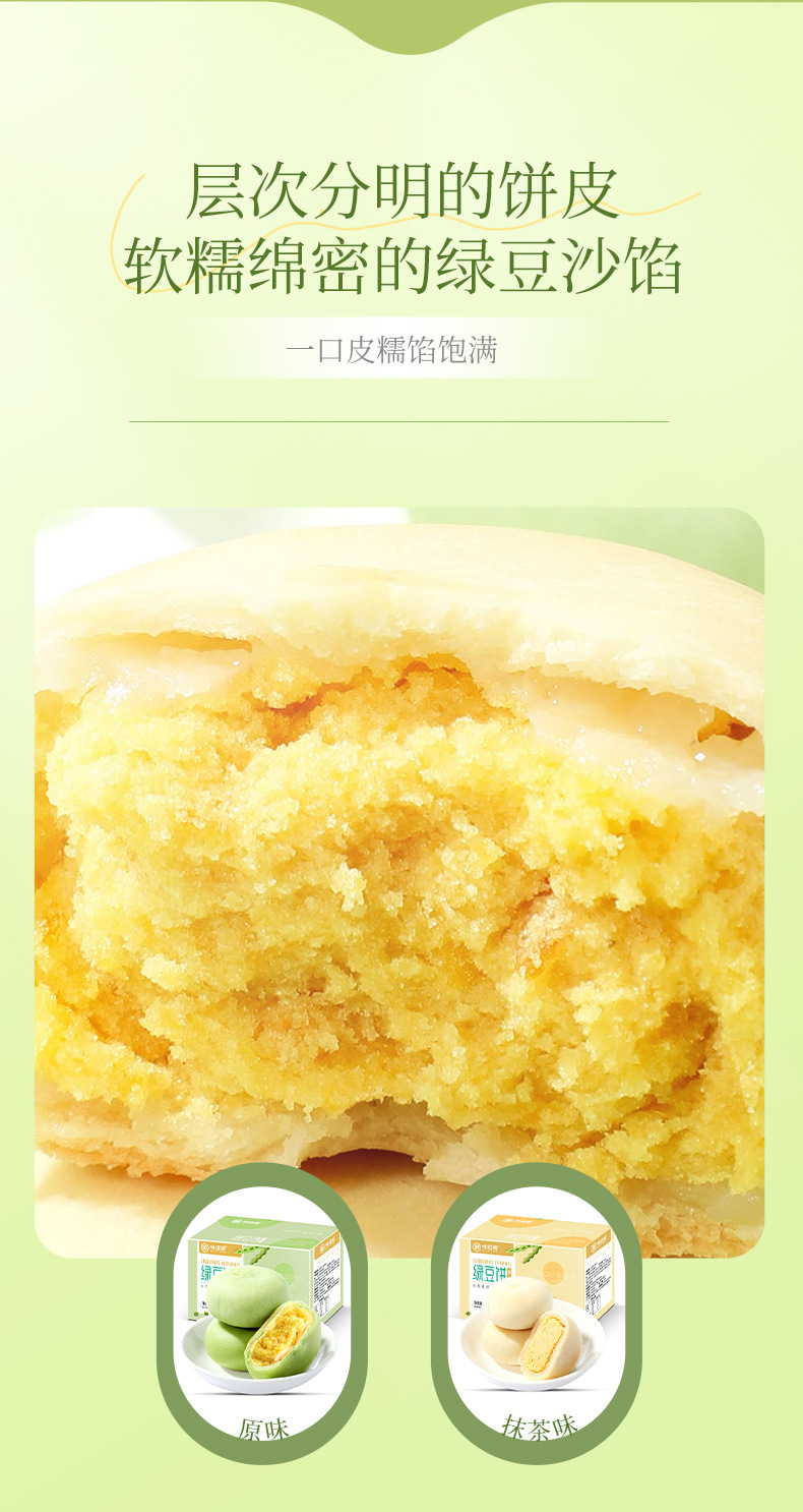 【好吃又营养!口口吃出大满足】味滋源绿豆饼盒装原味冰皮绿豆糕抹茶味早餐面包休闲零食小吃。ry