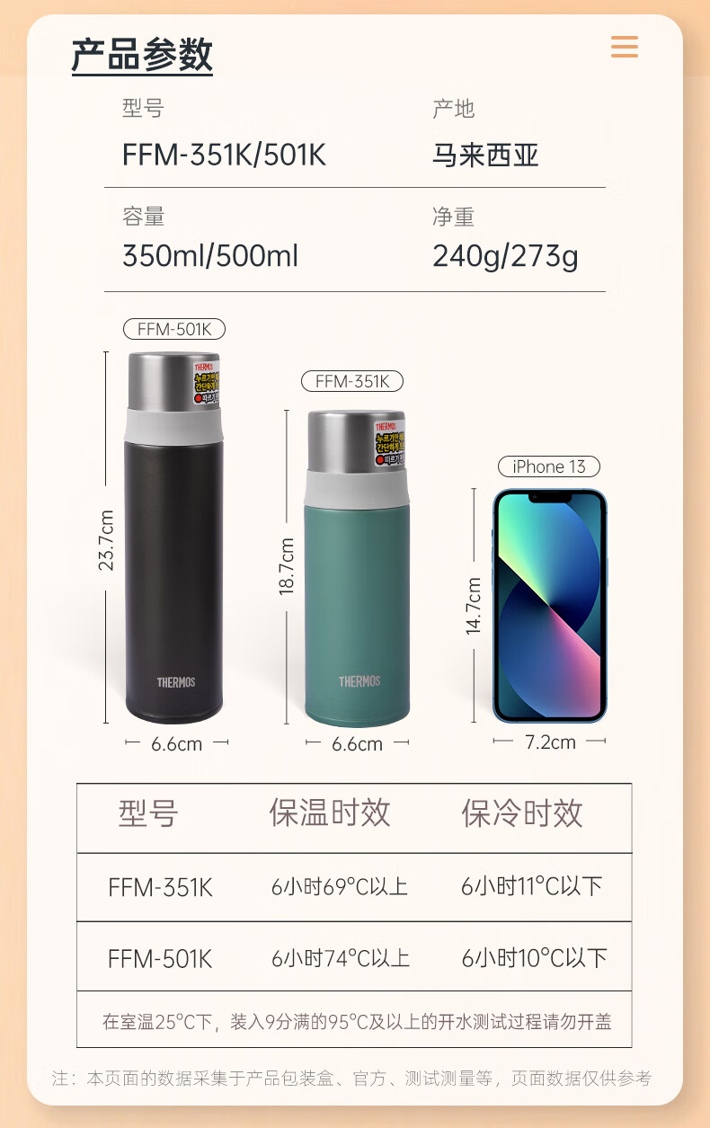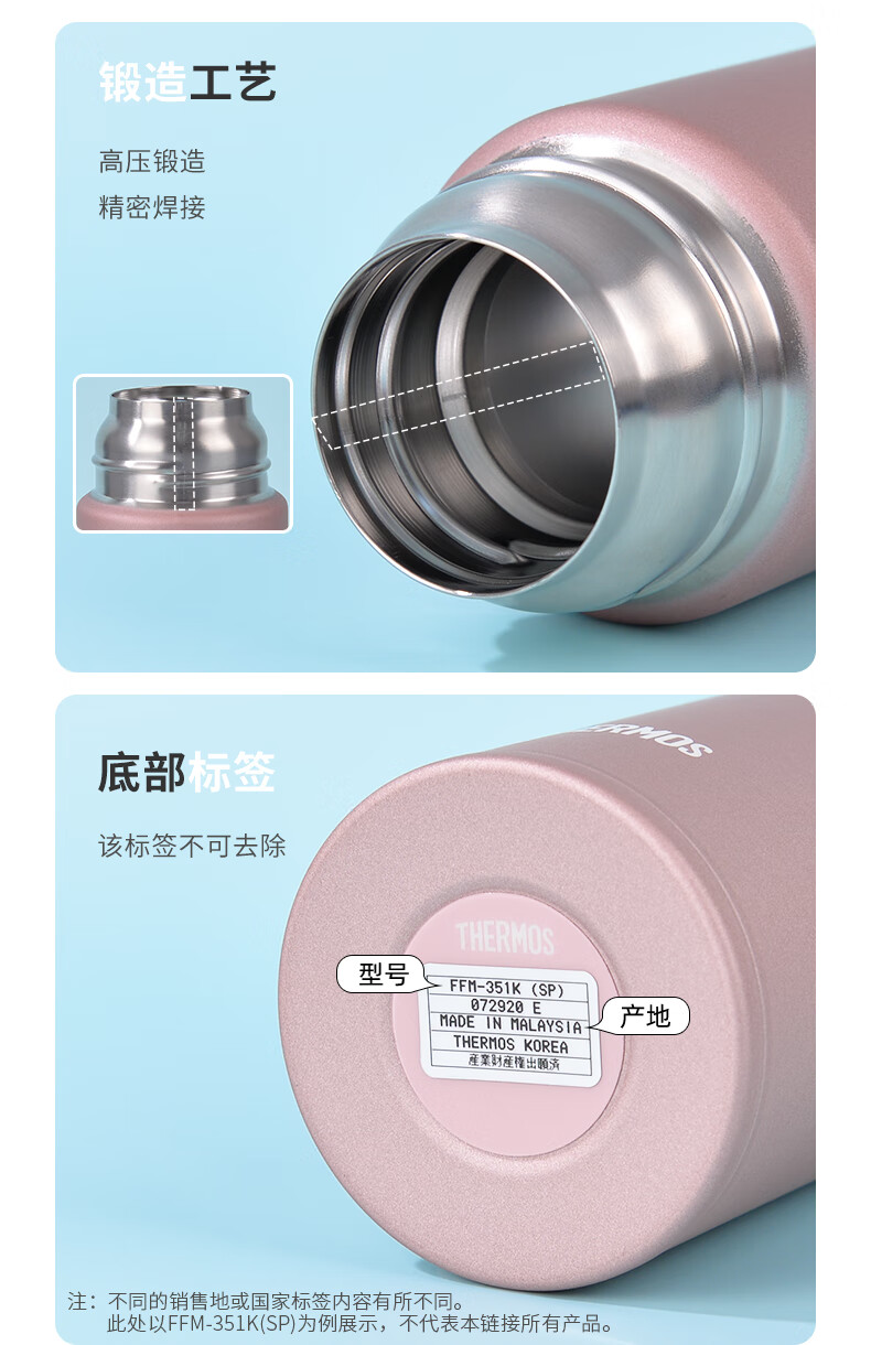 THERMOS膳魔师不锈钢保温杯女式小巧便携商务水杯FFM-501K-CN/FFM-351K-CN