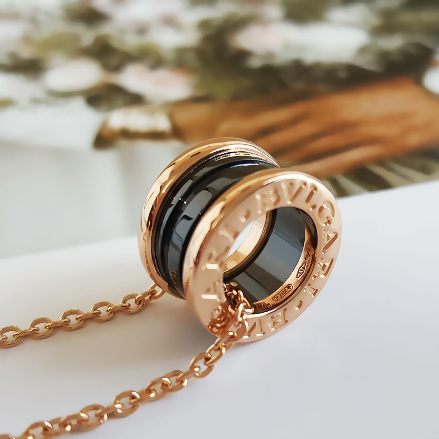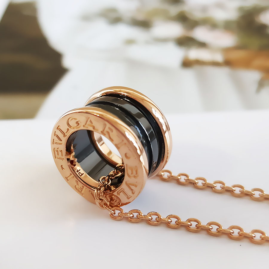 【95新】BVLGARI宝格丽B.zero1系列346083 18K玫瑰金黑陶瓷弹簧项链链长约45cm女士现售价:10500!291224TJ01