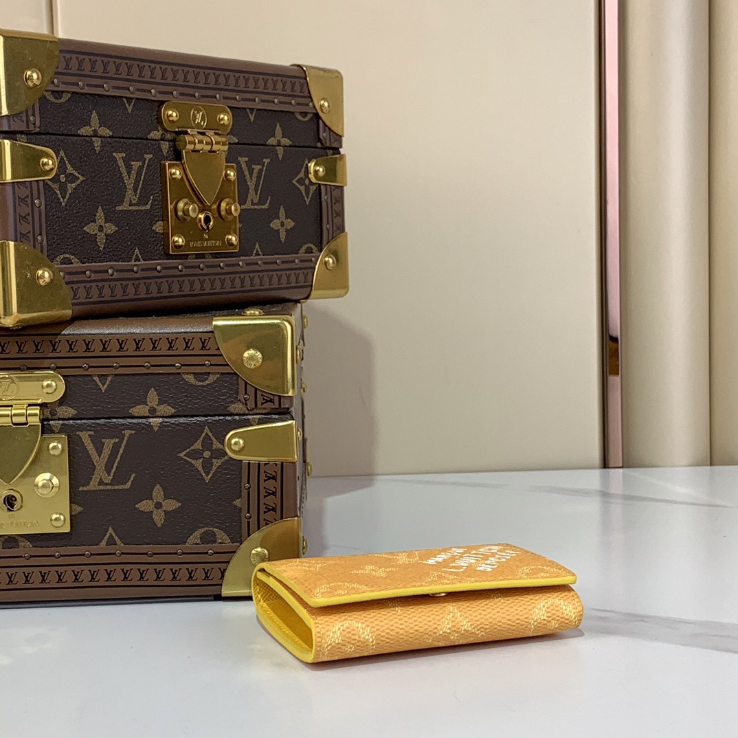 本款名片夹以 monogram heritage 帆布构筑纤薄轮廓,可轻松置入口袋或手袋。翻盖通过隐藏式按扣固定,开启可见风琴隔层和卡片夹层。牛皮革内衬和源于 damier 帆布的 marque1.vuitton déposée 标识再添考究细节。