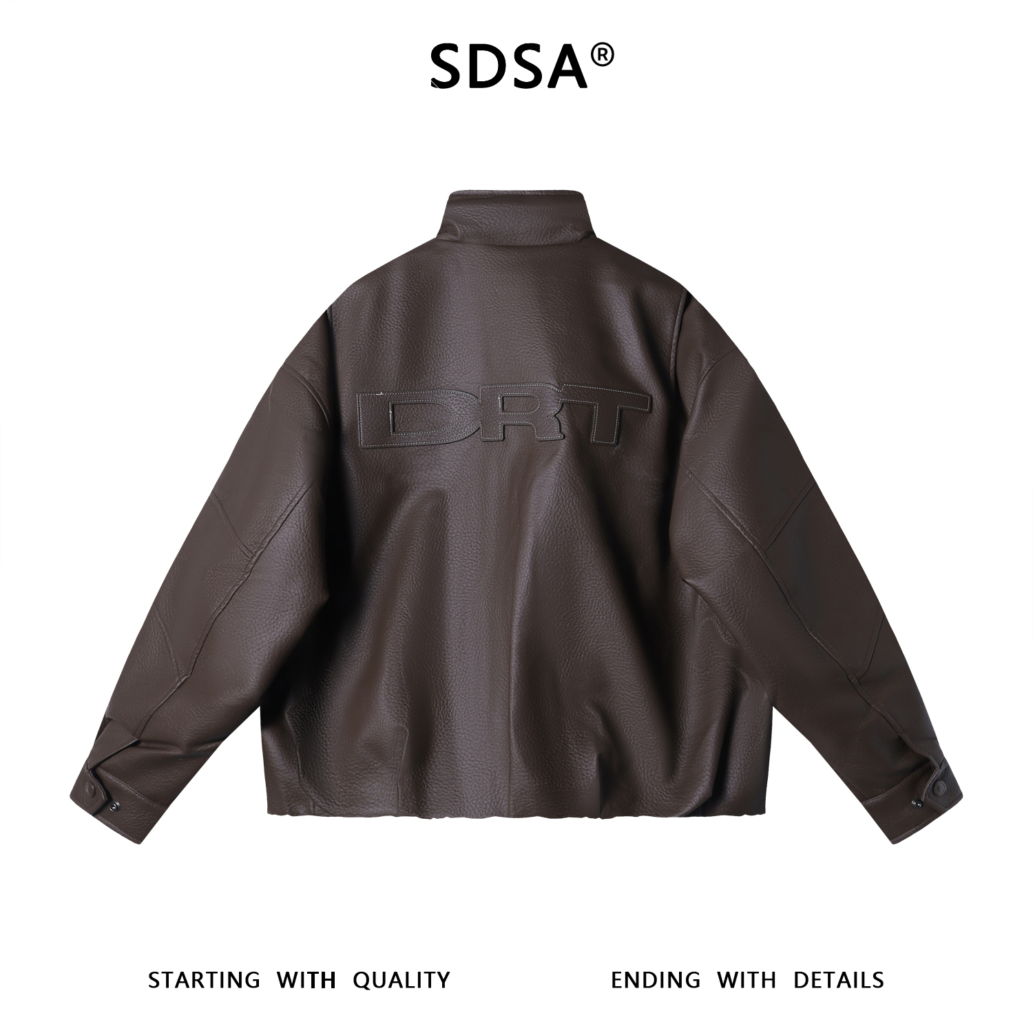 85102SDSA男士秋冬新款痞帅男装简约纯色字母皮面立领羽绒服百搭宽松