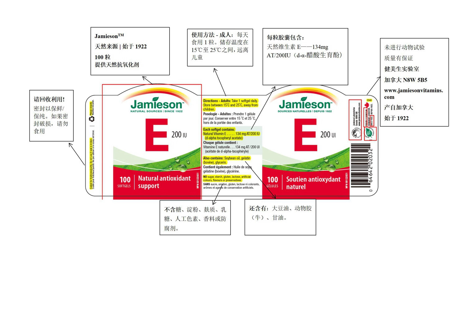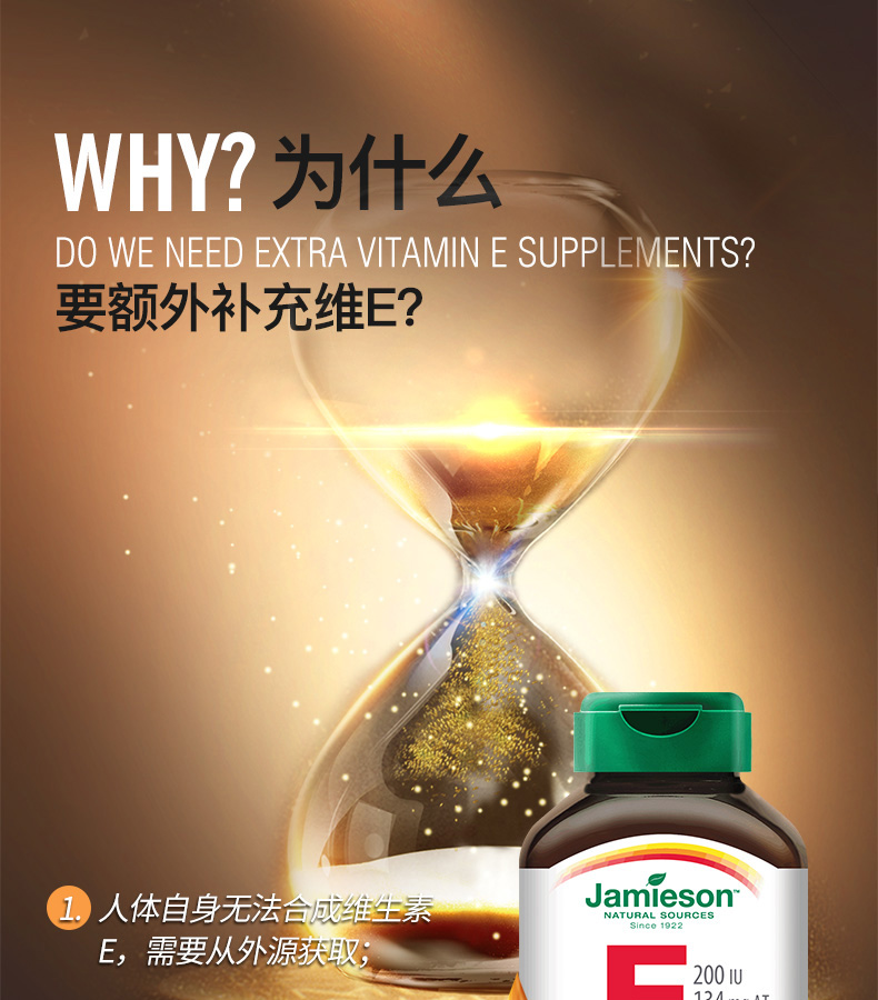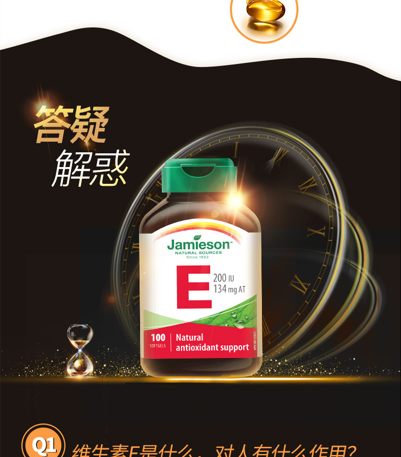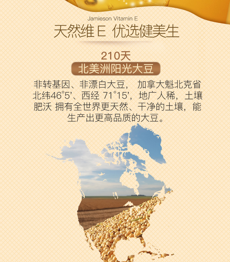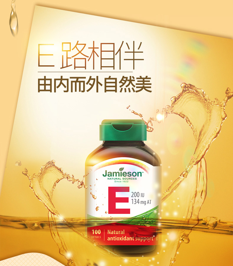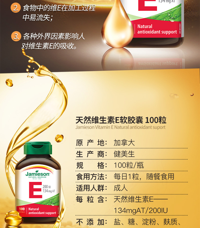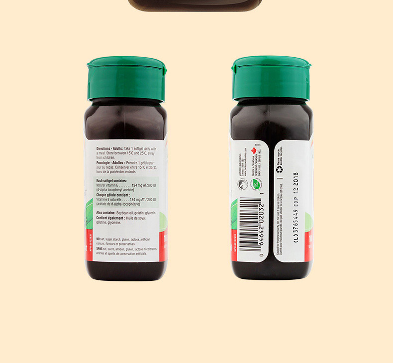 【分销】健美生高含量维生素E 200IU 100粒/瓶源自优质大豆精华 零添加海外进口