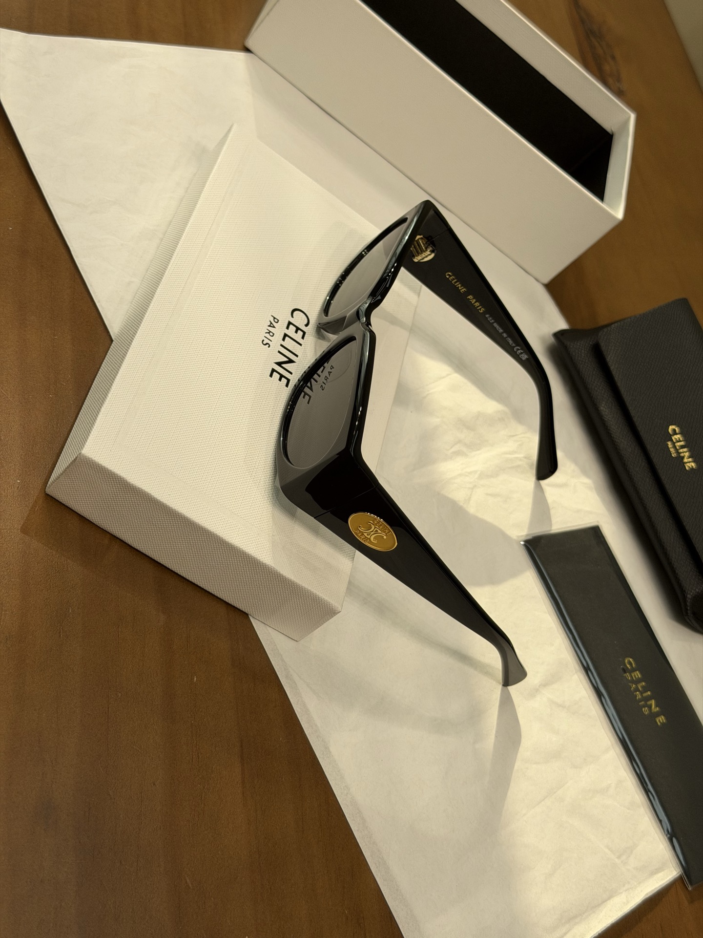 配套包装 谁懂啊!被刘诗诗这组Celine大片狠狠拿捏了! 同款墨镜我直接闭眼入,戴上才知道什么叫“一眼贵气”。 这只Celine椭圆墨镜真的太会了👇 CL40347U • 黑金配色:亮黑醋酸镜框+金色凯旋门金属牌,复古又摩登,自带滤镜感 • 版型封神:窄框设计修饰脸型,方圆脸/高颧骨姐妹直接冲,秒变“上镜小脸” • 细节拉满:镜腿上的金色椭圆牌是灵魂,低调又有辨识度,随便搭西装、风衣都很有腔调 刘诗诗用它配廓形西装,又A又飒;日常搭T恤牛仔裤,也能轻松穿出法式松弛感。 这只墨镜不仅是防晒神器,更是提升穿搭质感的“硬通货