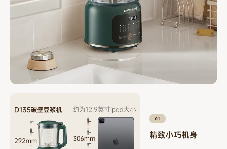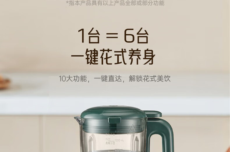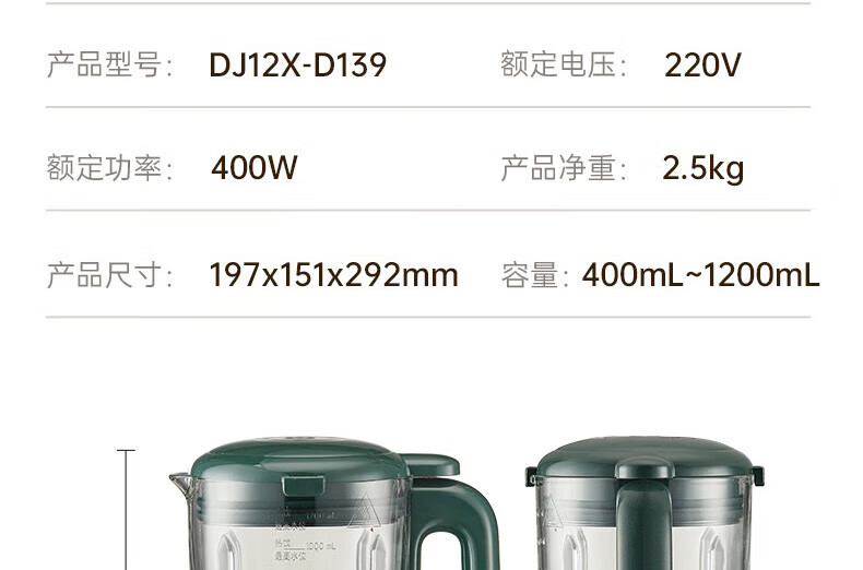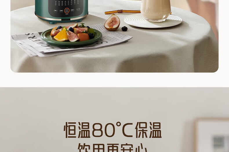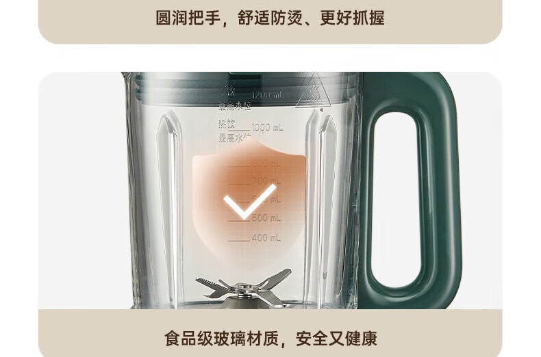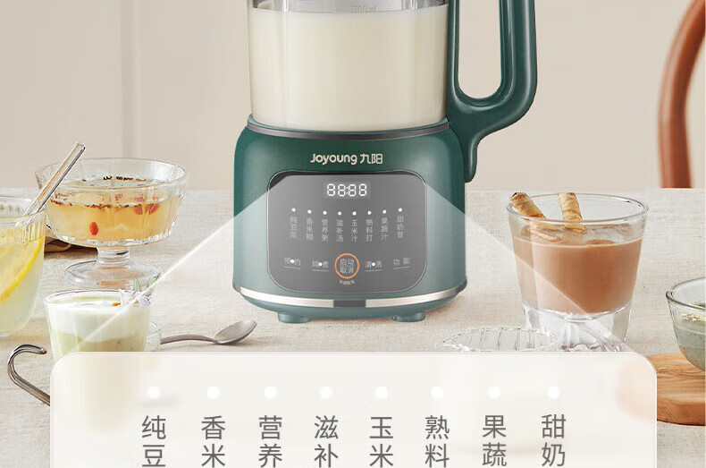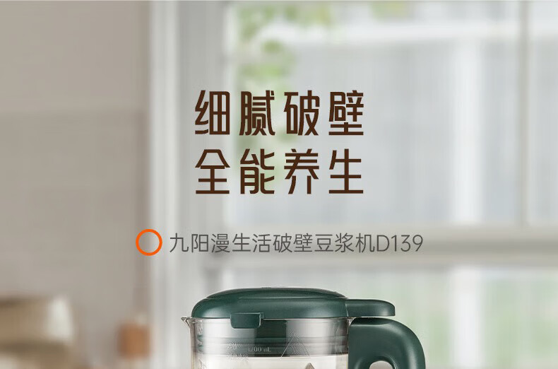 九阳破壁豆浆机免滤家用多功能大容量1.2L搅拌机料理机可视豆浆机DJ12X-D139 绿色
