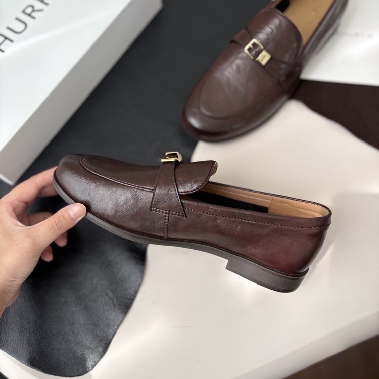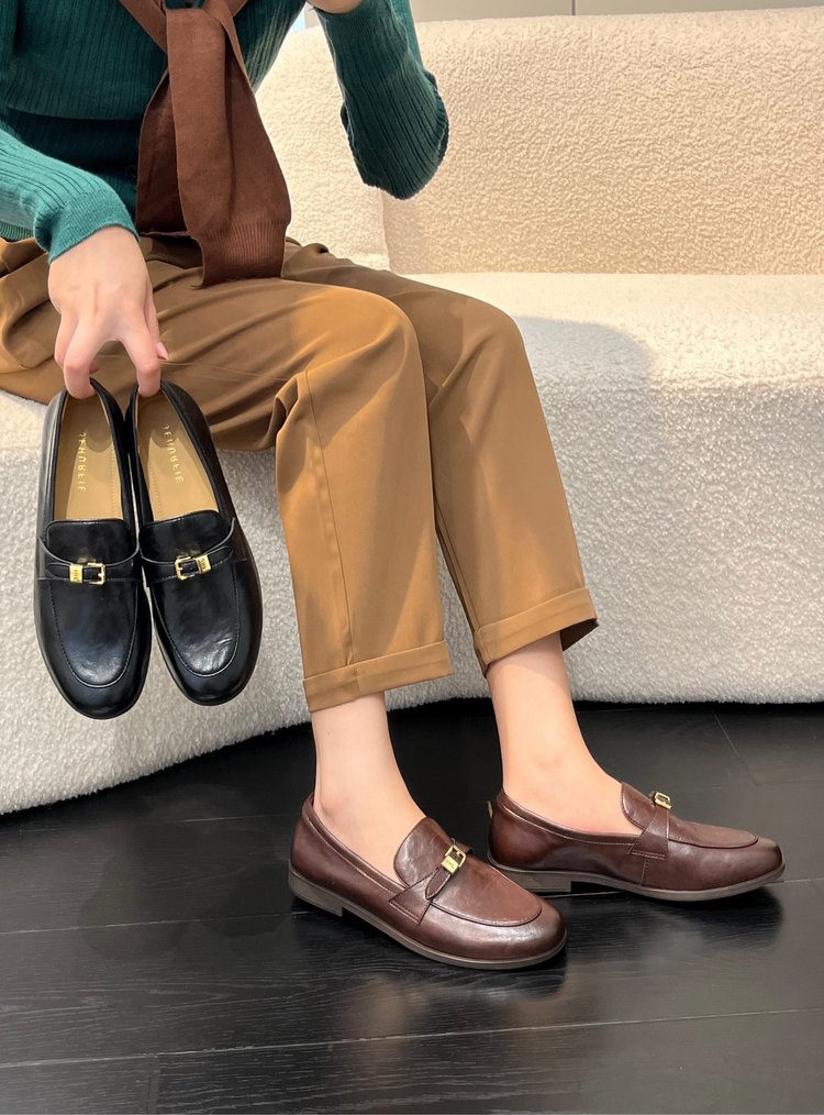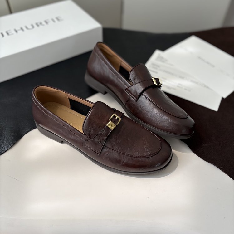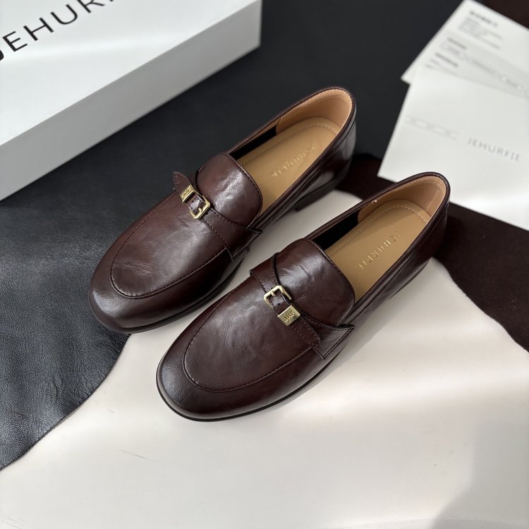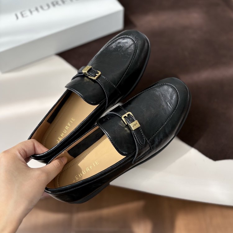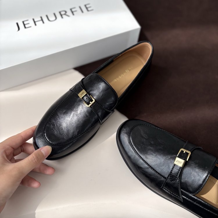 JEHURFIE/纪华菲腔调款~复古小金扣一脚蹬乐福单鞋AB25367
