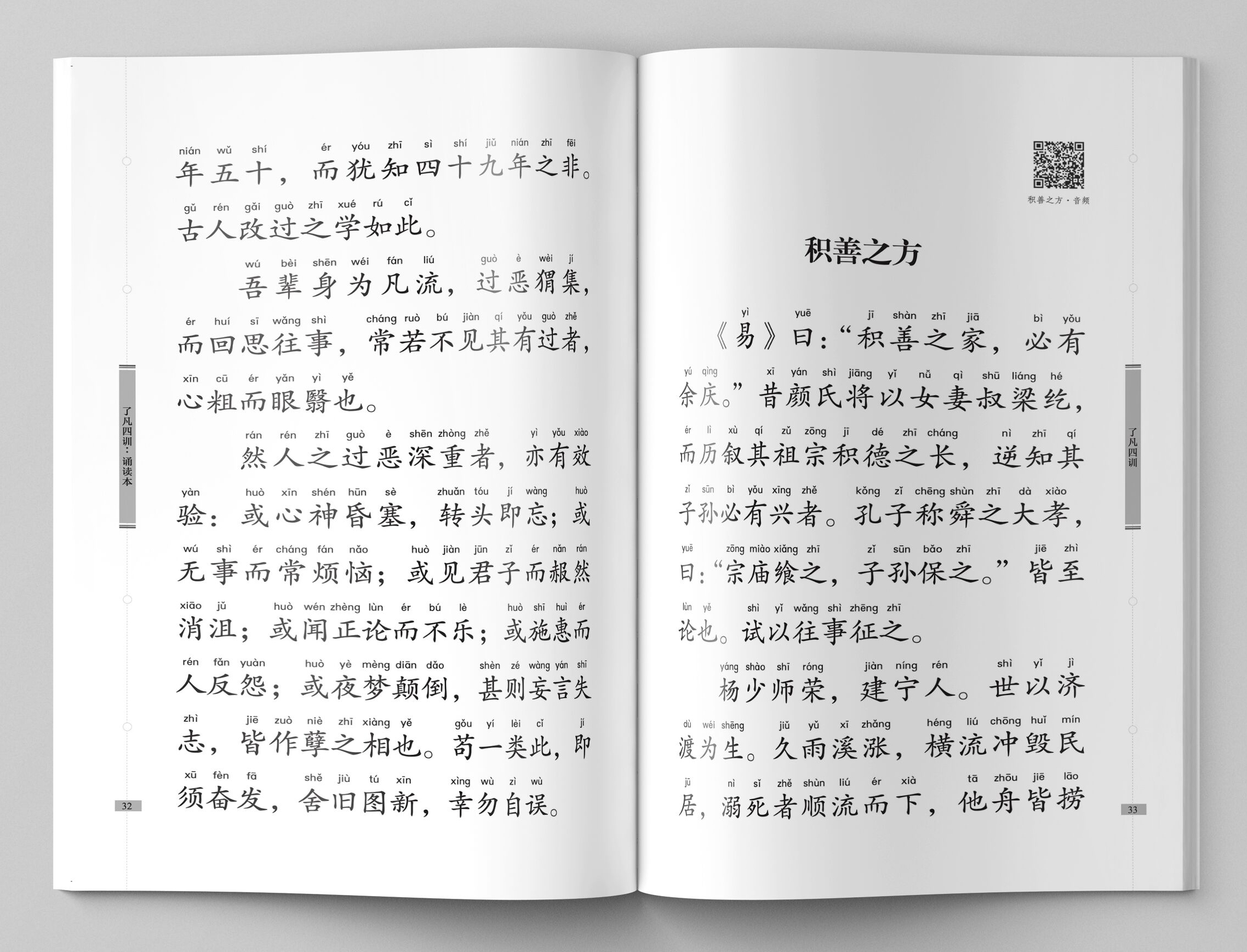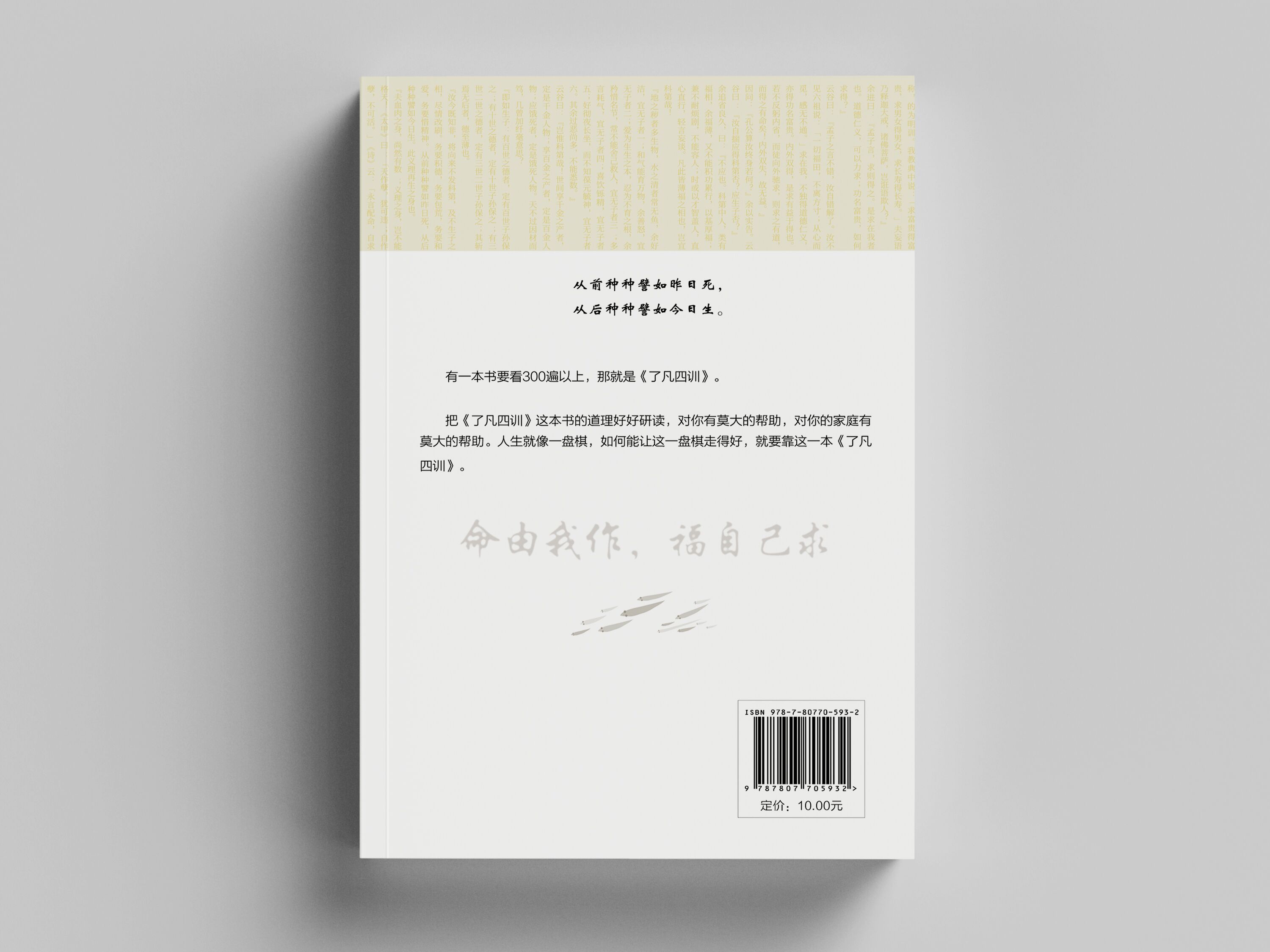 《了凡四训》分“立命之学”“改过之法”“积善之方”“谦德之效”,讲述修身治心、做事从政之道和家庭幸福、事业成功之方,堪称“人生改变命运四部曲”。