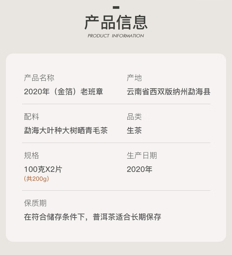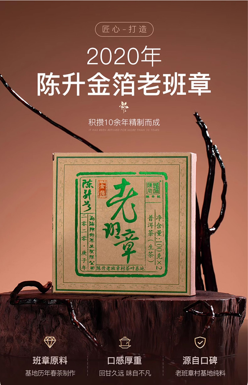 陈升号 2020年金箔老班章砖茶200g(生茶)