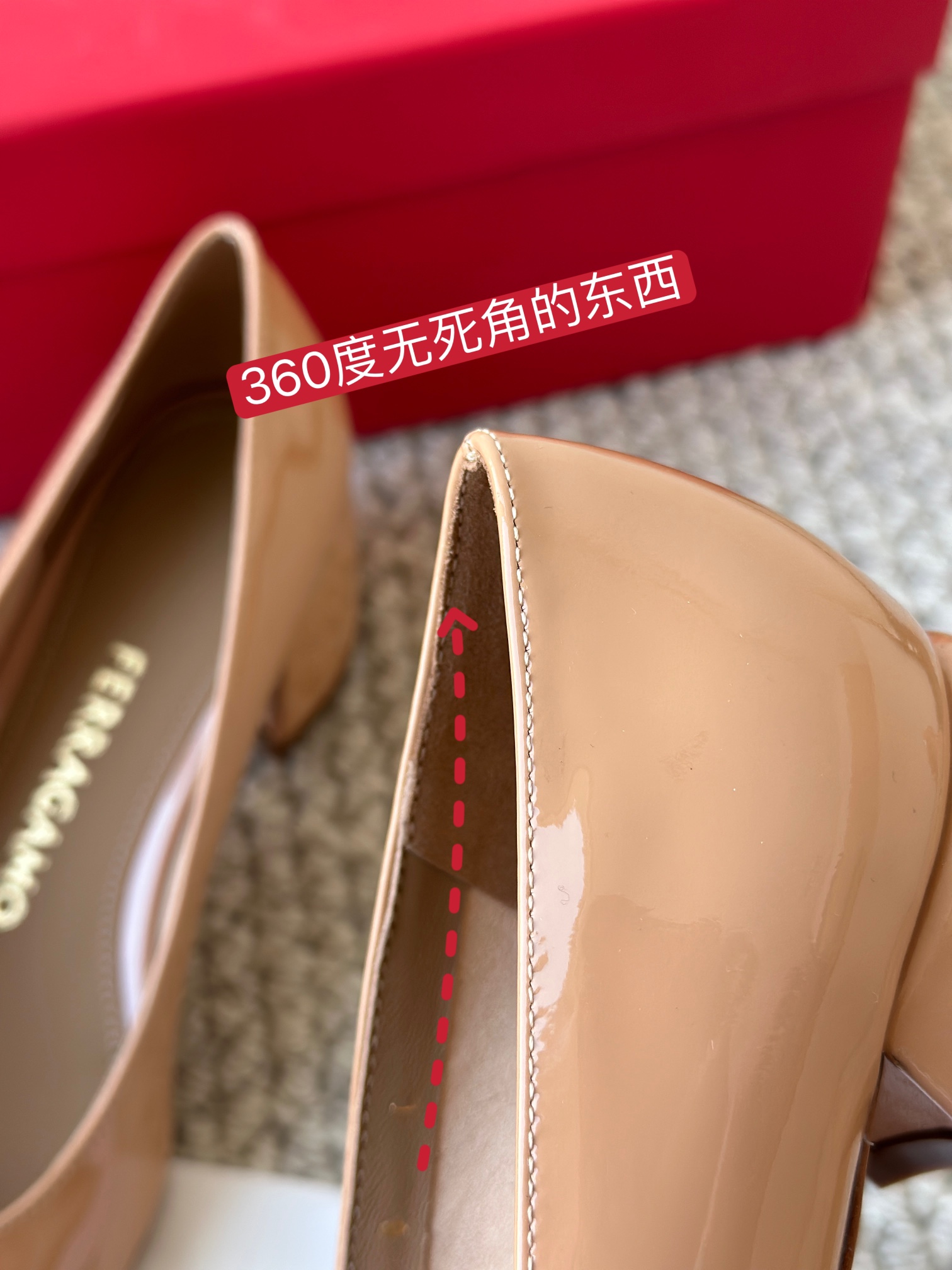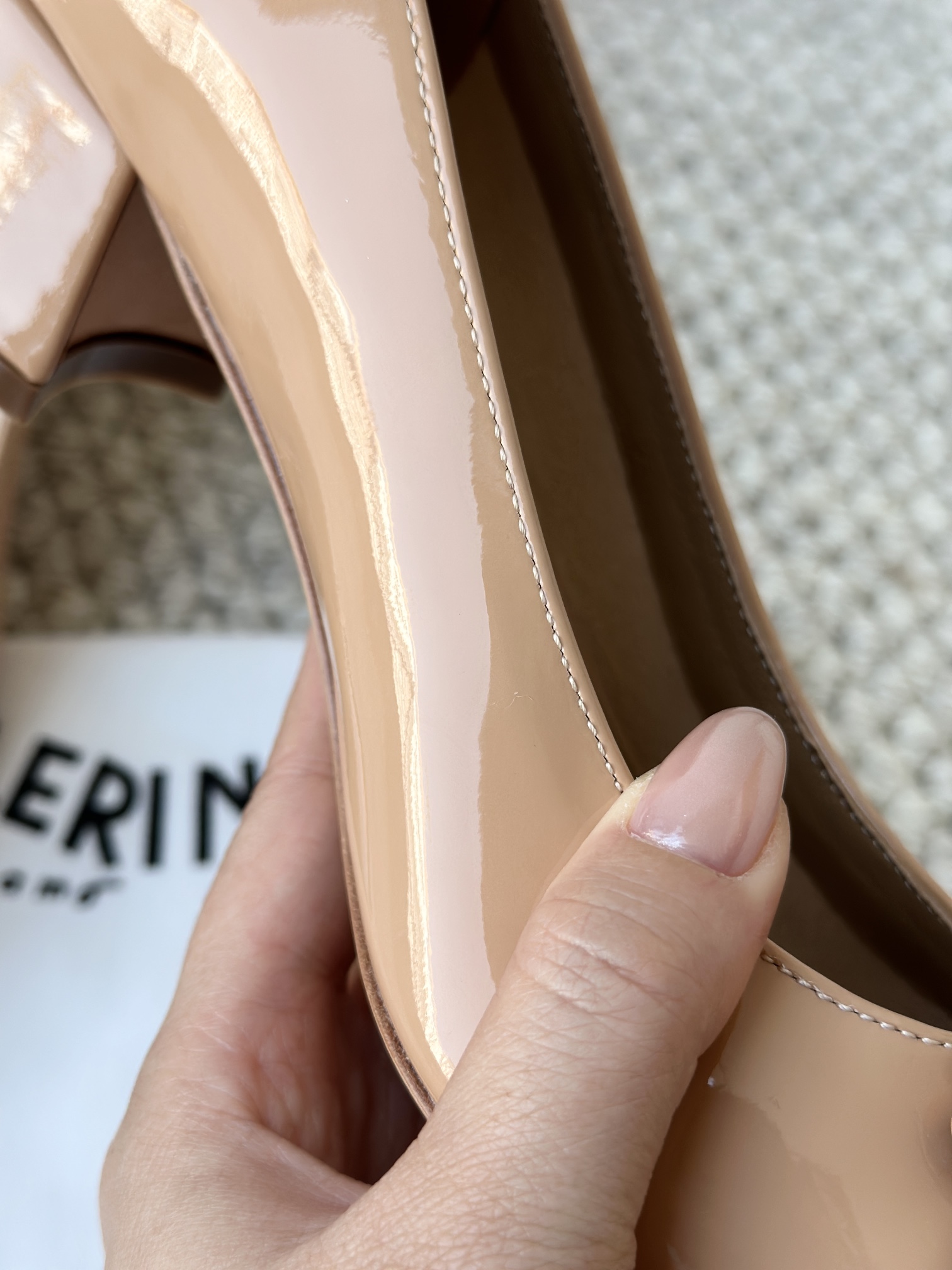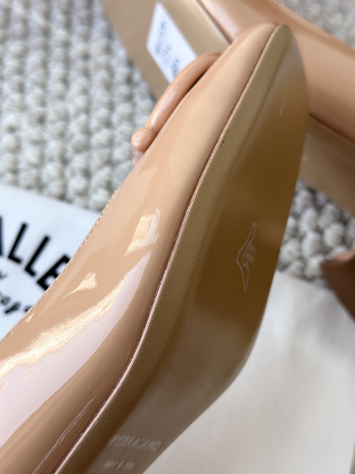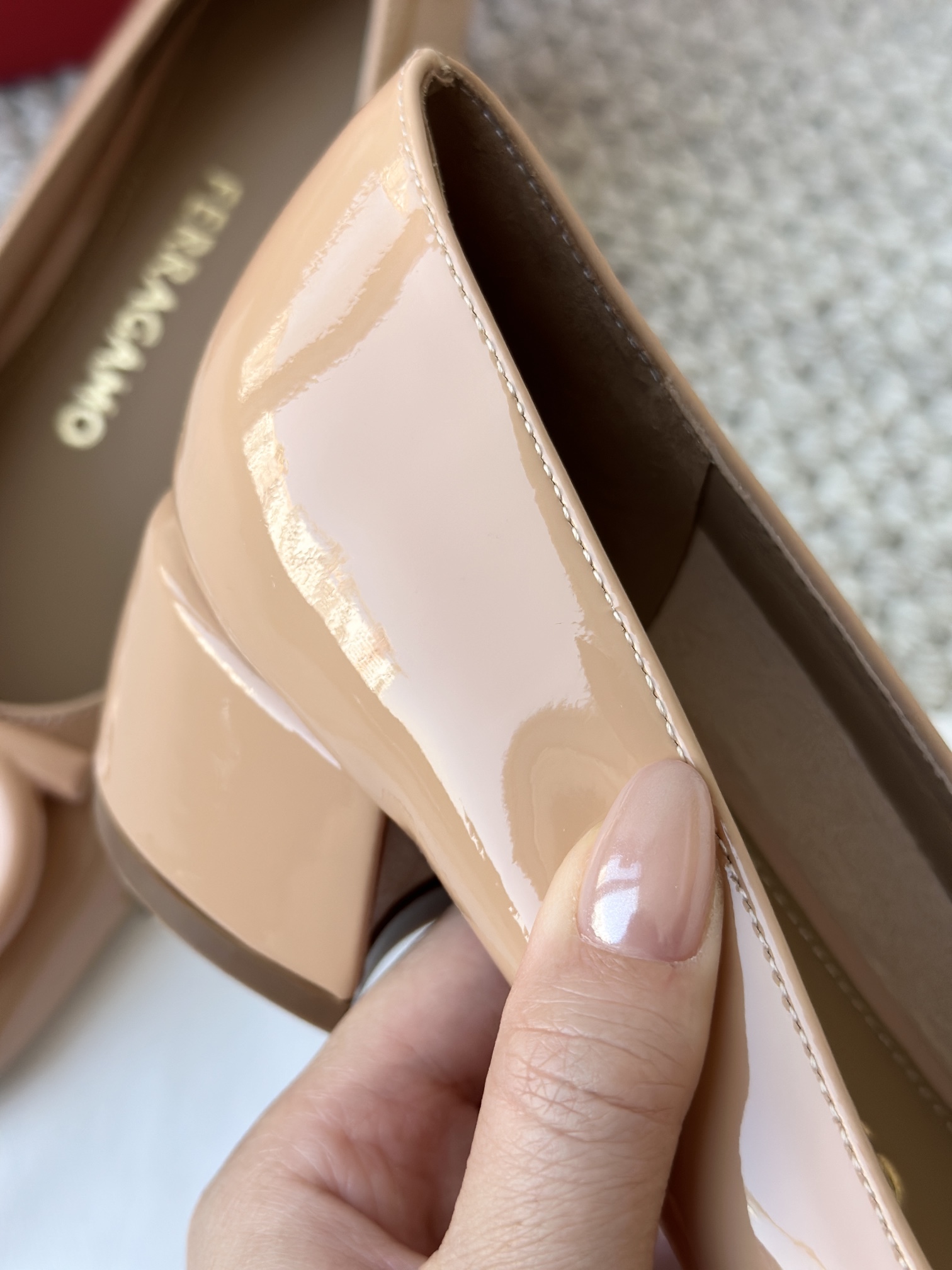 黑色和裸色都是光面牛皮材质! 看图自行感受这双鞋的细腻程度! 皮料太好了看着也赏心悦目