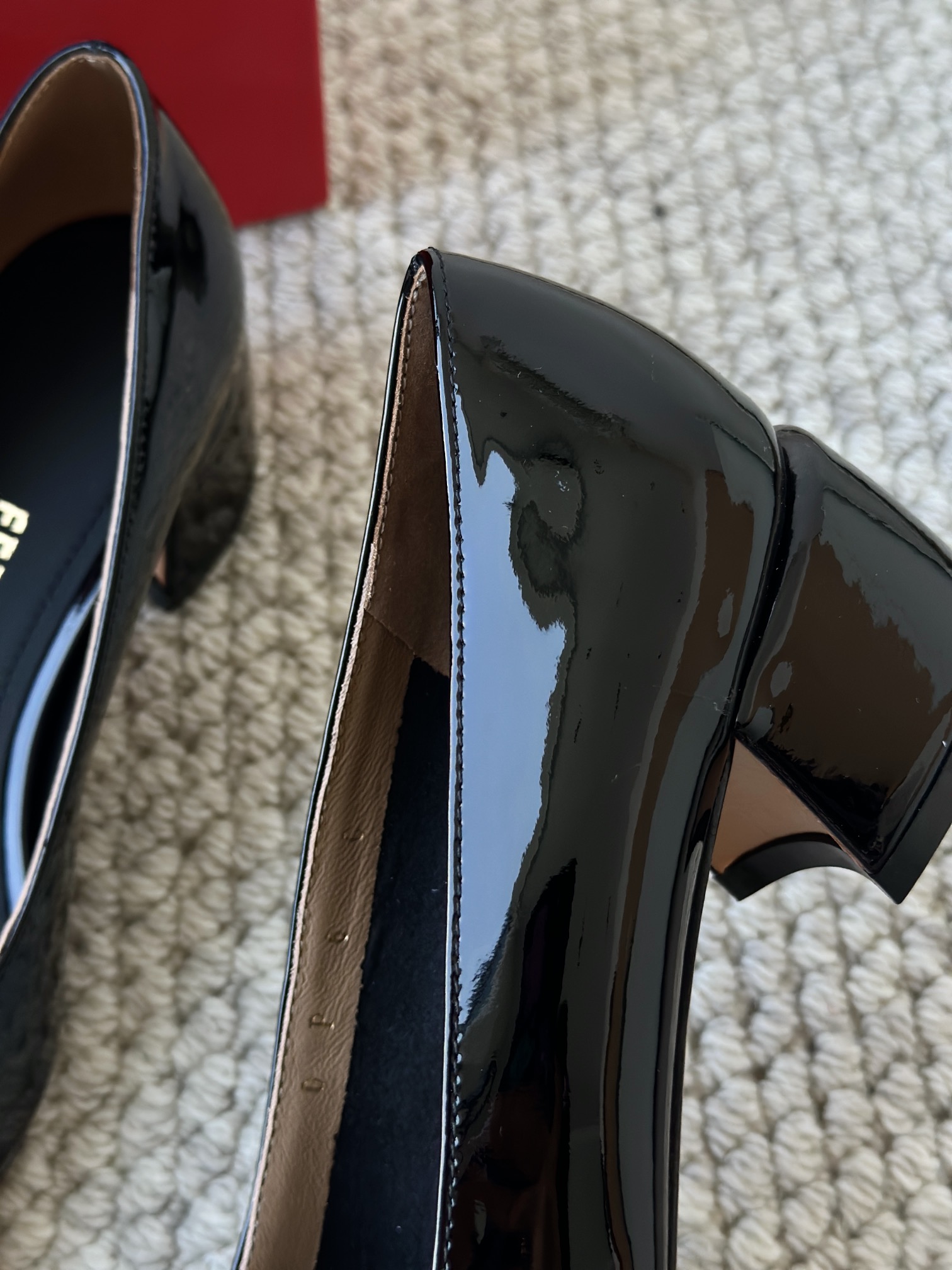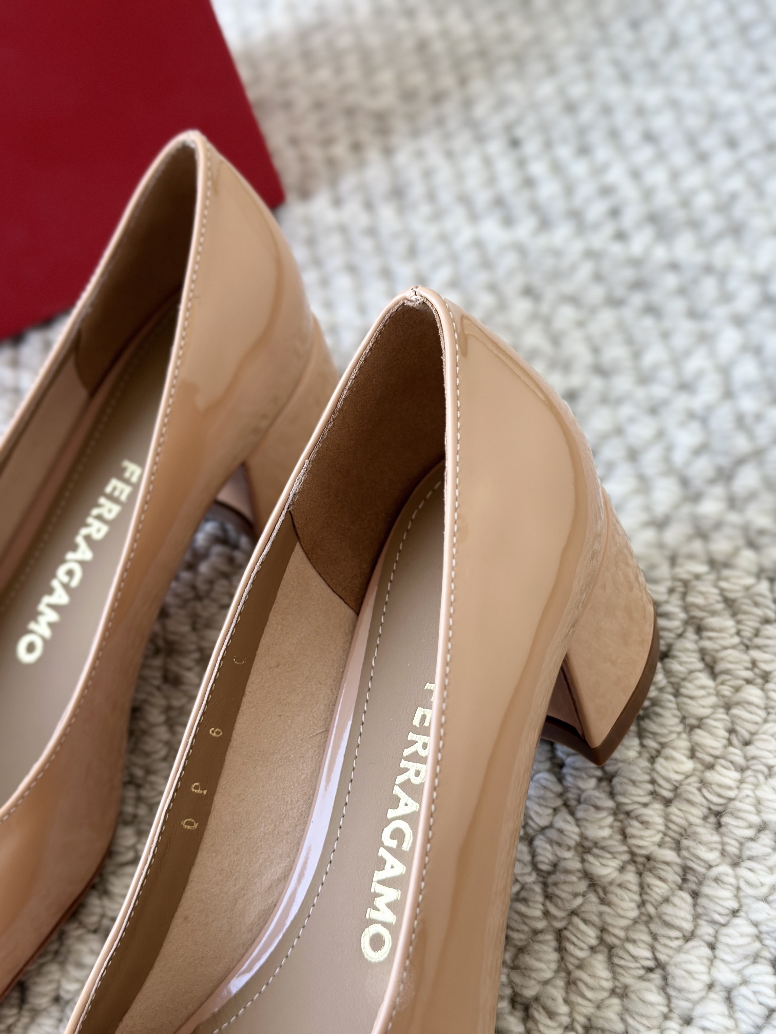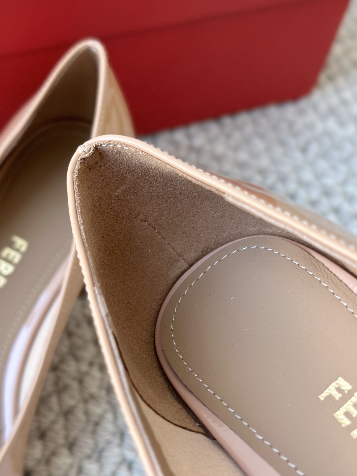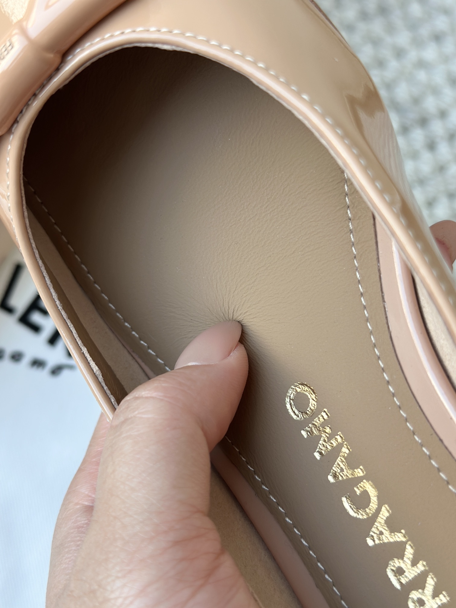 黑色和裸色都是光面牛皮材质! 看图自行感受这双鞋的细腻程度! 皮料太好了看着也赏心悦目