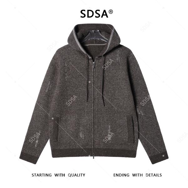 SDSA秋冬新款痞帅男装复古撞色抽绳拉链连帽针织衫百搭慵懒风毛衣