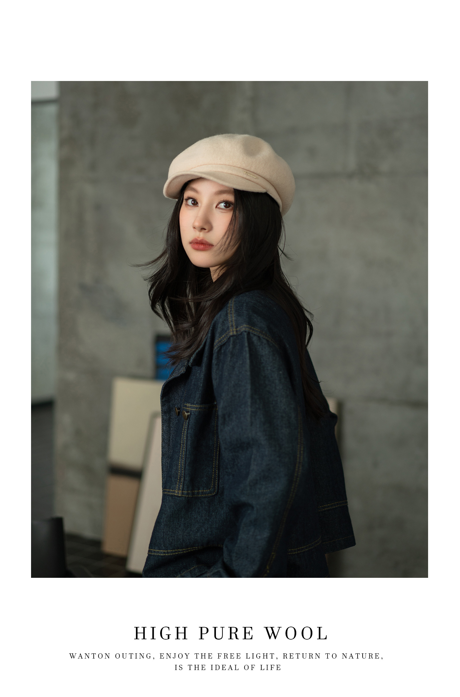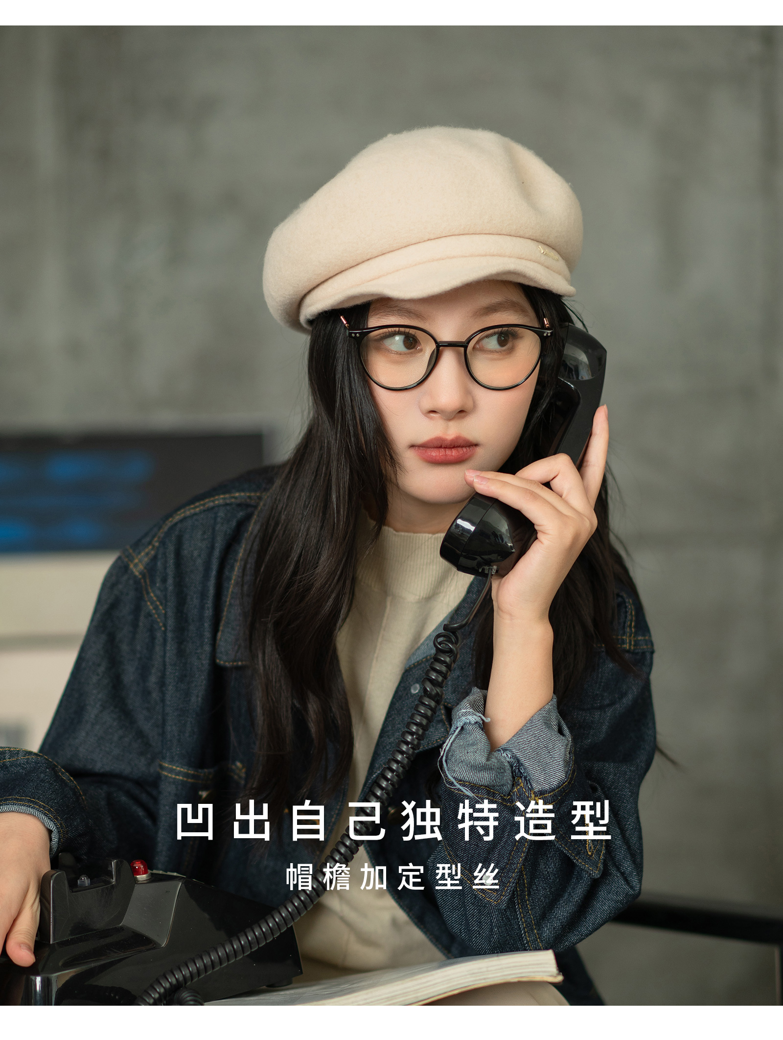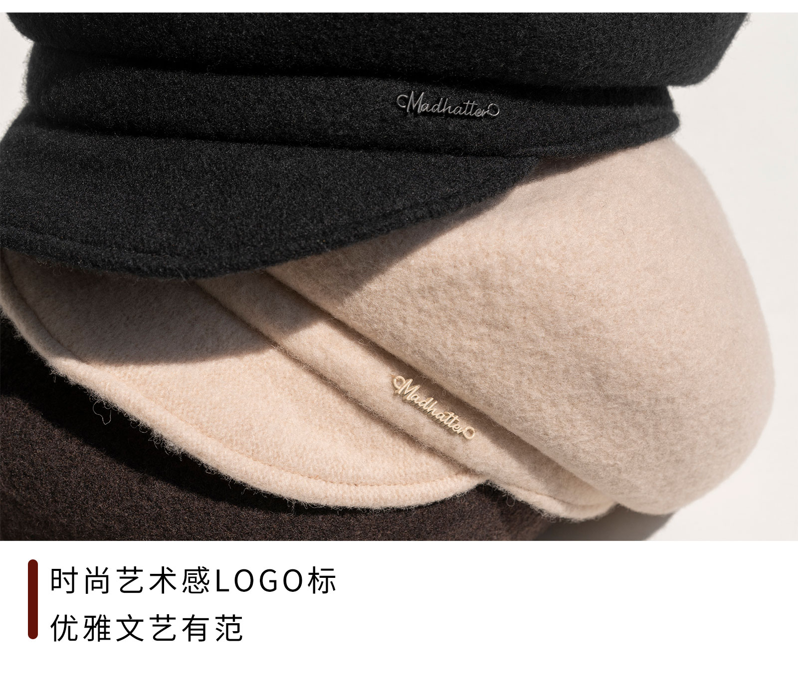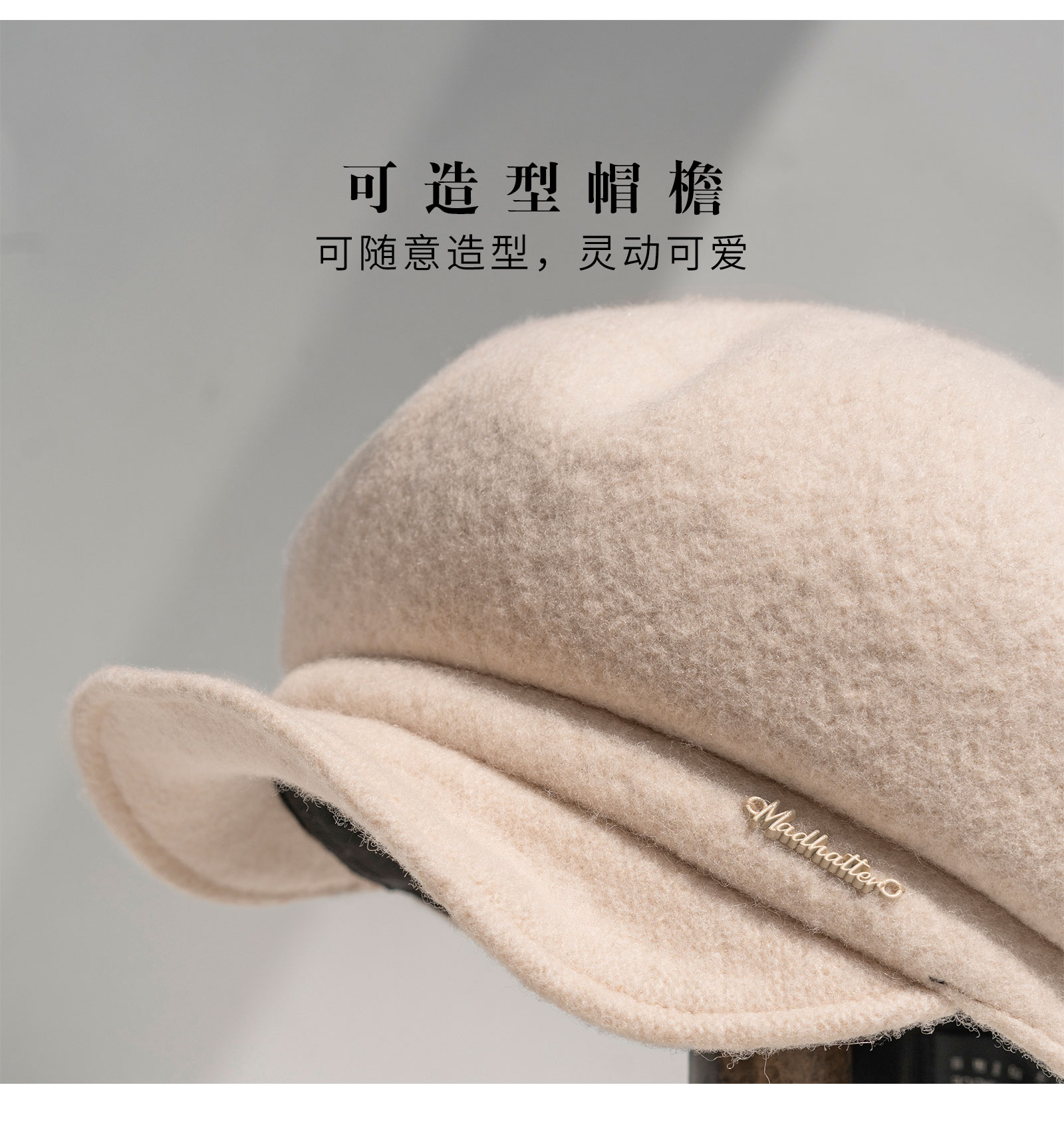 疯帽子 秋冬新纯羊毛鸭舌帽报童帽子女 可造型保暖韩版复古英伦风