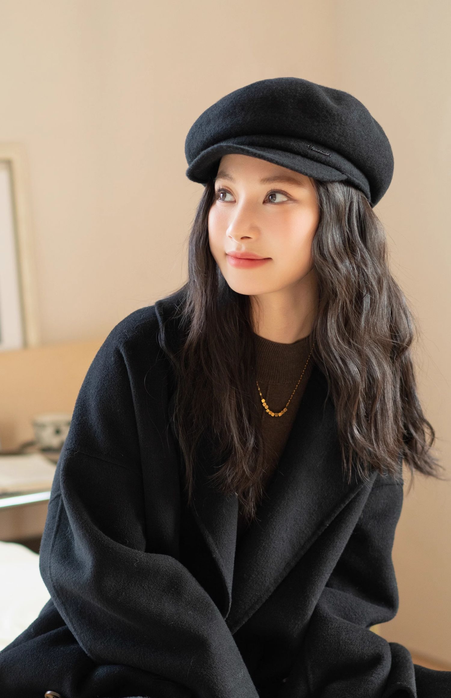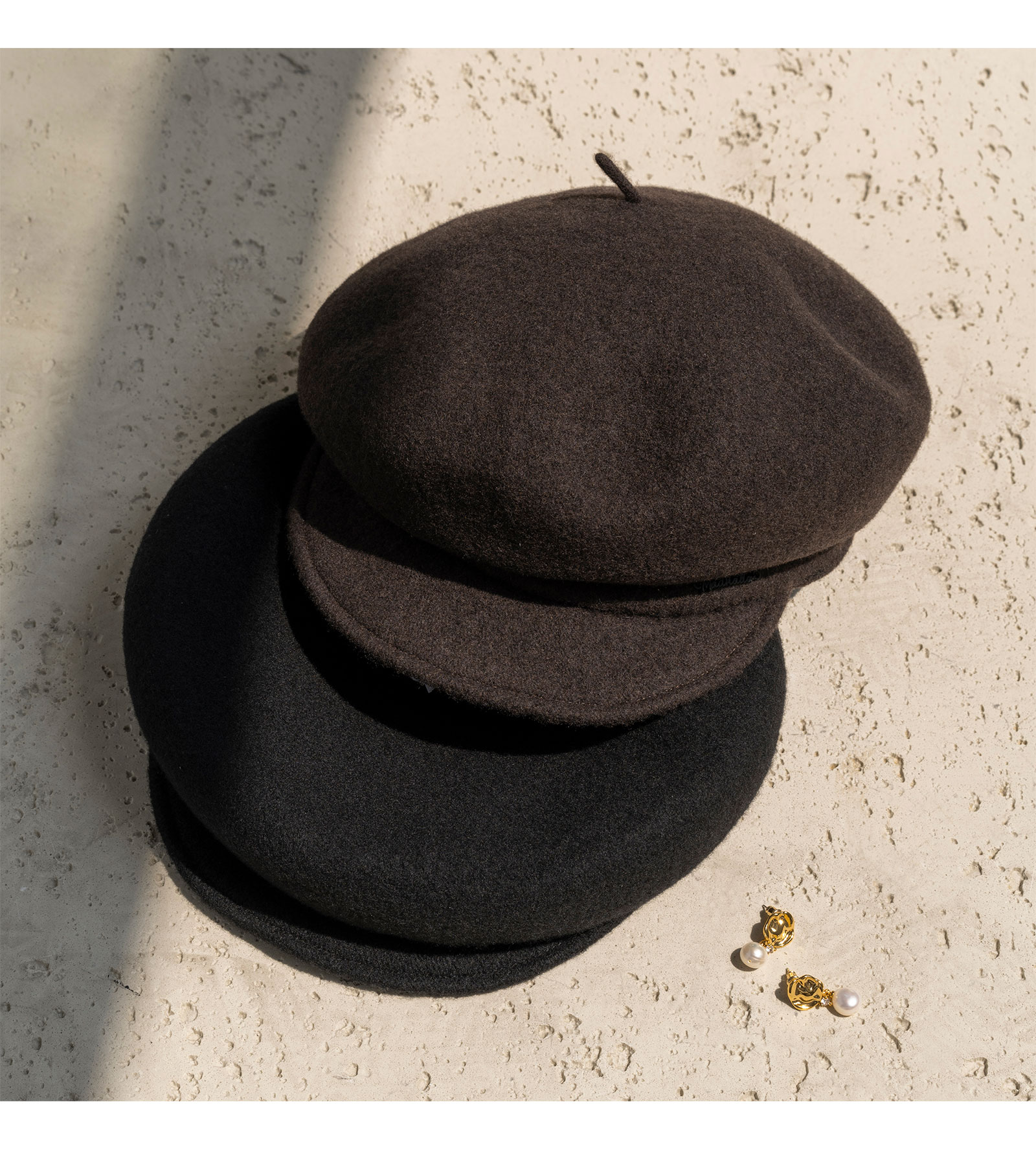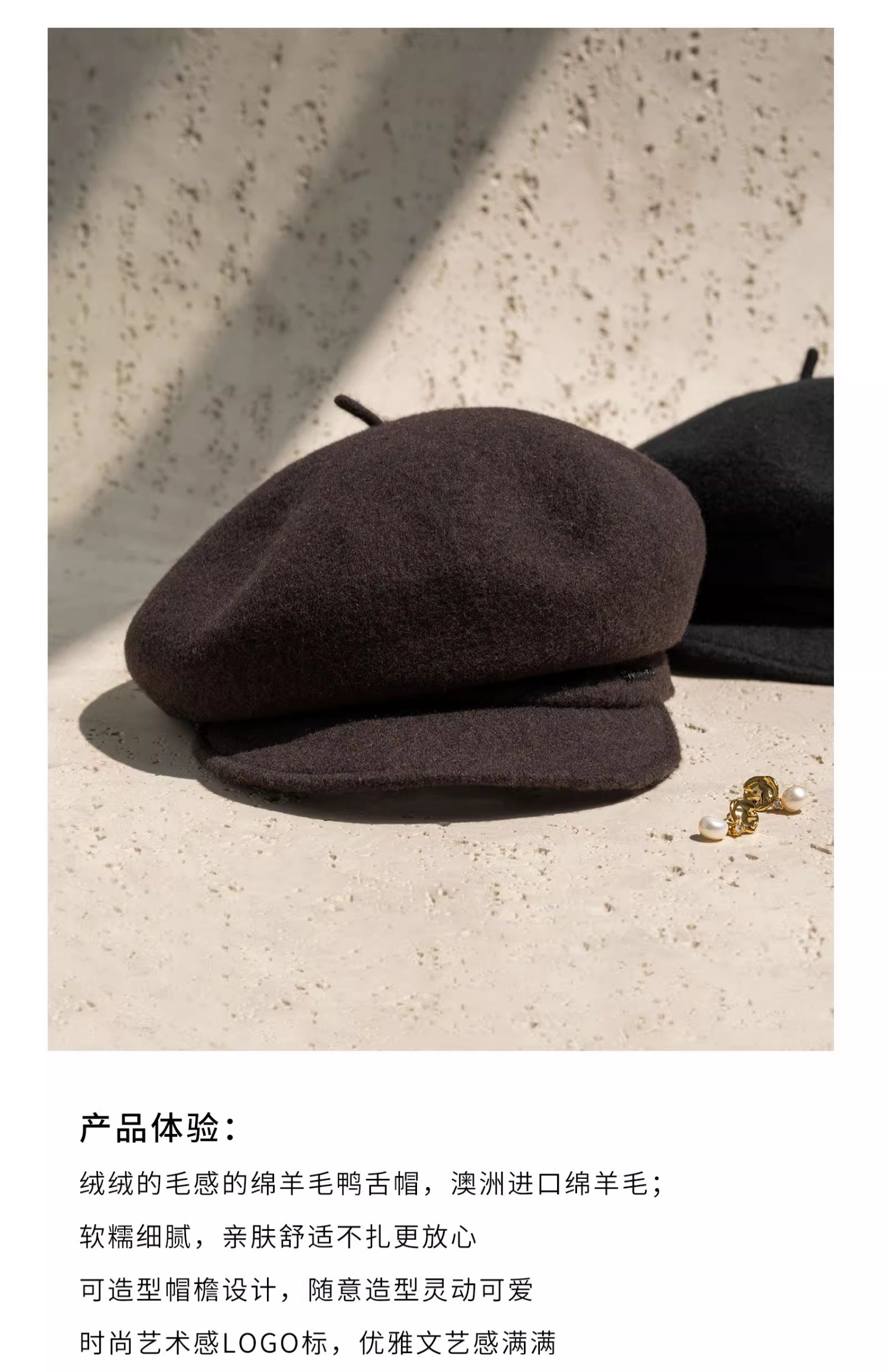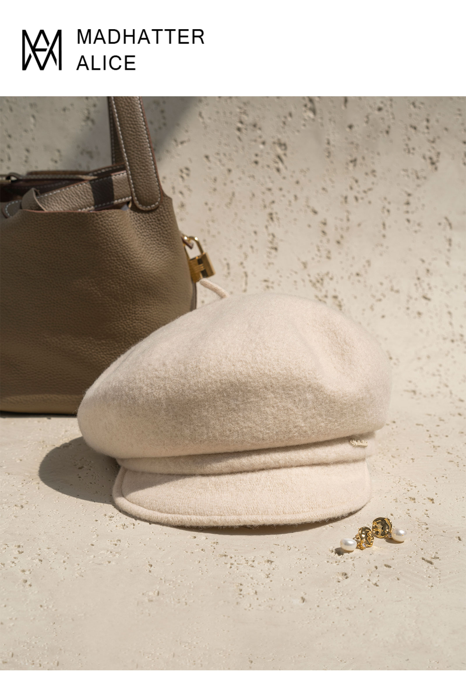 疯帽子 秋冬新纯羊毛鸭舌帽报童帽子女 可造型保暖韩版复古英伦风