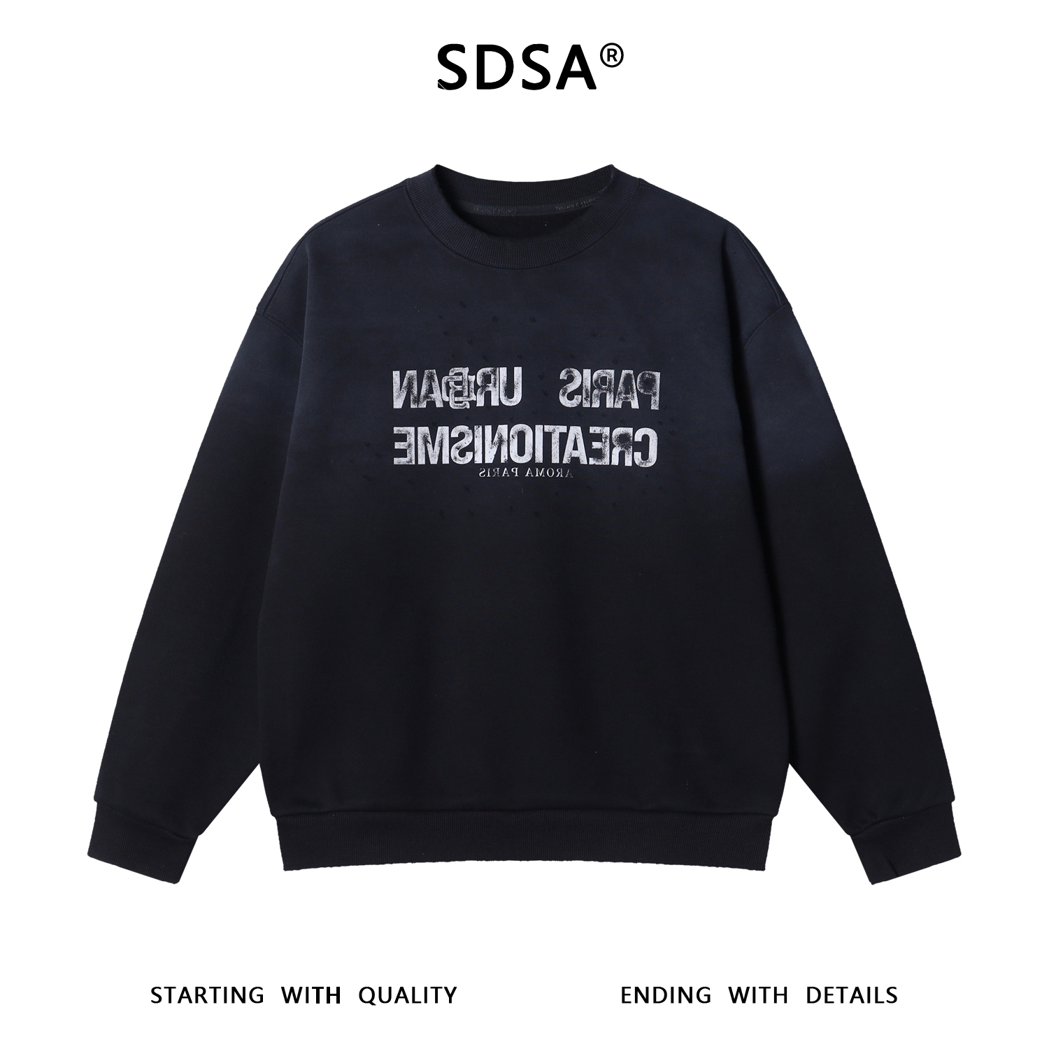 87818SDSA秋冬新款痞帅男装美式复古渐变印花字母圆领上衣磨破设计百搭