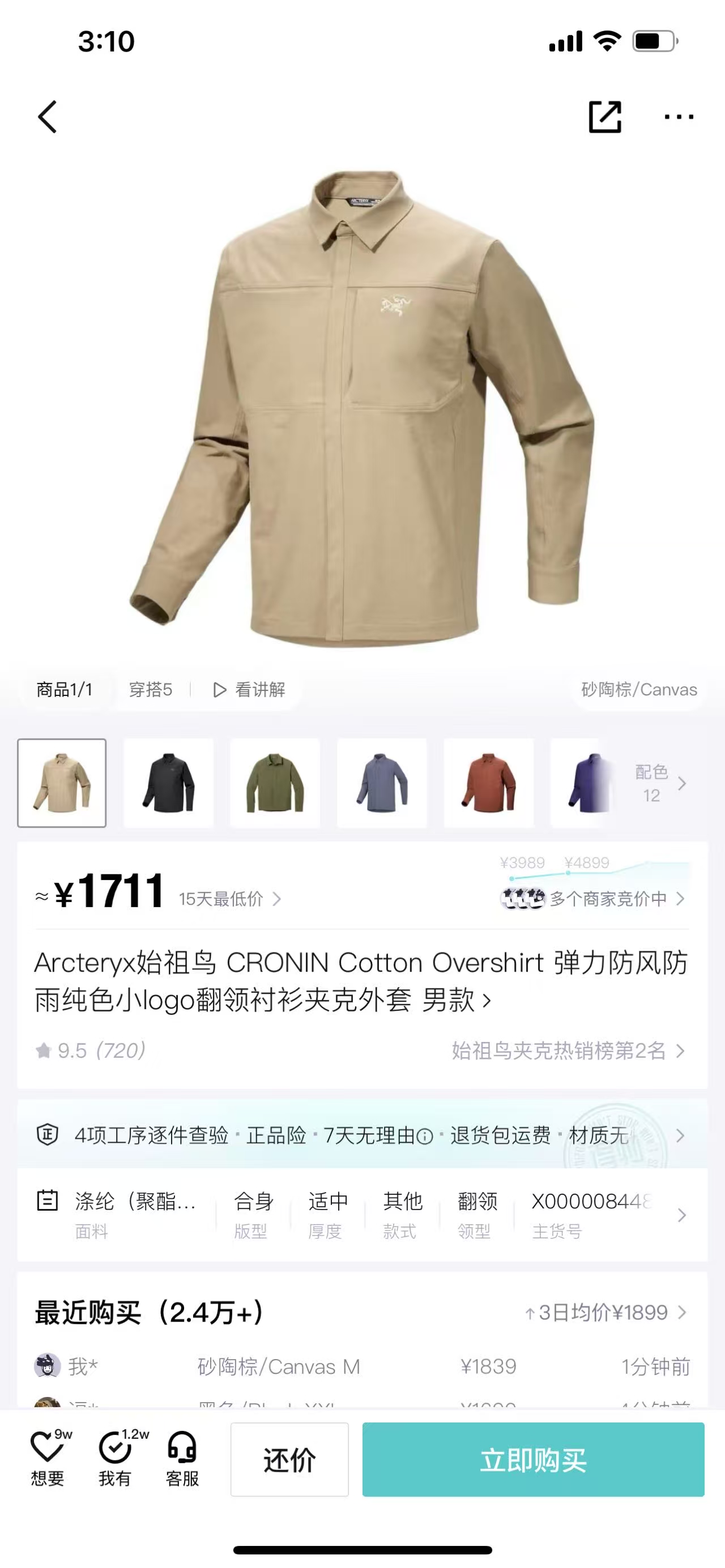 【Arcteryx始祖鸟翻领衬衫夹克外套】