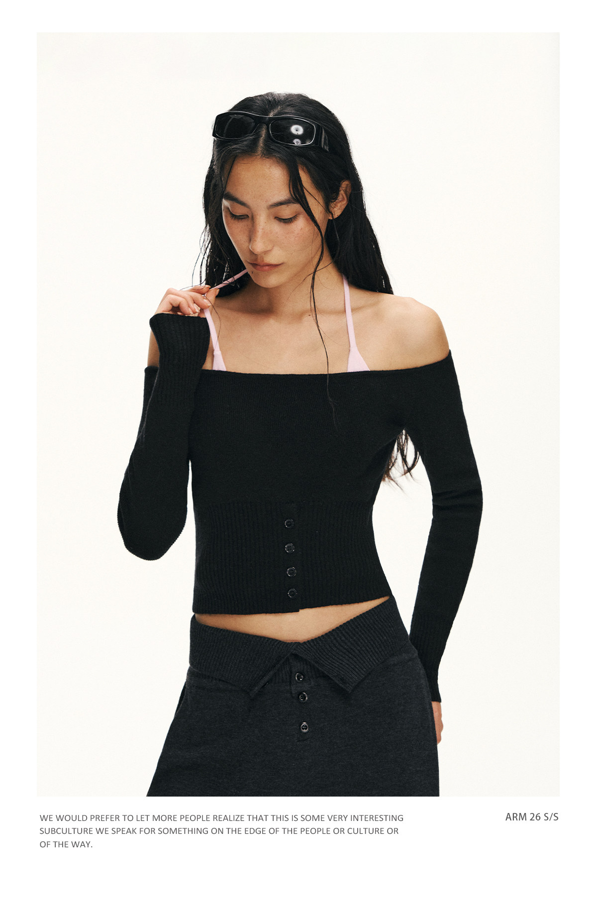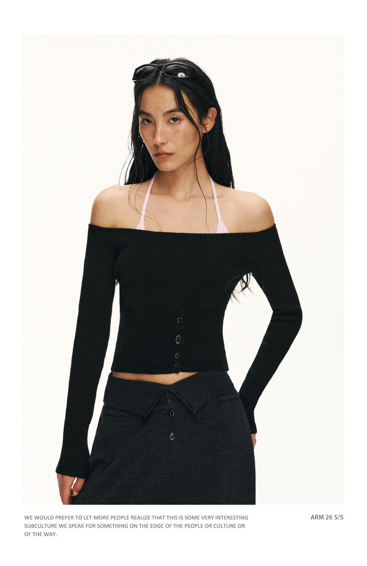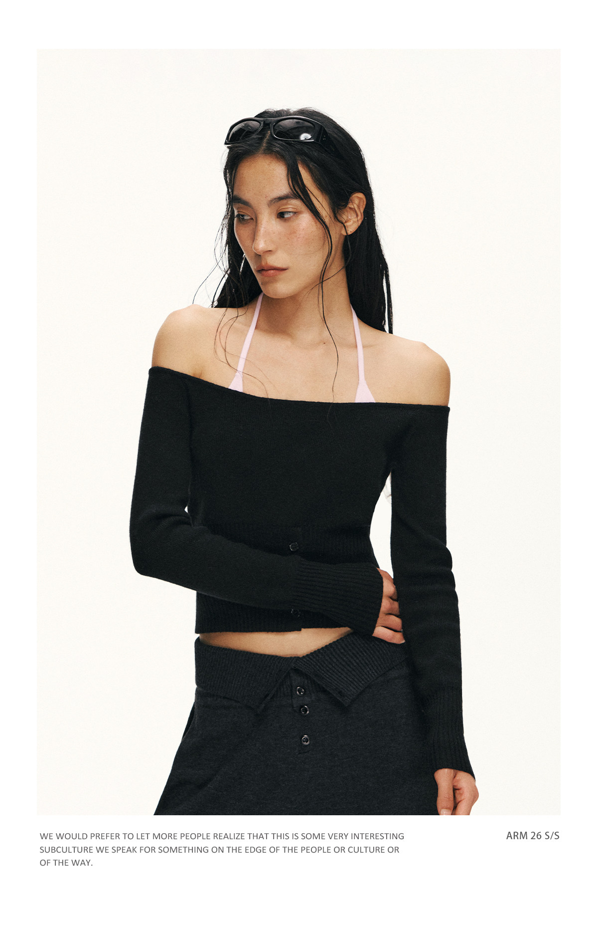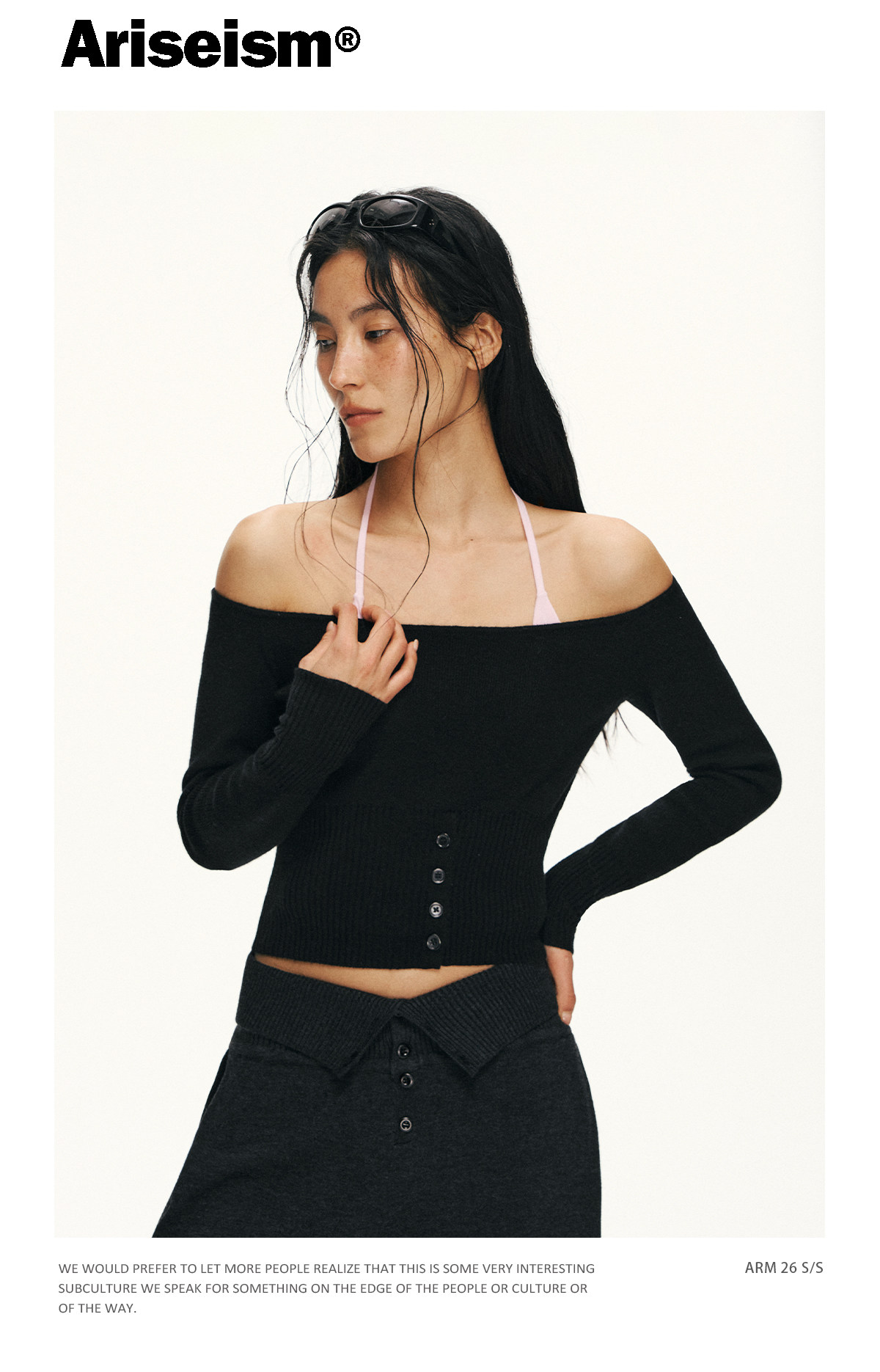 Ariseism 美式复古设计感修身露肩针织开衫女春季新款修身上衣