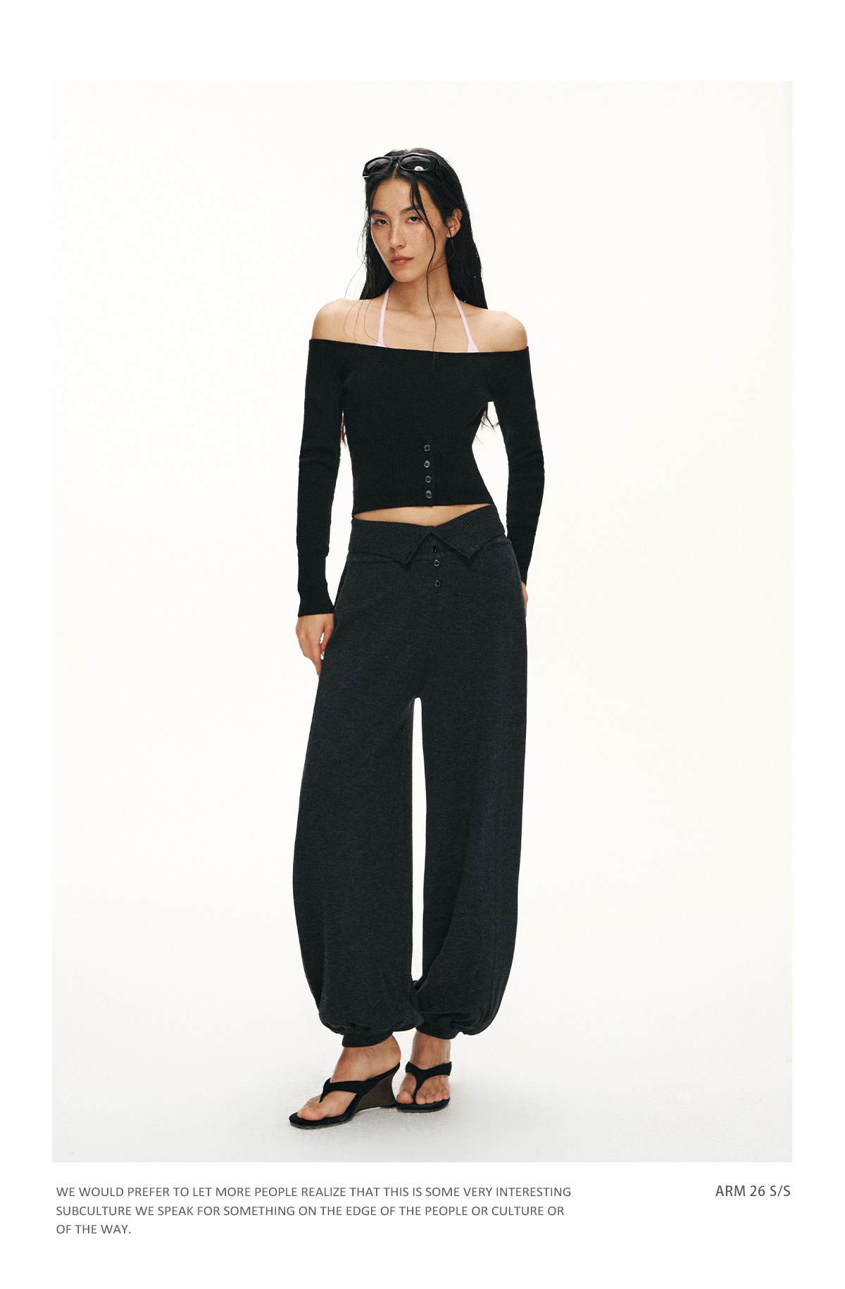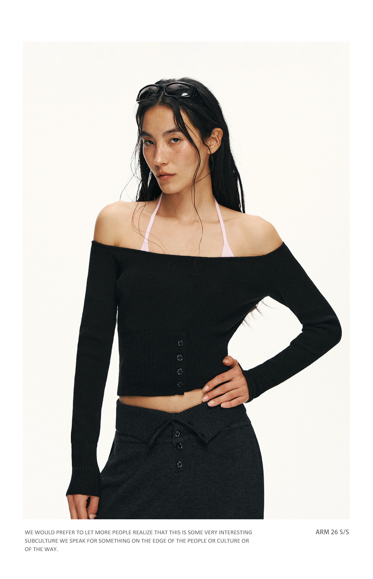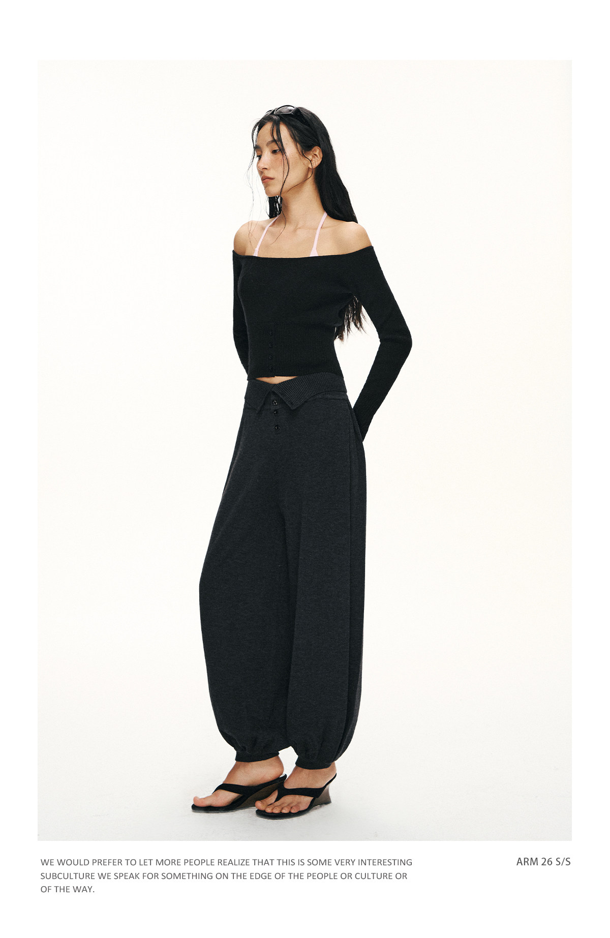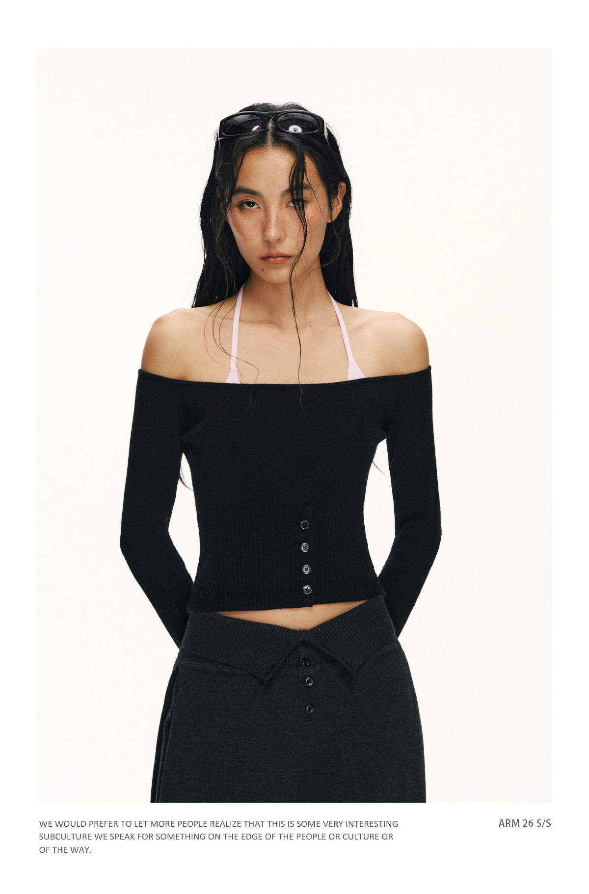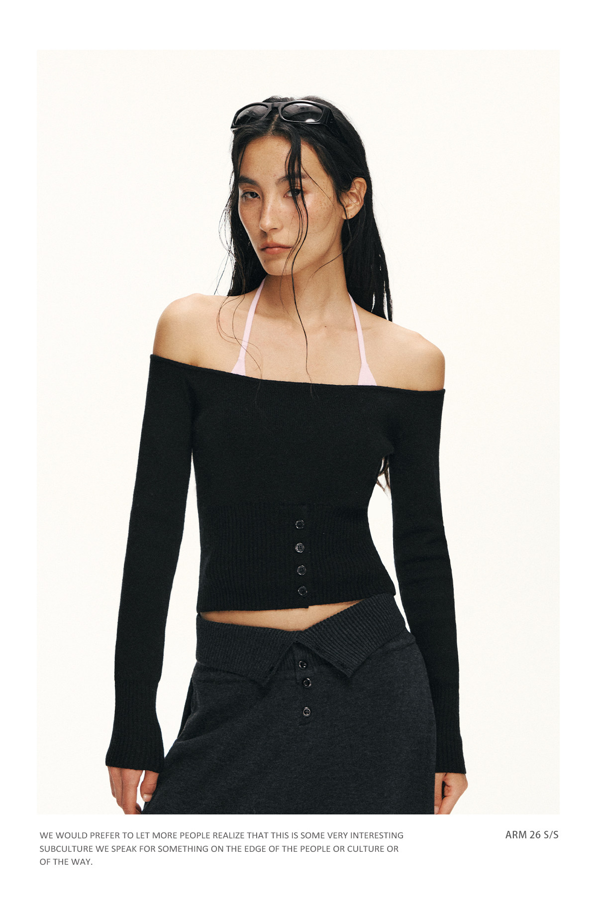 Ariseism 美式复古设计感修身露肩针织开衫女春季新款修身上衣