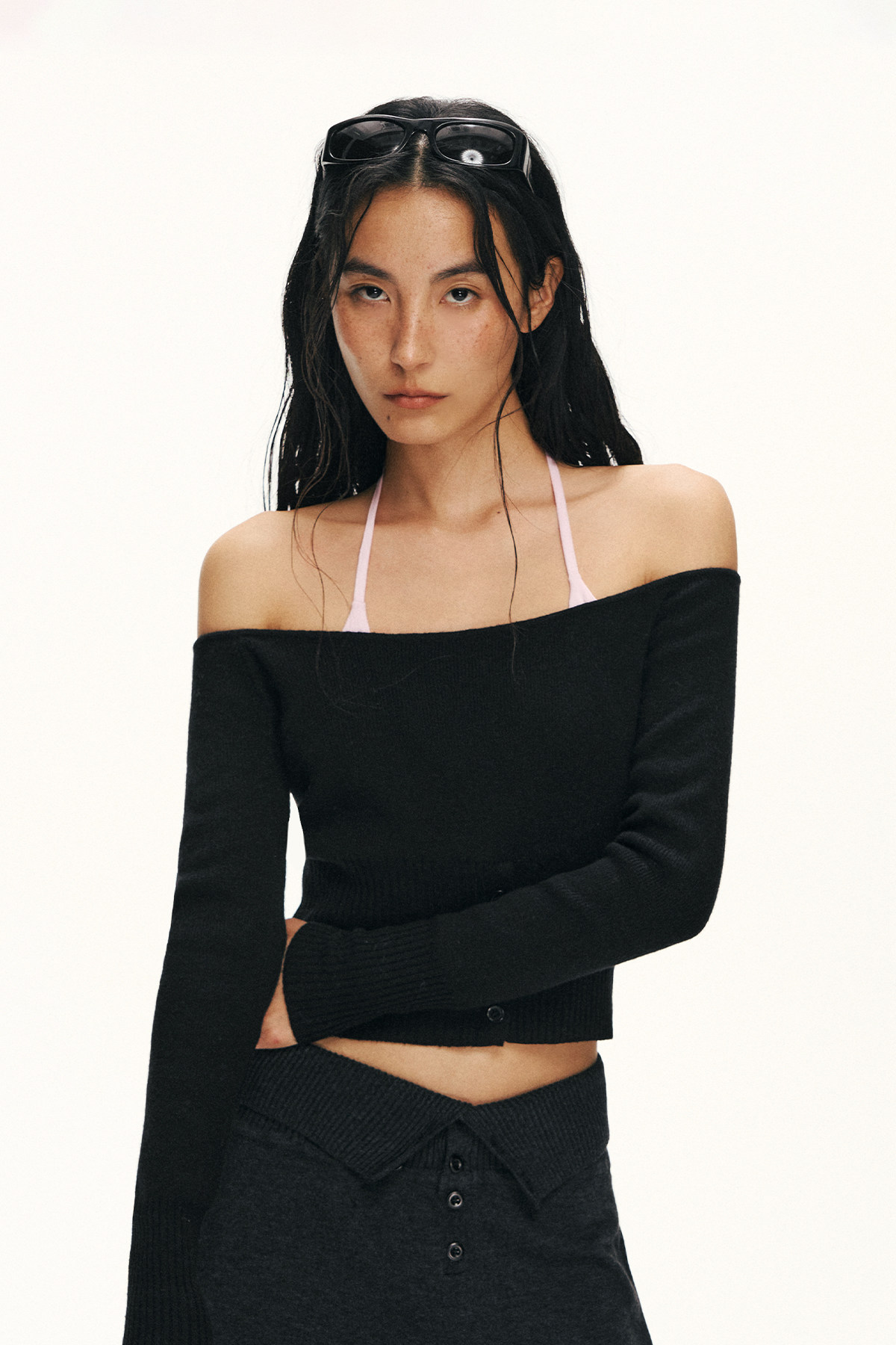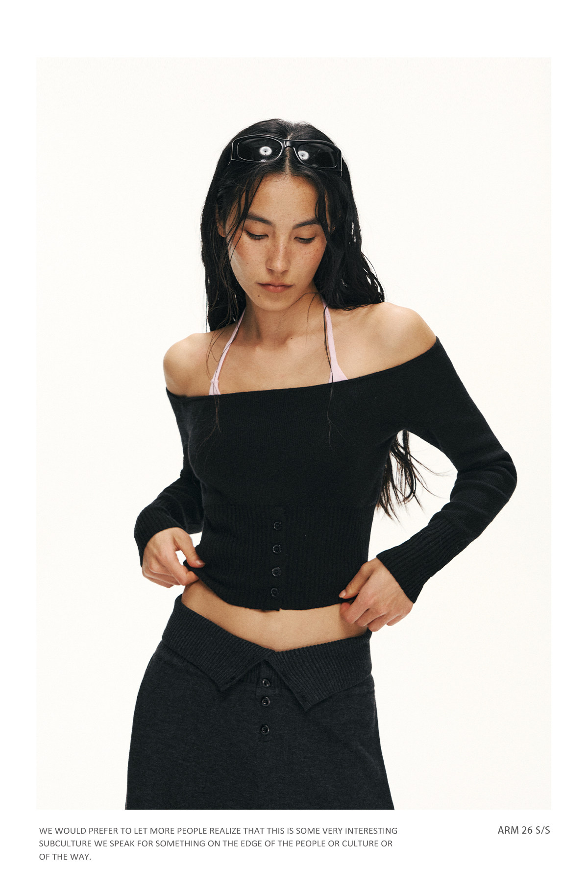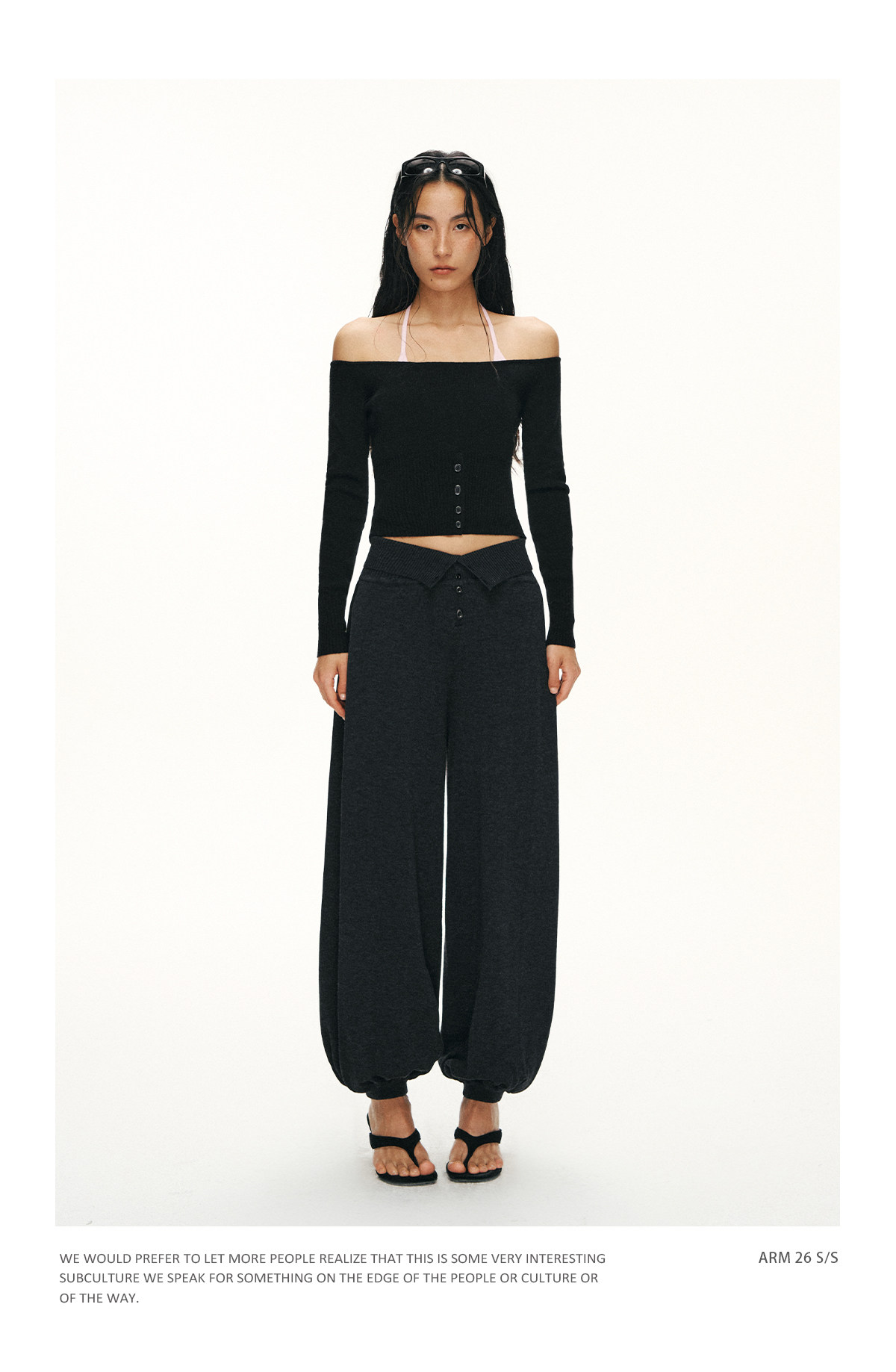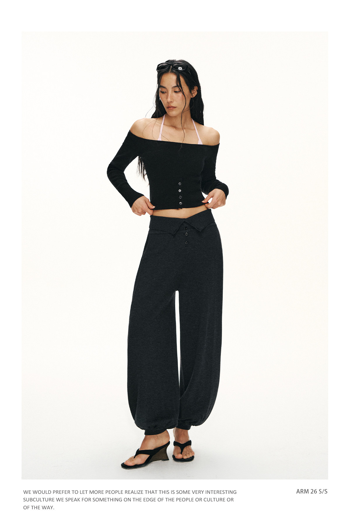 Ariseism 美式复古设计感修身露肩针织开衫女春季新款修身上衣