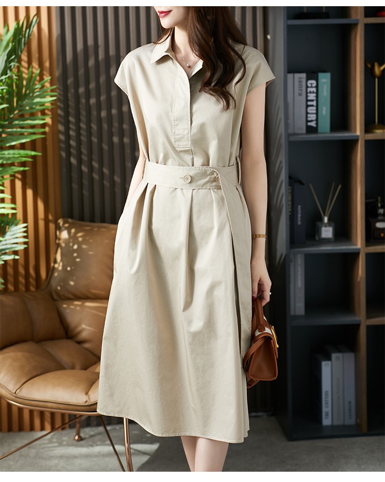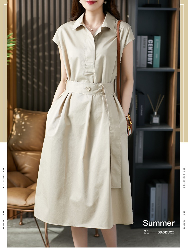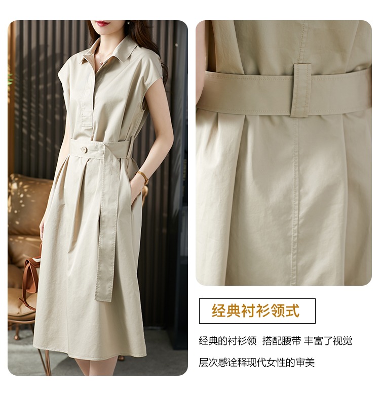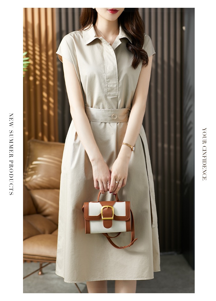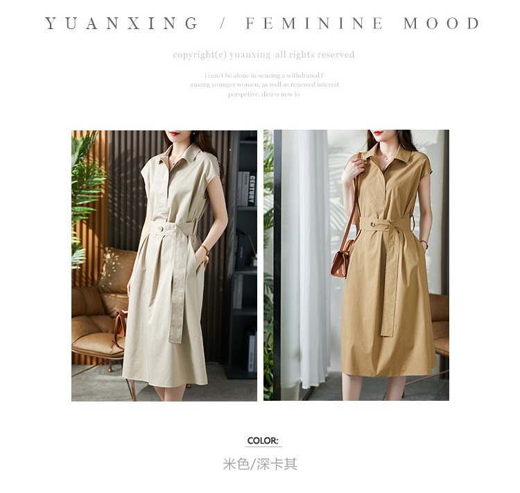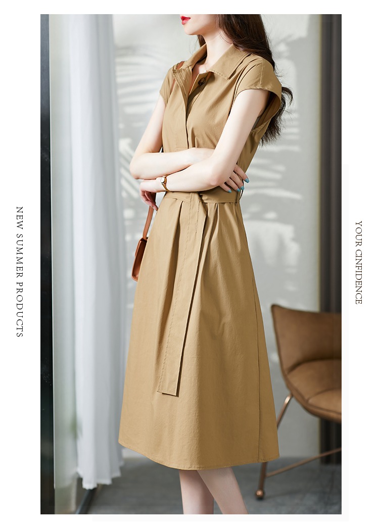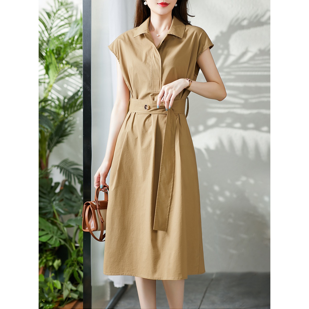 U84534-1YX【现货7天】短袖连衣裙女中长款2024春夏新款小个子显瘦洋气过膝a字裙子