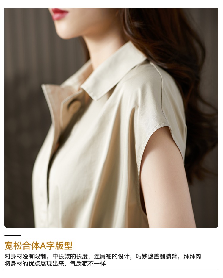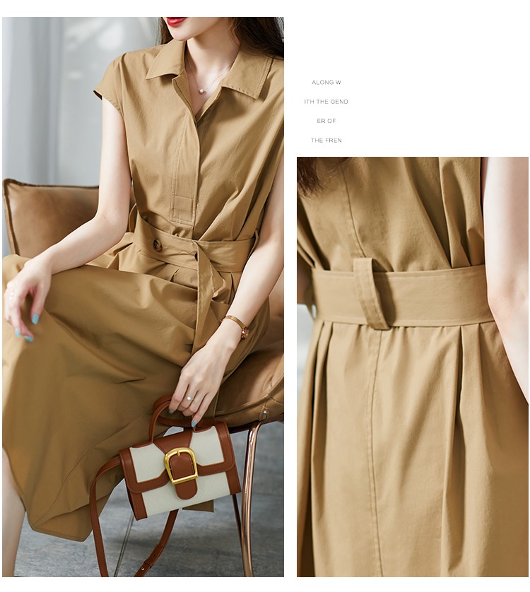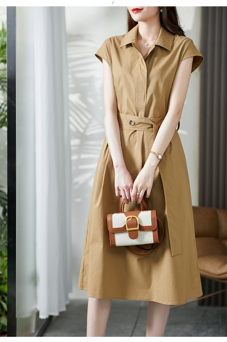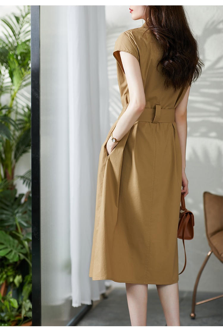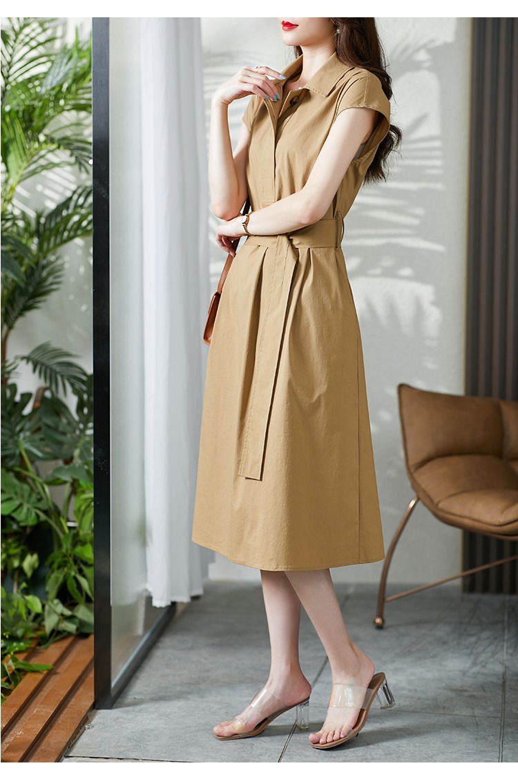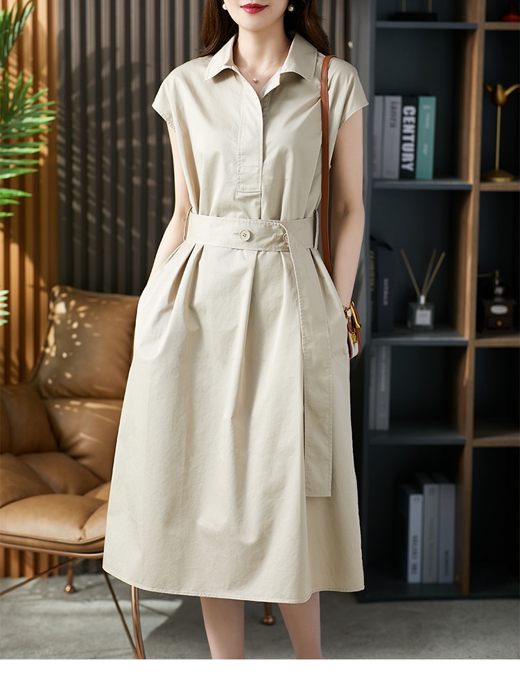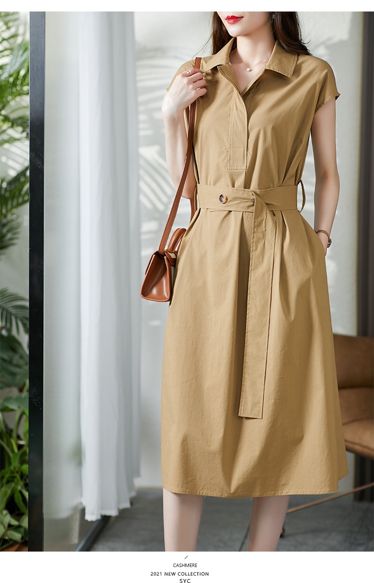 U84534-1YX【现货7天】短袖连衣裙女中长款2024春夏新款小个子显瘦洋气过膝a字裙子