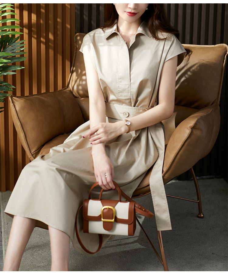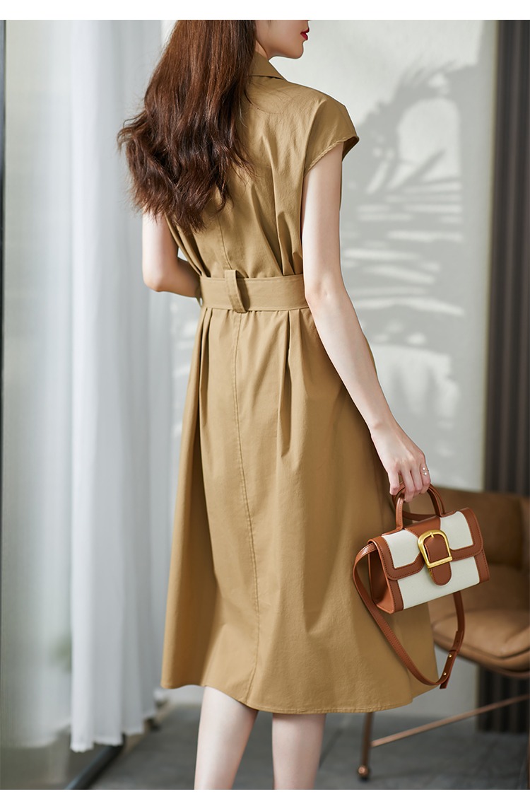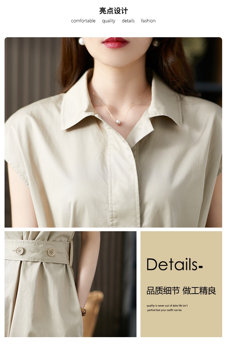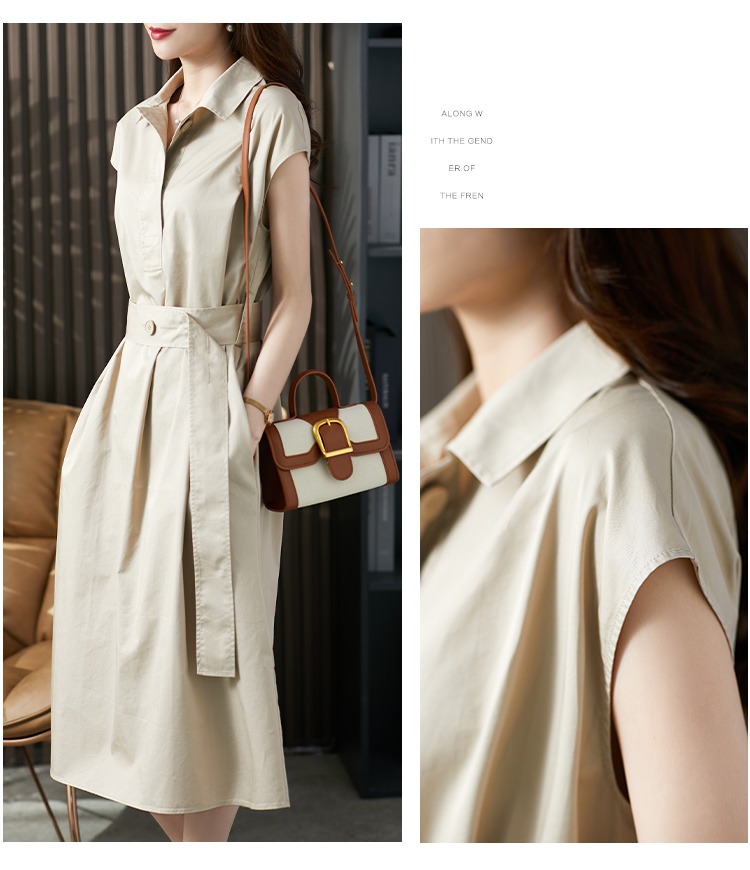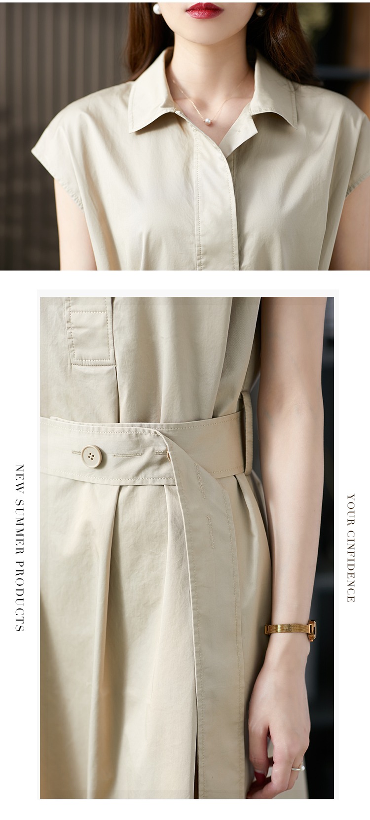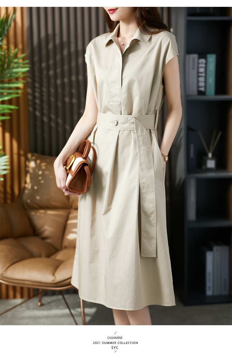 U84534-1YX【现货7天】短袖连衣裙女中长款2024春夏新款小个子显瘦洋气过膝a字裙子