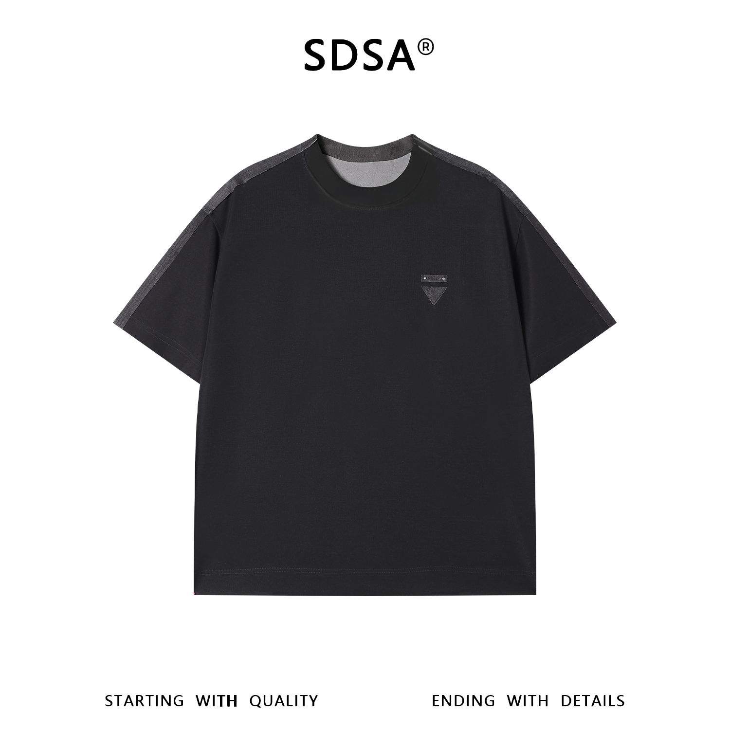 SDSA男装2026新款高贵轻奢潮牌铆钉倒三角设计圆领短袖T恤百搭