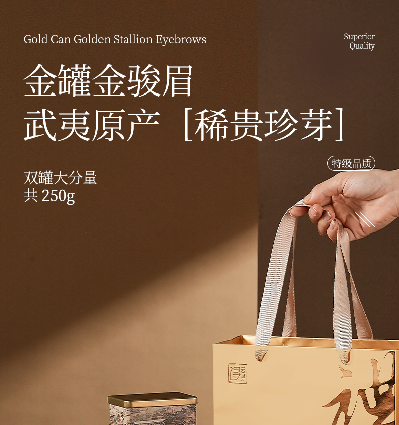【金罐金骏眉】去寻 微信会员专享 特级头采金骏眉 武夷山红茶 蜜香型 罐装 送礼袋 净含量250g