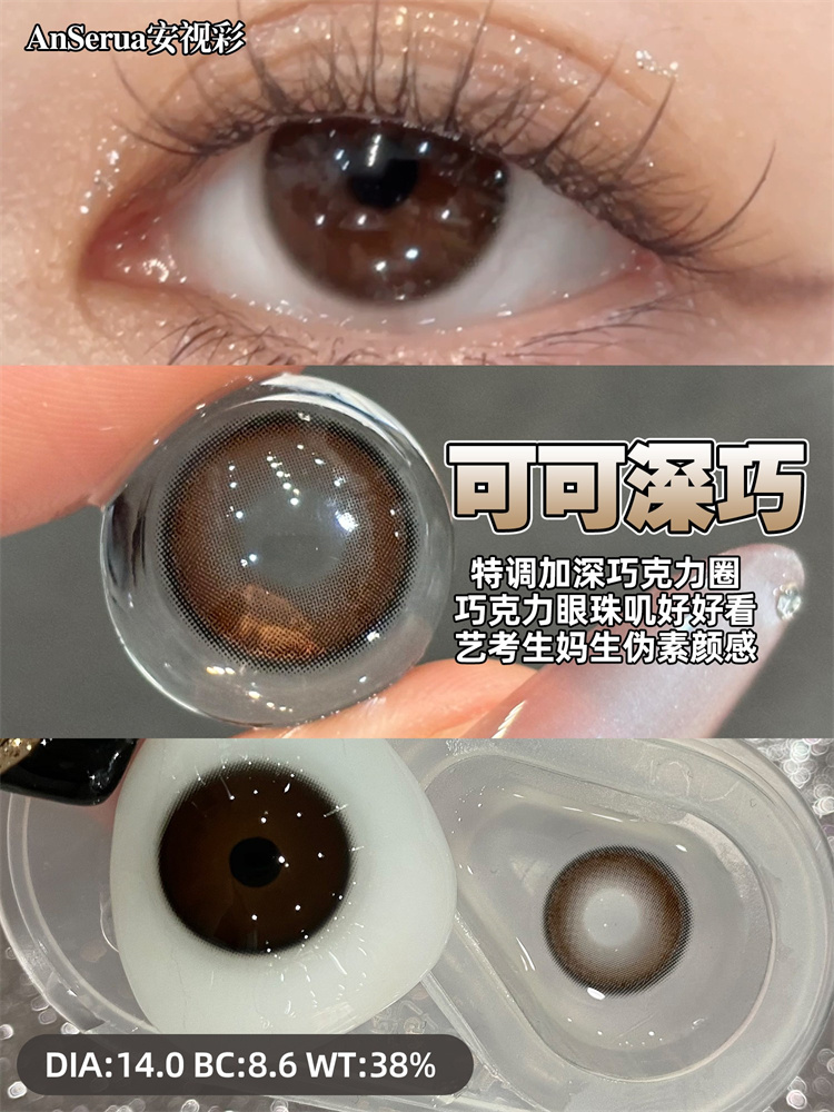 AnSerua安视彩 可可深巧 年抛直径14.0mm日常美瞳 棕色
