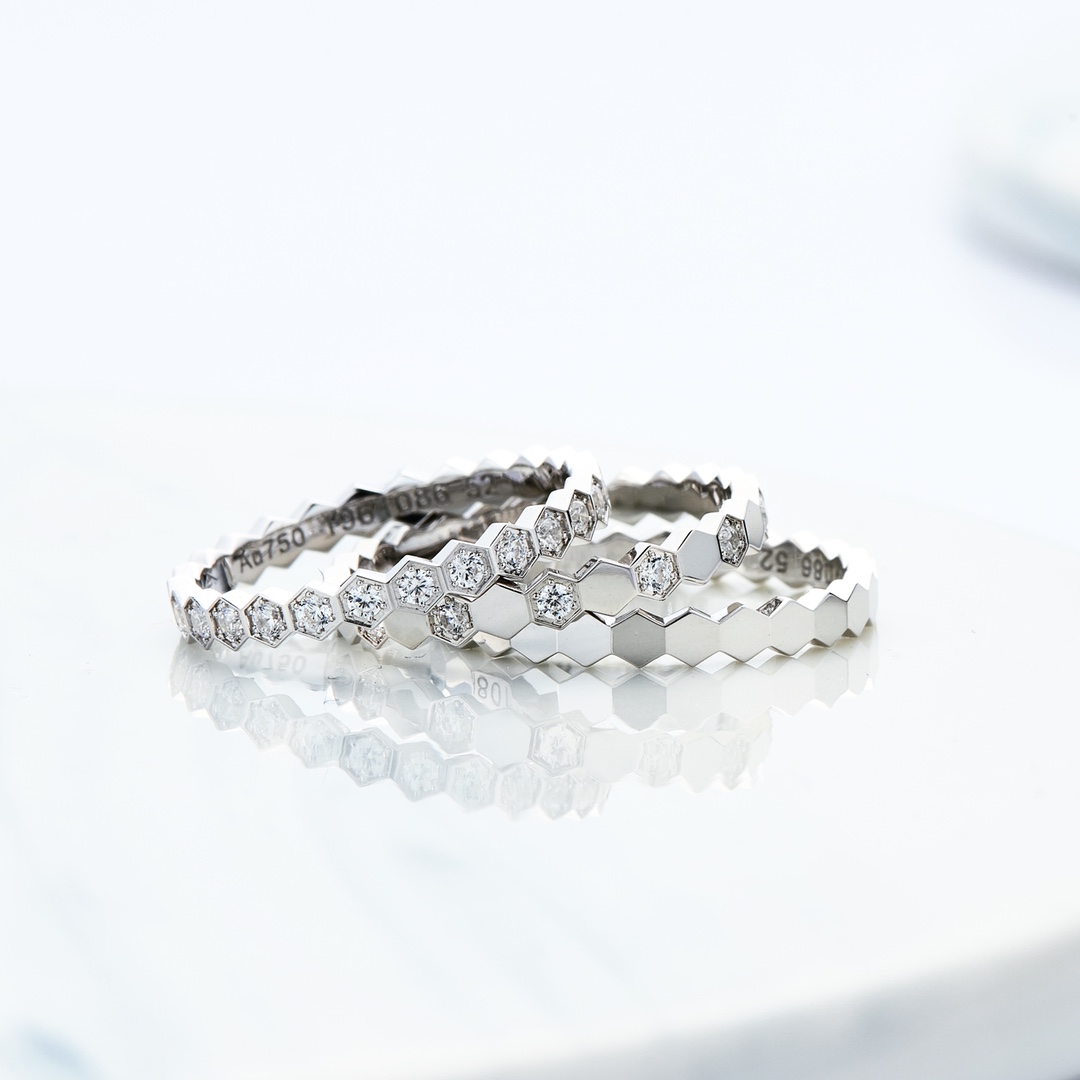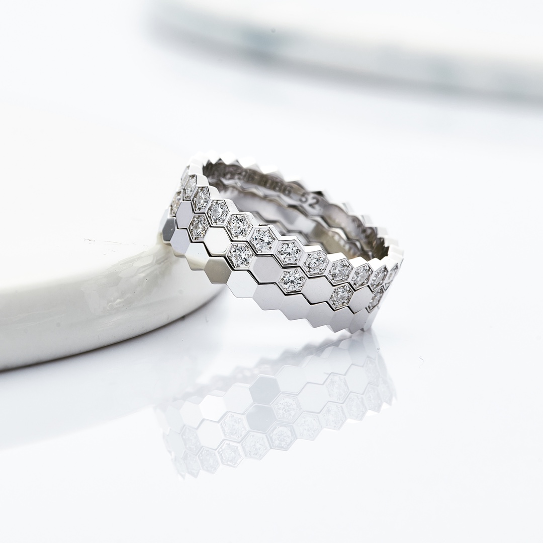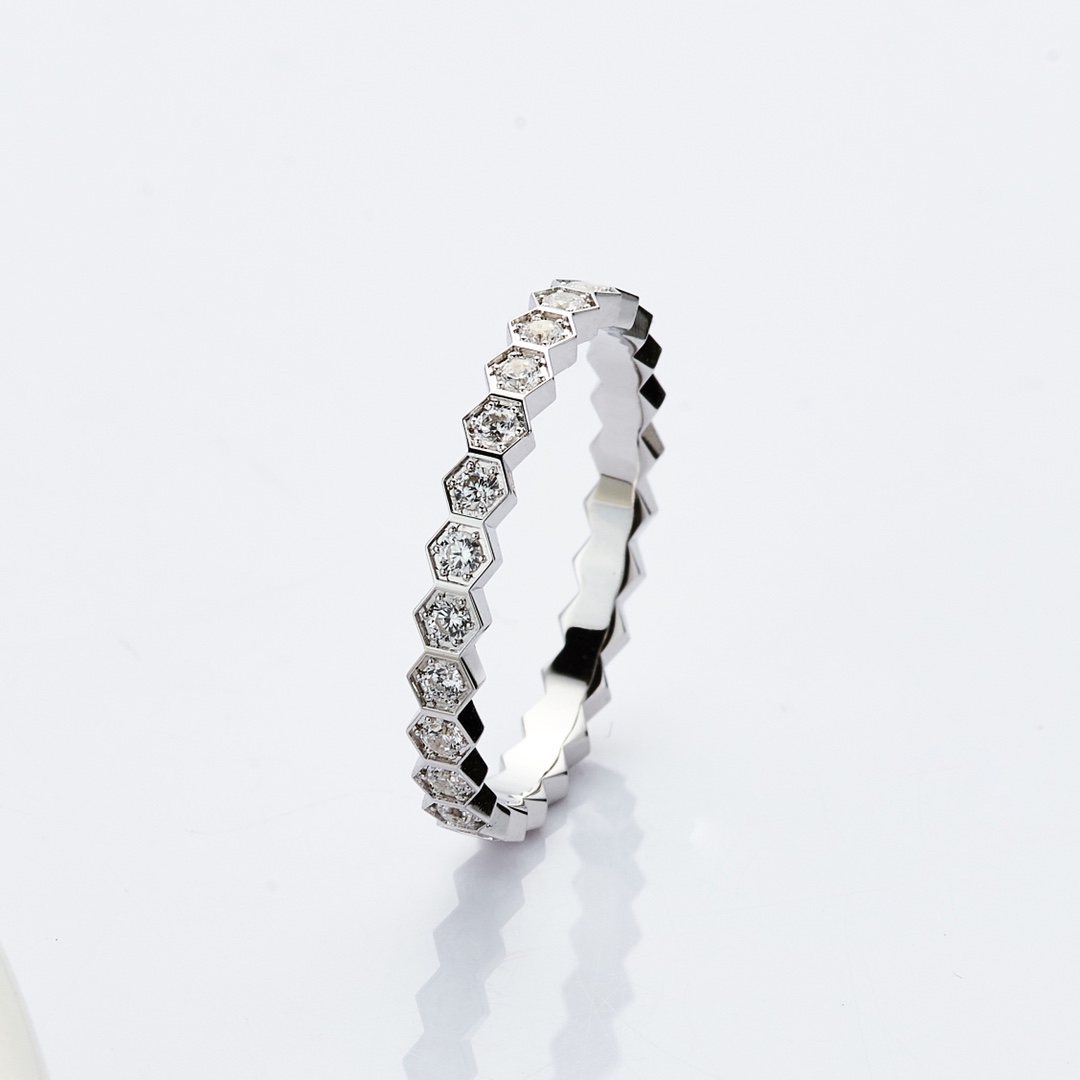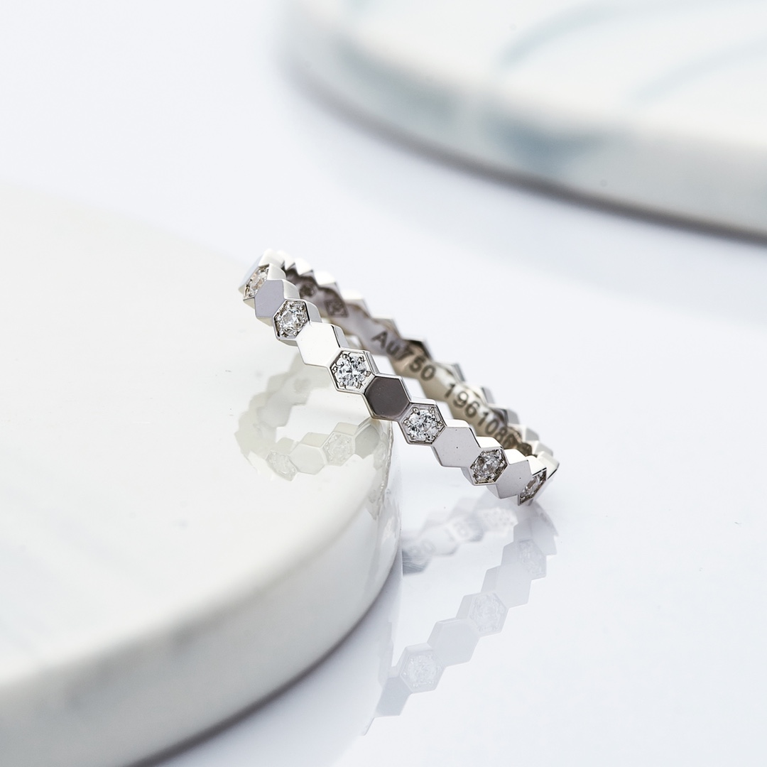无缝隙,钻位CNC精雕,无抛光死角,全部手工微镶,镶嵌工整,放大看细节
