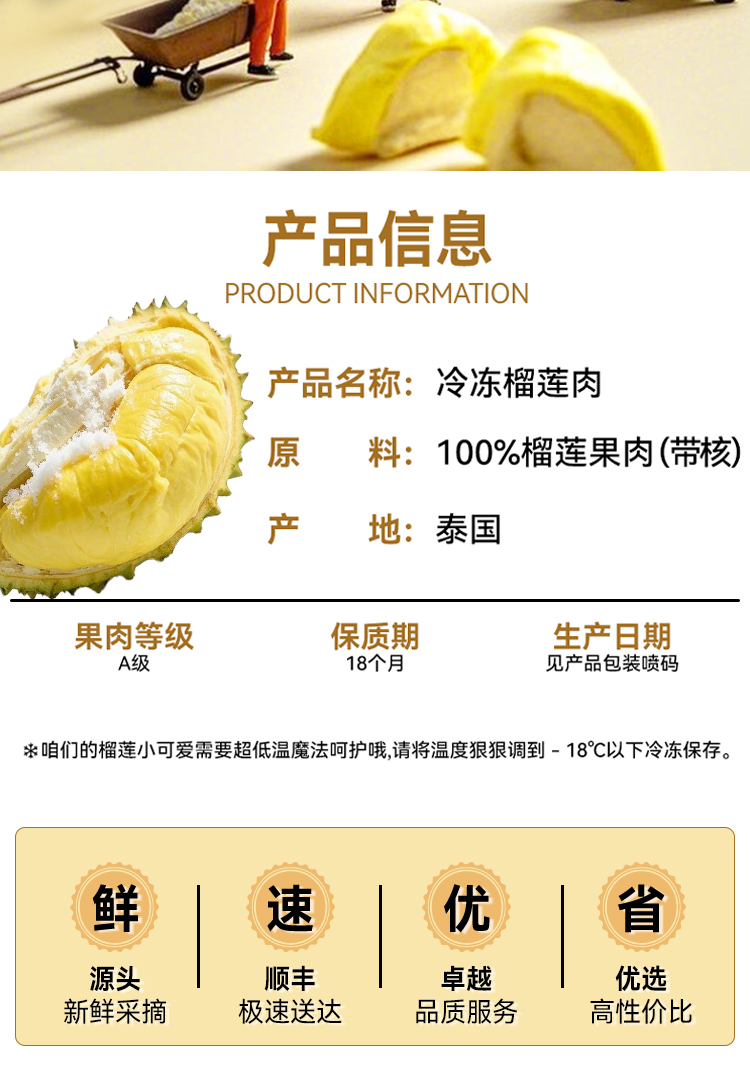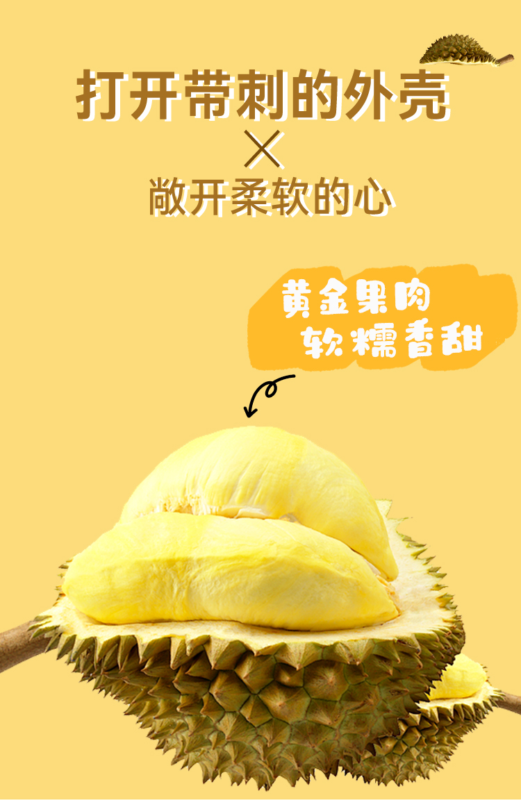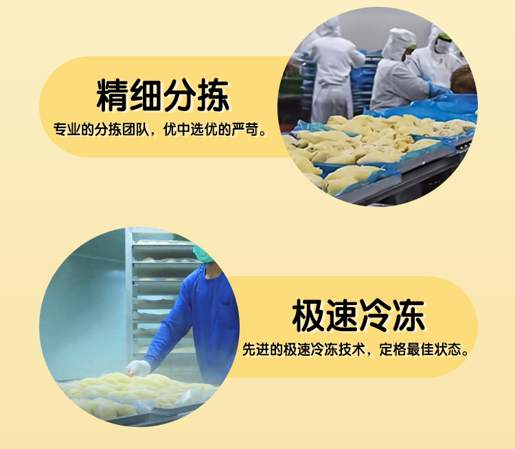 严选 | 泰国A级冷冻金枕榴莲肉900g/袋 顺丰发货
