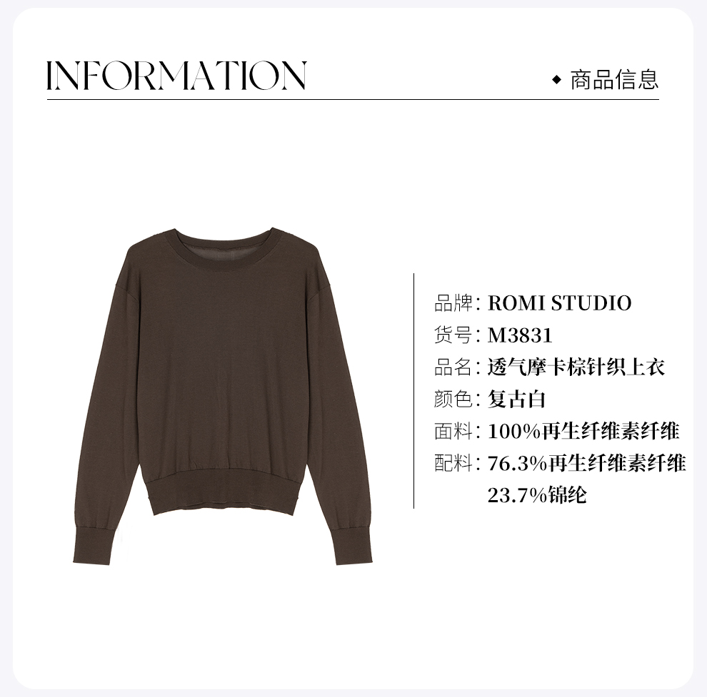 ROMI STUDIO“轻盈利落”早秋新款干爽透气防晒摩卡棕针织上衣M3831