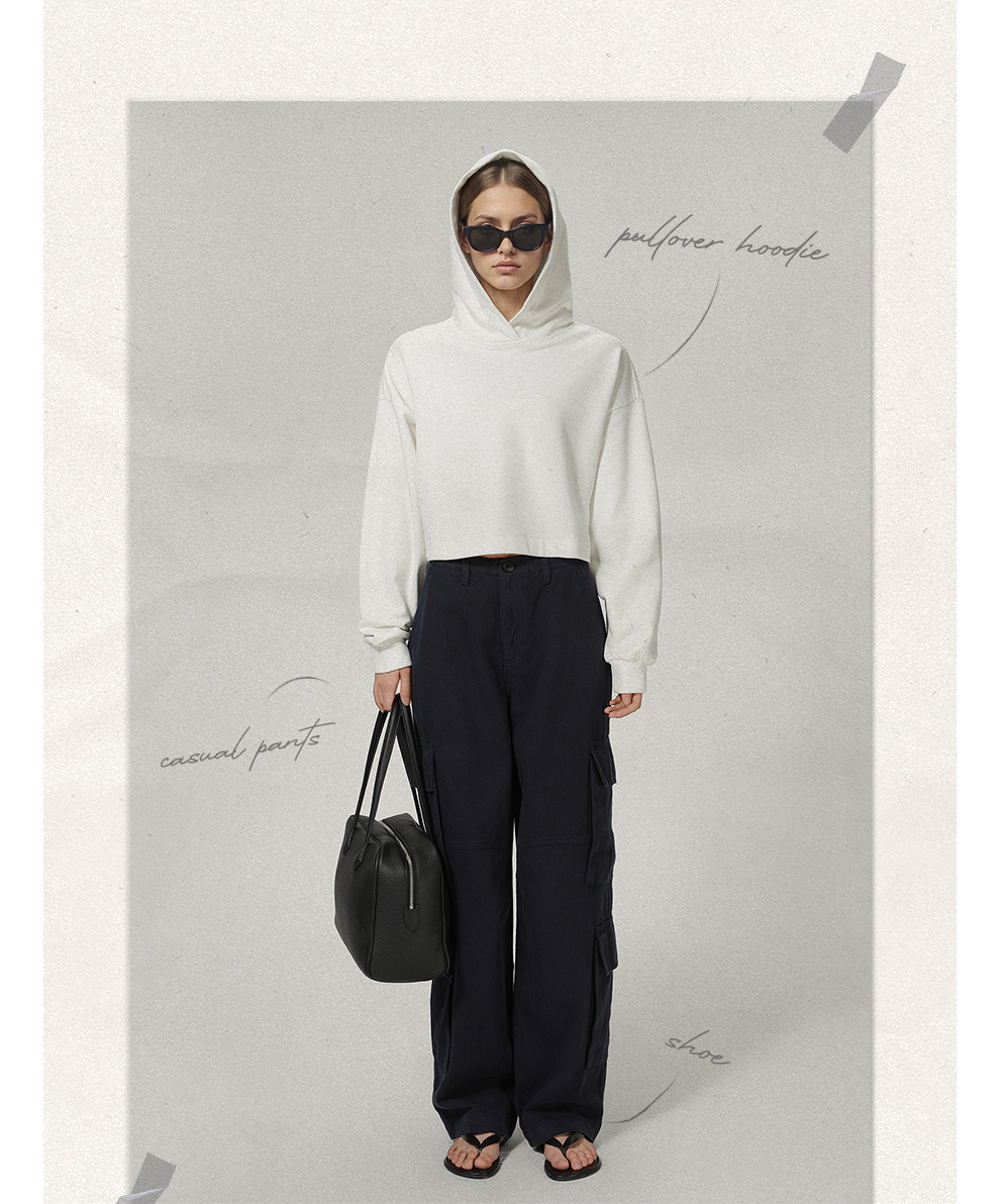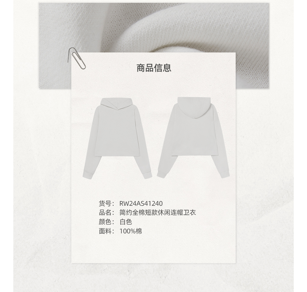 ROMI STUDIO“松弛随性”纯棉落肩宽松休闲运动连帽卫衣RW24AS41240