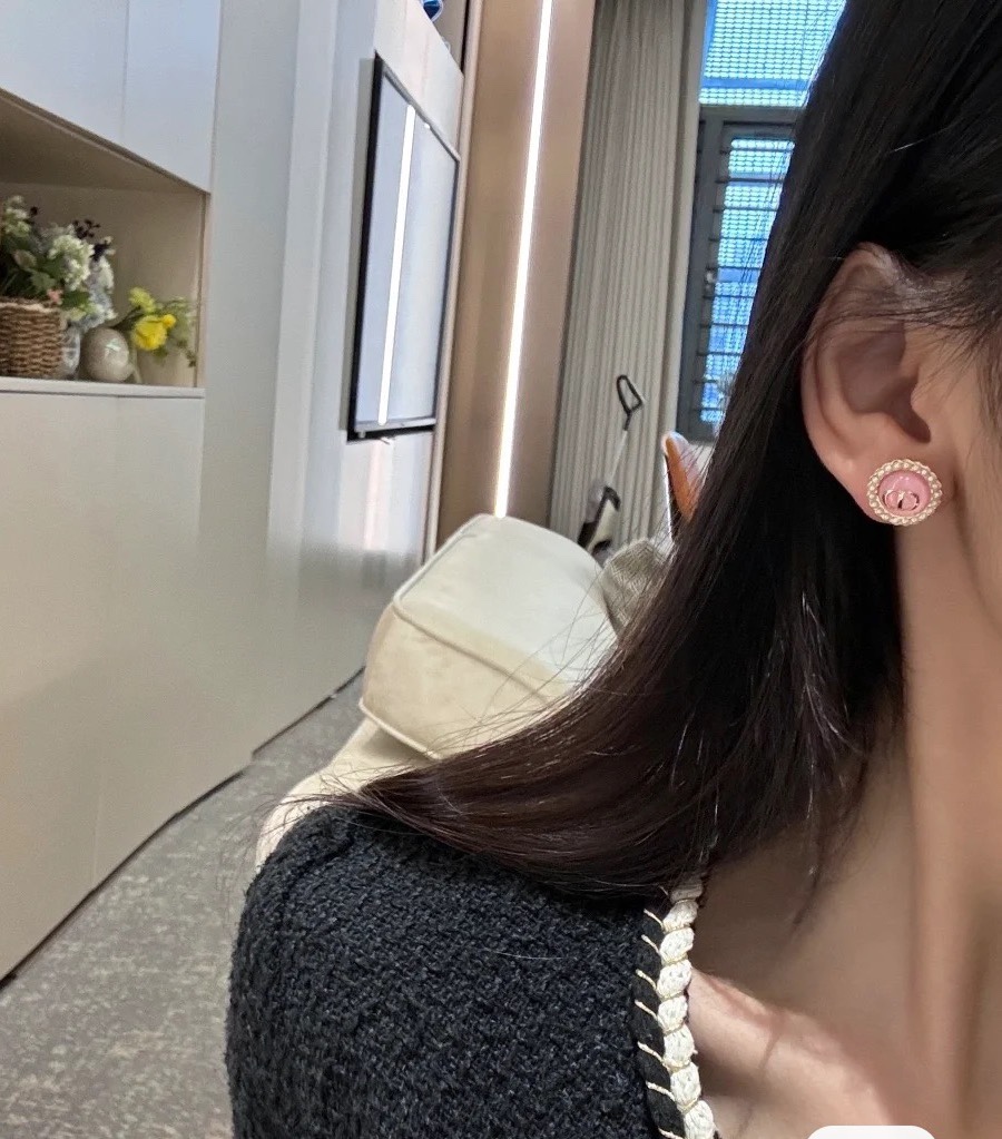 Z 4100,太美太美了,这款设计有点像小香风!,花朵的造型,一颗让人过目不忘的琉璃珠 晶莹剔透,非常有夏日甜甜的味道!随着角度不同,光线不同呈现出的颜色是不太一样,或深或浅!边边施华洛小米珠围绕着,边缘是花朵的曲线形状!大小适中,上耳优雅精致,非常推荐,日常四季通勤款!