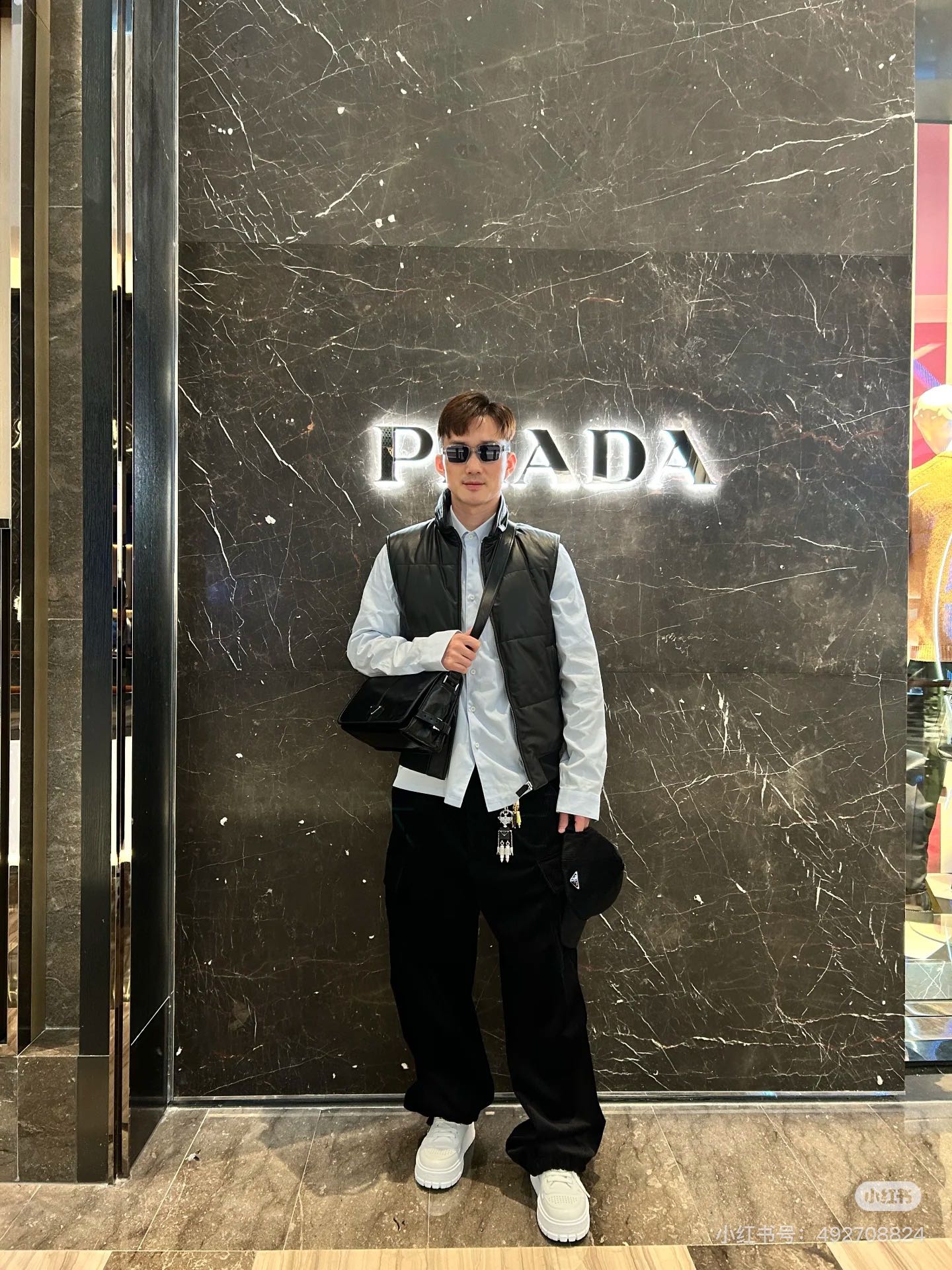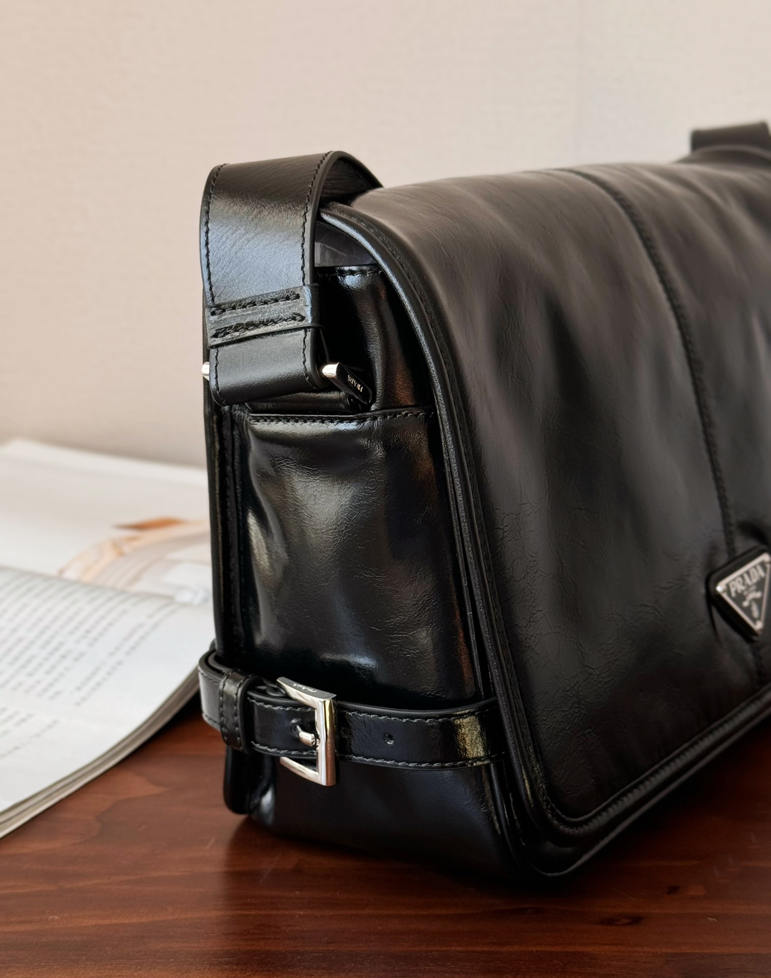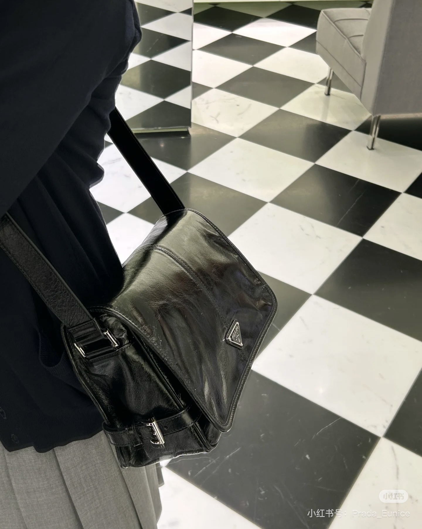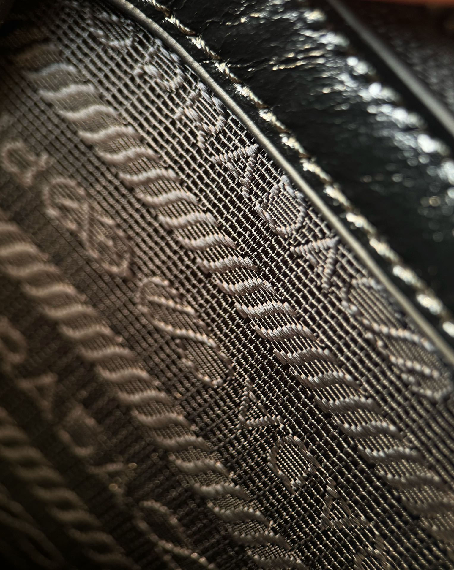 微距特写!什么叫真正的原厂五金一眼就能分辨了吧,Prada的珐琅三角标绝对是一大亮点,字体清晰、细致~