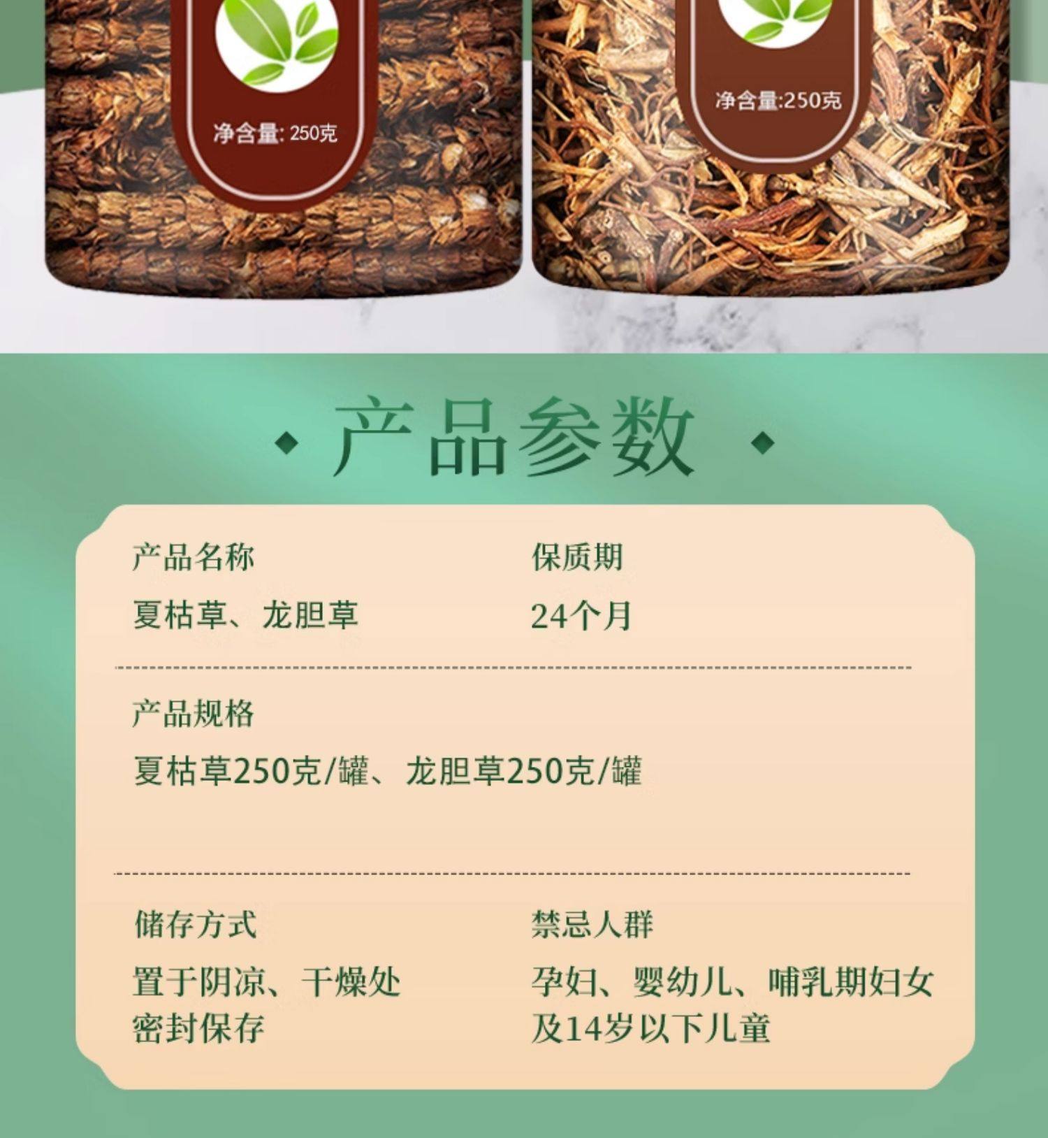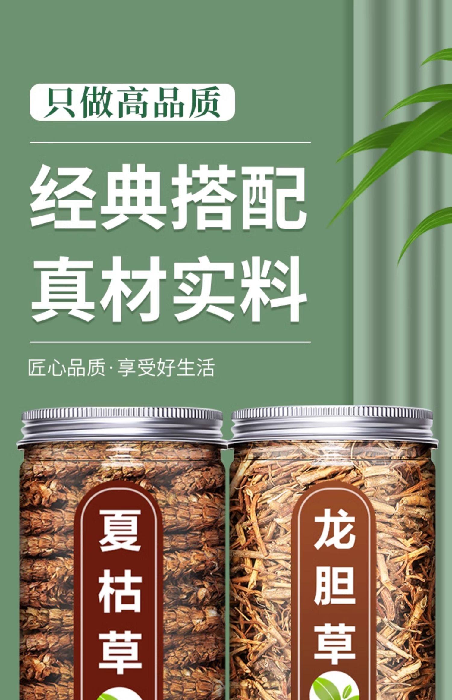 龙胆草和夏枯草中药材正品组合野生新鲜泡水喝批发的功效作用茶包