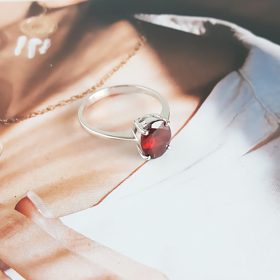 名称 | AU585白金镶天然约2克拉红色石榴石(幸福、忠诚)戒指 |