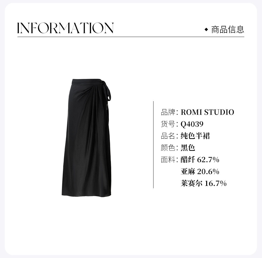 ROMI STUDIO“轻盈利落” 醋酸丝麻绑带围裹式可调节纯色半裙 Q4039