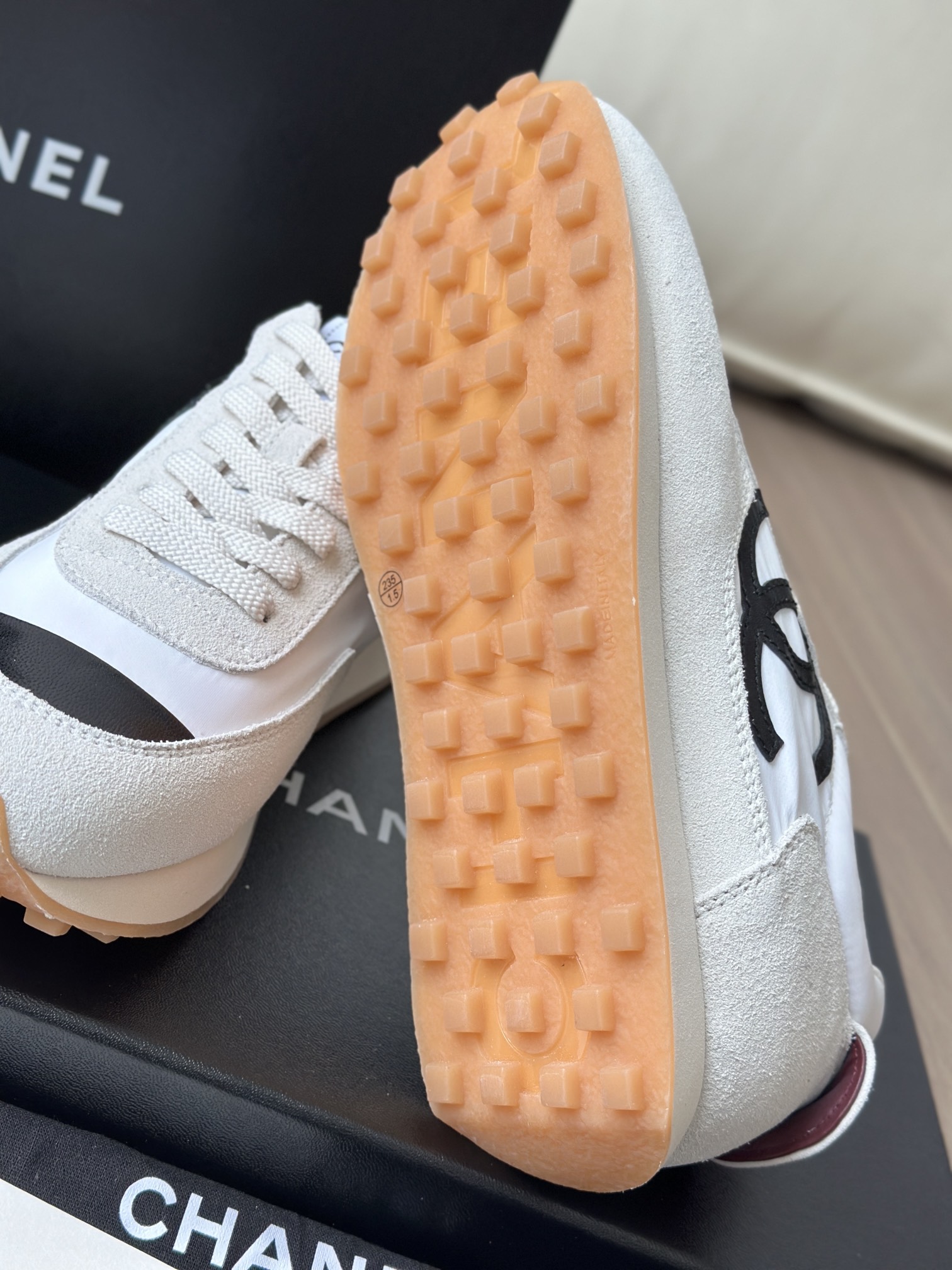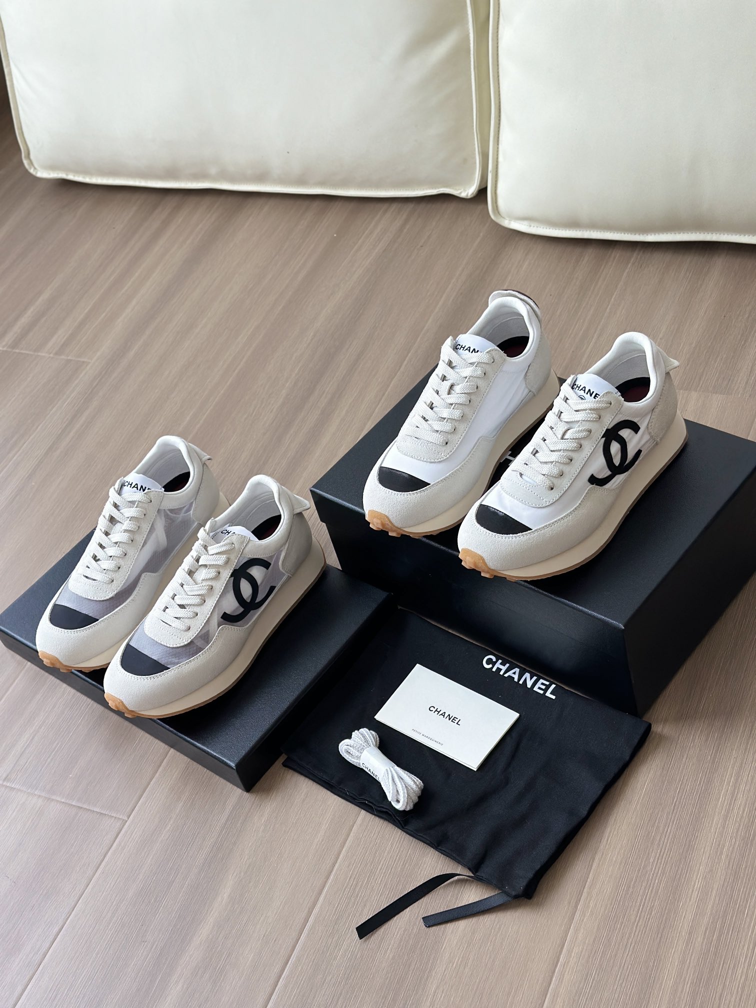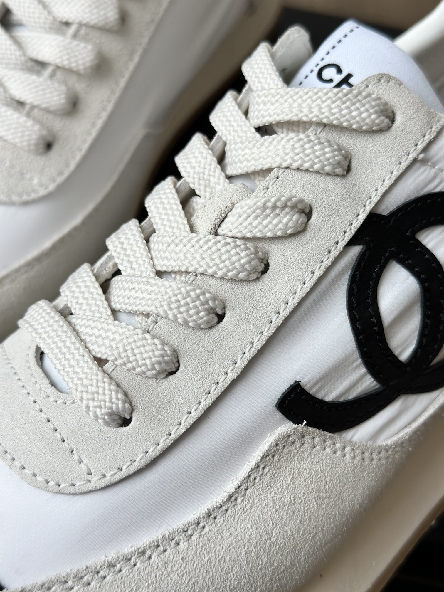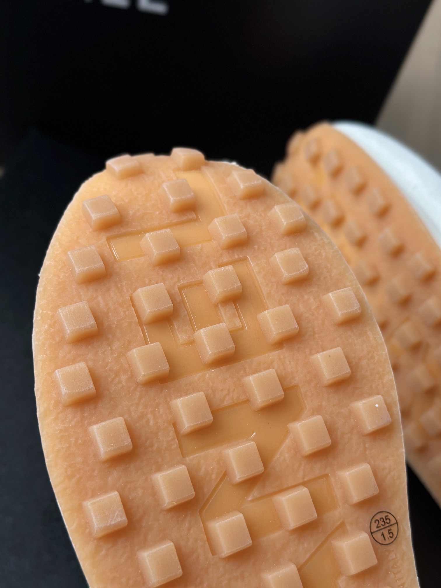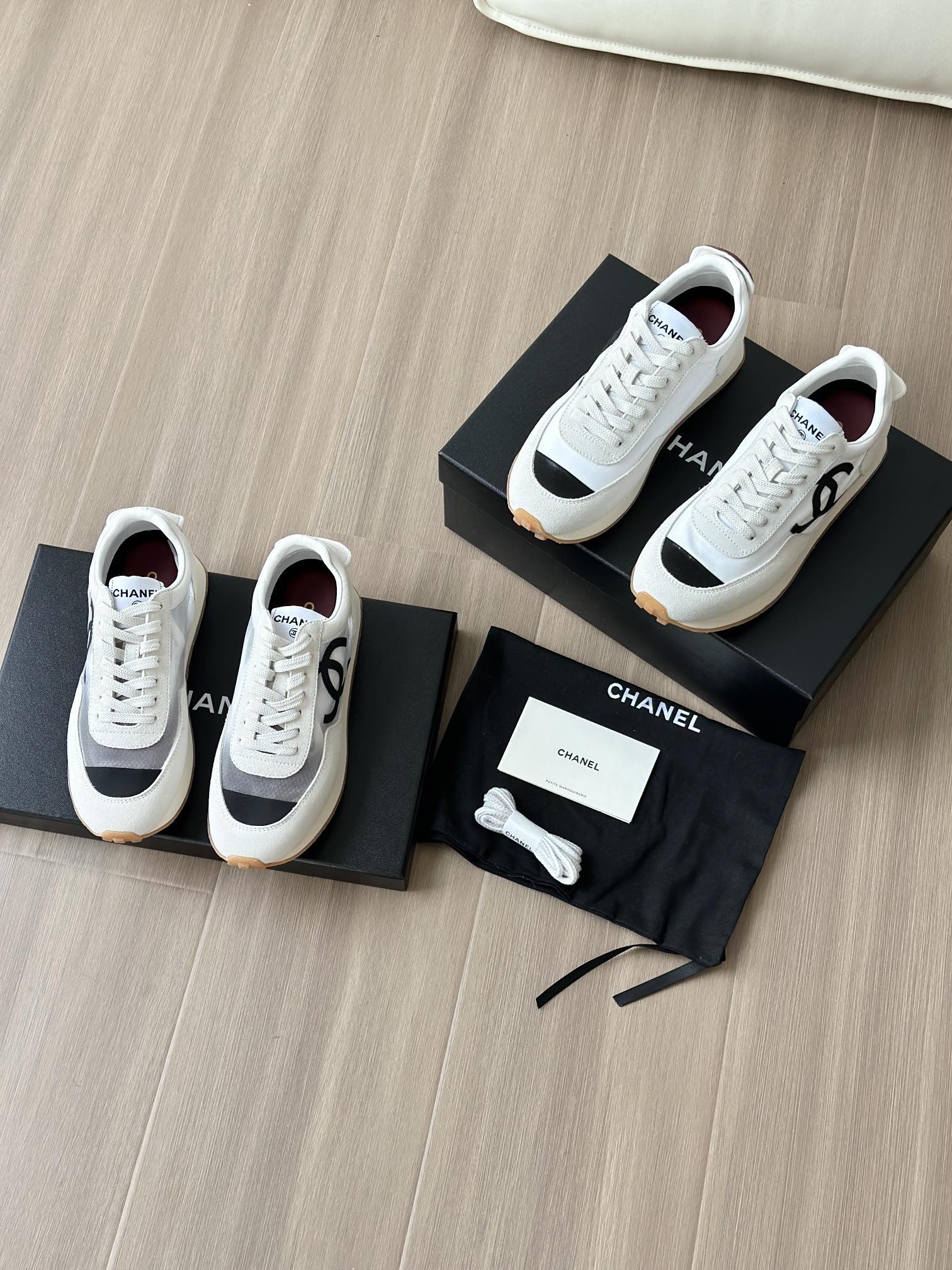 26P|休闲运动鞋 米白阿甘鞋|春日氛围感天花板✨ ▪️ 配色绝了:经典米白拼接网纱,搭配低调的黑色双C Logo,温柔又显贵,自带柔光滤镜,怎么搭都不出错✨ ▪️ 细节拉满:麂皮绒鞋面质感超棒,网面设计透气不闷脚,春夏穿再合适不过!鞋型超秀气,显脚小的同时还很修饰脚型,宽脚姐妹也能闭眼冲👍 舒适度&小心机双在线 ▪️ 厚底增高buff:4cm左右的厚底设计,悄悄拉长腿部线条,小个子姐妹直接拿捏黄金比例👯♀️ ▪️ 暴走不累:乳胶鞋垫+柔软内里,上脚就是“踩屎感”般的舒适,通勤逛街暴走2万步都毫无压力,打工人狂喜!😌 💃 万能穿搭公式 ▪️ 通勤风:搭配西装直筒裤,利落又专业,下班直接去约会无压力 ▪️ 休闲风:牛仔裤+针织衫,松弛感拉满,妥妥的法式富家既视感 ▪️ 甜妹风:碎花连衣裙/百褶裙,温柔又灵动,春日出街回头率拉满。 • 鞋面:采用织物(网眼/尼龙类面料) 鞋侧及后跟:拼接了麂皮效果小牛皮 • 内里:为小羊皮, • 大底:采用橡胶材质,部分款式加入PU缓震层 码数35---40
