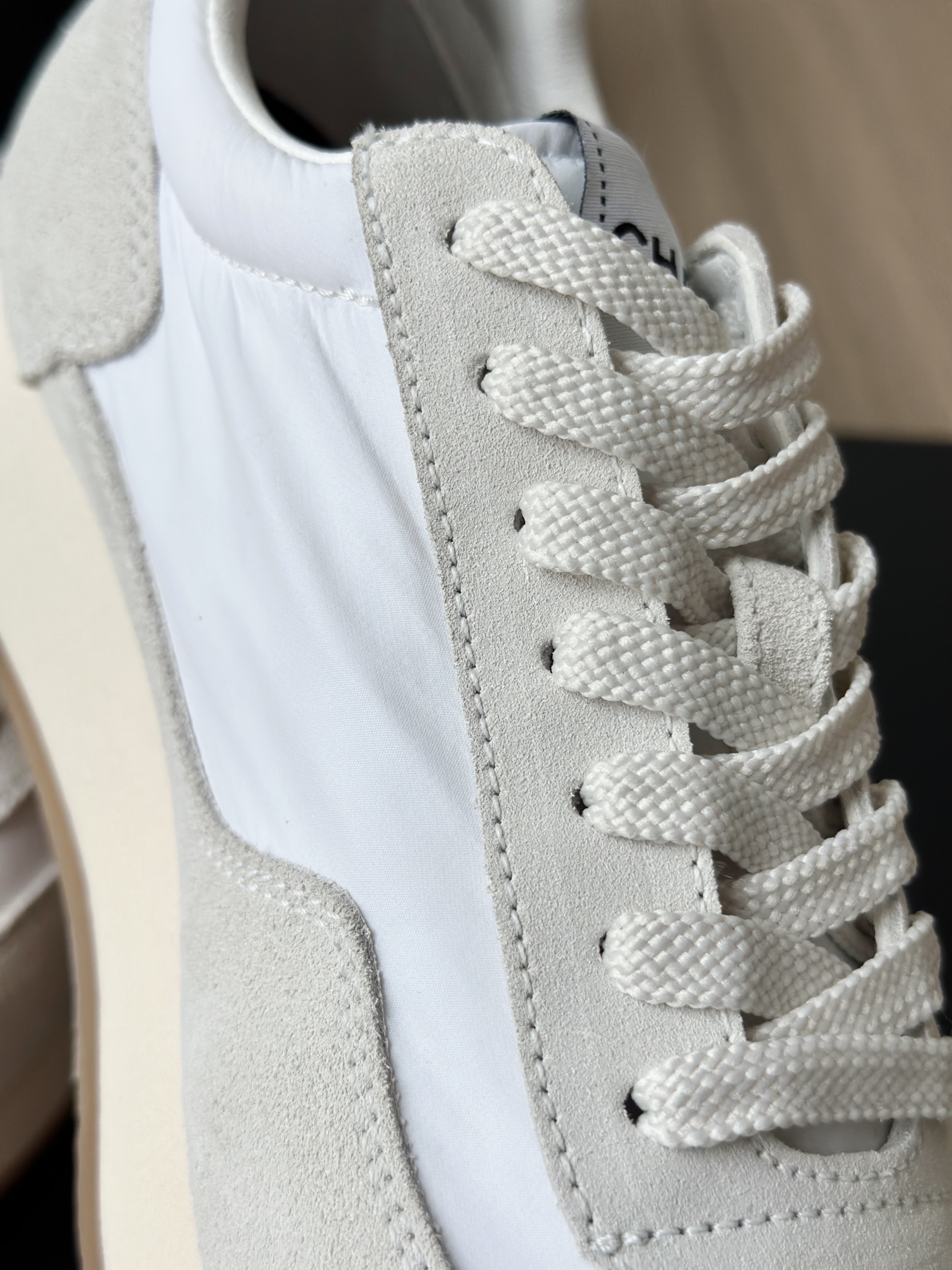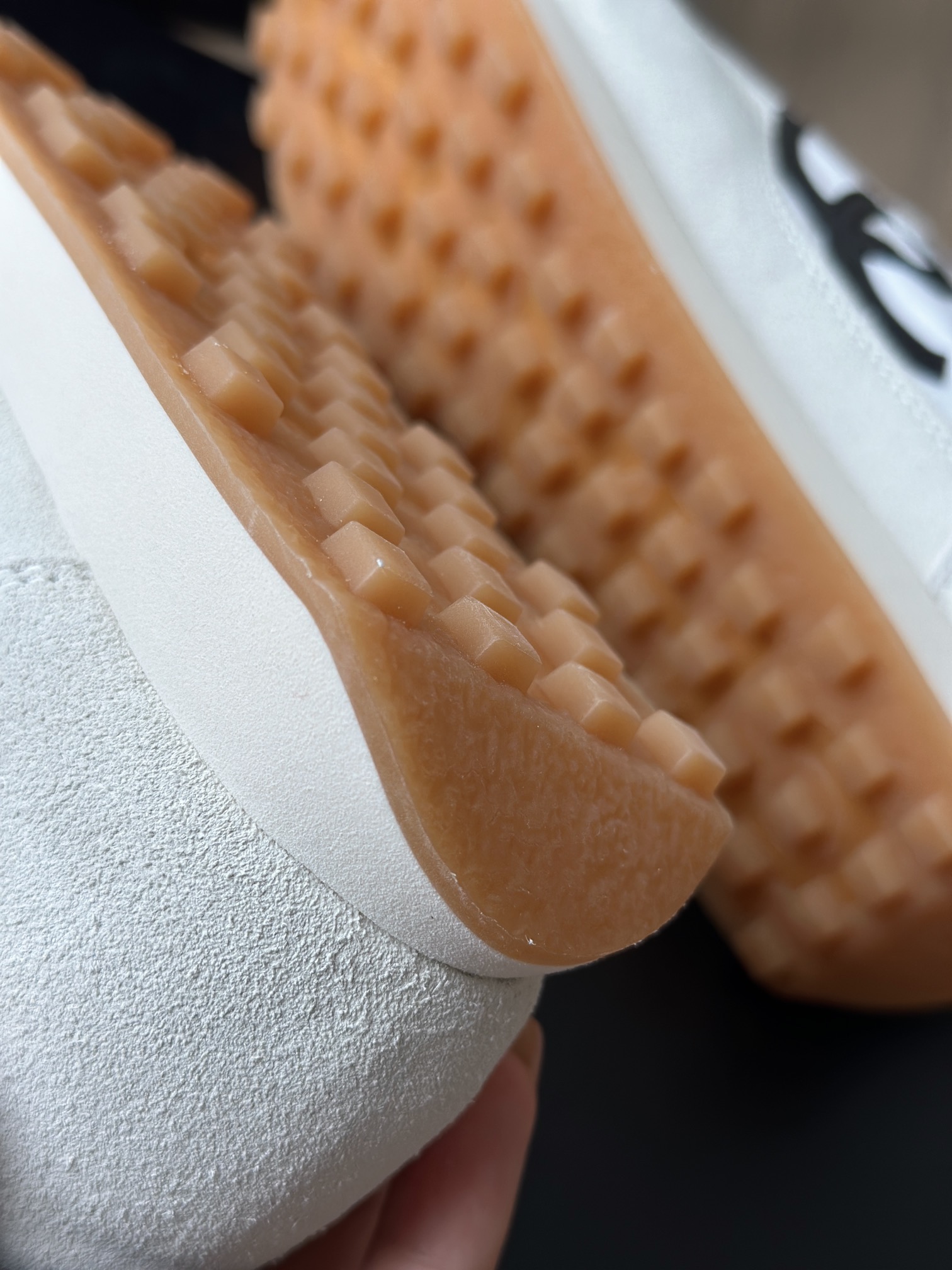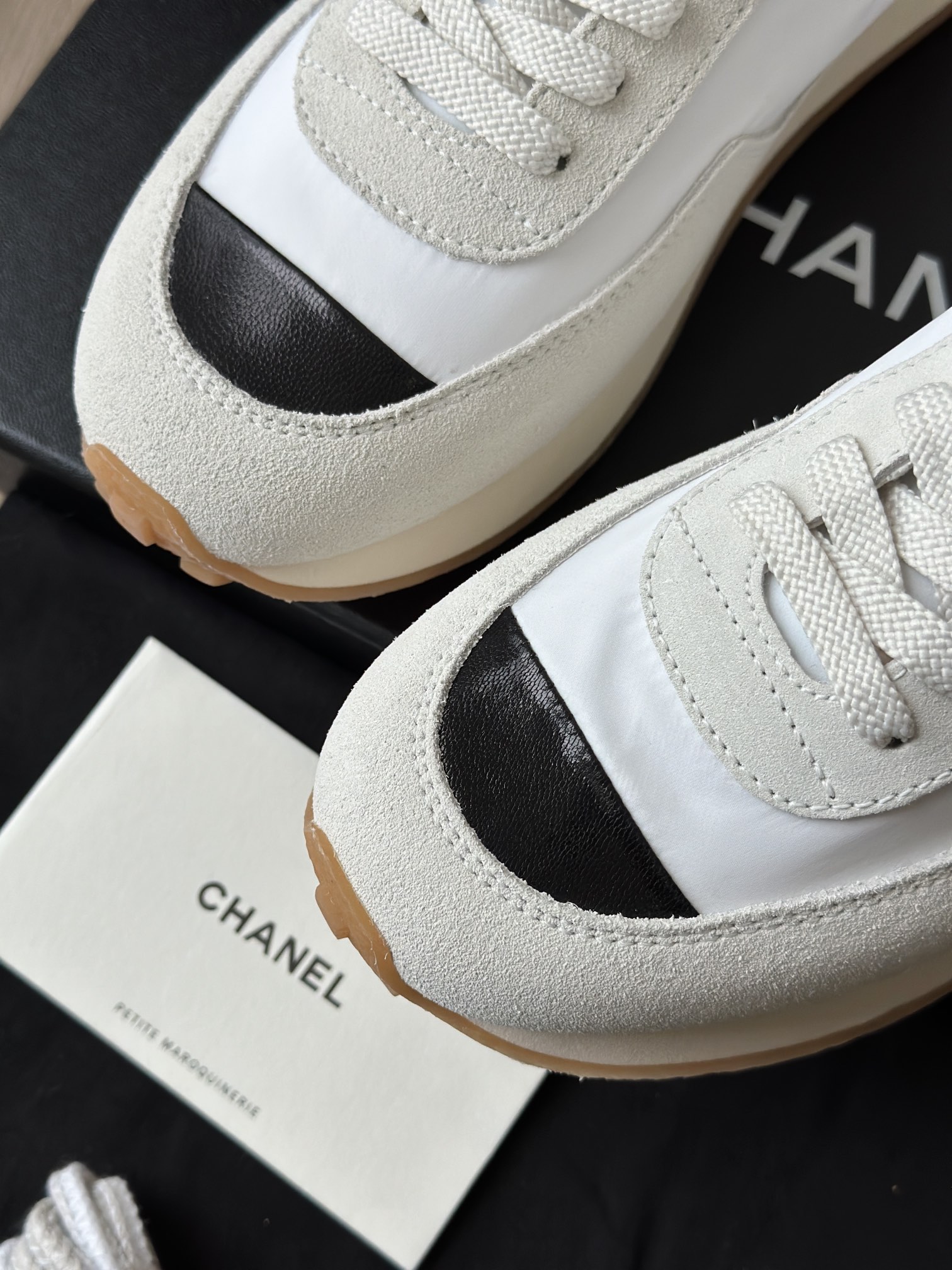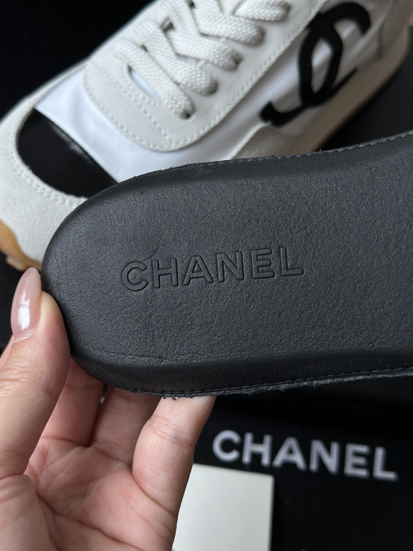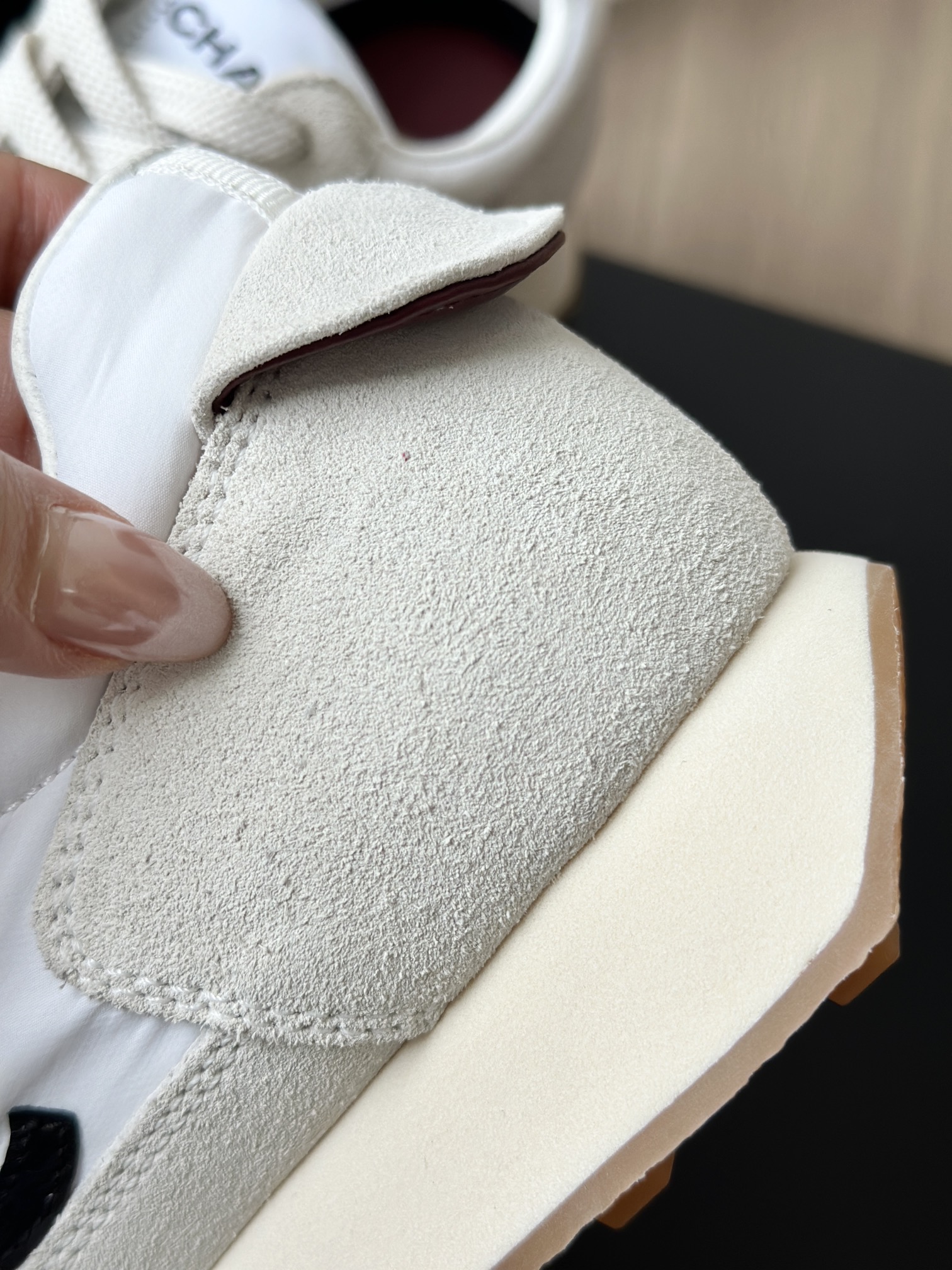 26P|休闲运动鞋 米白阿甘鞋|春日氛围感天花板✨ ▪️ 配色绝了:经典米白拼接网纱,搭配低调的黑色双C Logo,温柔又显贵,自带柔光滤镜,怎么搭都不出错✨ ▪️ 细节拉满:麂皮绒鞋面质感超棒,网面设计透气不闷脚,春夏穿再合适不过!鞋型超秀气,显脚小的同时还很修饰脚型,宽脚姐妹也能闭眼冲👍 舒适度&小心机双在线 ▪️ 厚底增高buff:4cm左右的厚底设计,悄悄拉长腿部线条,小个子姐妹直接拿捏黄金比例👯♀️ ▪️ 暴走不累:乳胶鞋垫+柔软内里,上脚就是“踩屎感”般的舒适,通勤逛街暴走2万步都毫无压力,打工人狂喜!😌 💃 万能穿搭公式 ▪️ 通勤风:搭配西装直筒裤,利落又专业,下班直接去约会无压力 ▪️ 休闲风:牛仔裤+针织衫,松弛感拉满,妥妥的法式富家既视感 ▪️ 甜妹风:碎花连衣裙/百褶裙,温柔又灵动,春日出街回头率拉满。 • 鞋面:采用织物(网眼/尼龙类面料) 鞋侧及后跟:拼接了麂皮效果小牛皮 • 内里:为小羊皮, • 大底:采用橡胶材质,部分款式加入PU缓震层 码数35---40