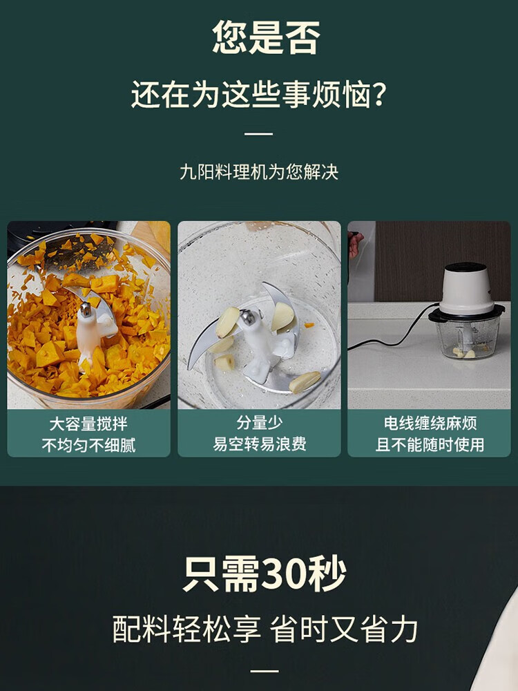 九阳(Joyoung)绞肉机家用 便携婴儿辅食机电动捣蒜器拉蒜器无线多功能绞蒜器CF-AS0399