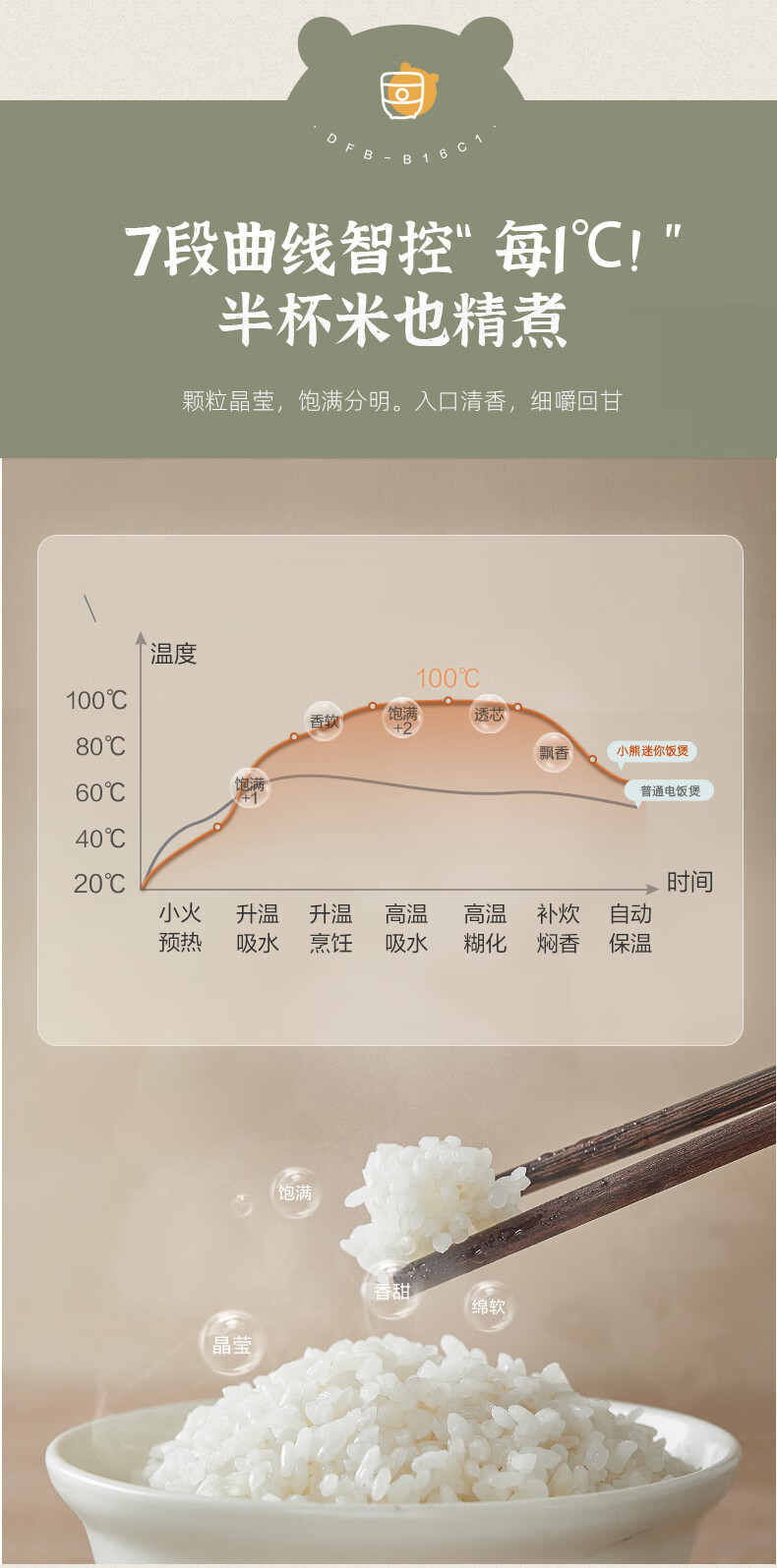 小熊电饭煲 电饭锅1.6升家用小2人智能预约多功能1-2人迷你煲汤米饭锅 DFB-B16C1