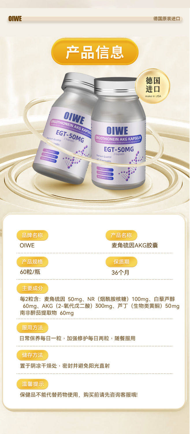 德国进口麦角硫因EGT+AKG烟酰胺胶原蛋白紧致嫩肤淡斑正品