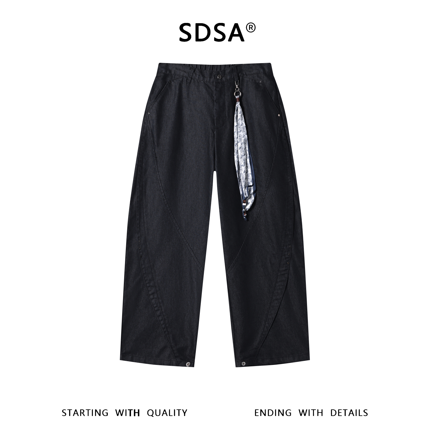 SDSA男装2026新款轻奢可拆卸丝巾拼接弯刀裤复古宽松阔腿牛仔裤